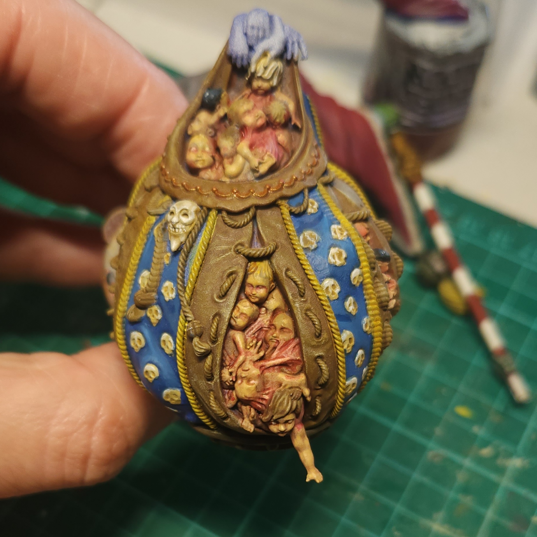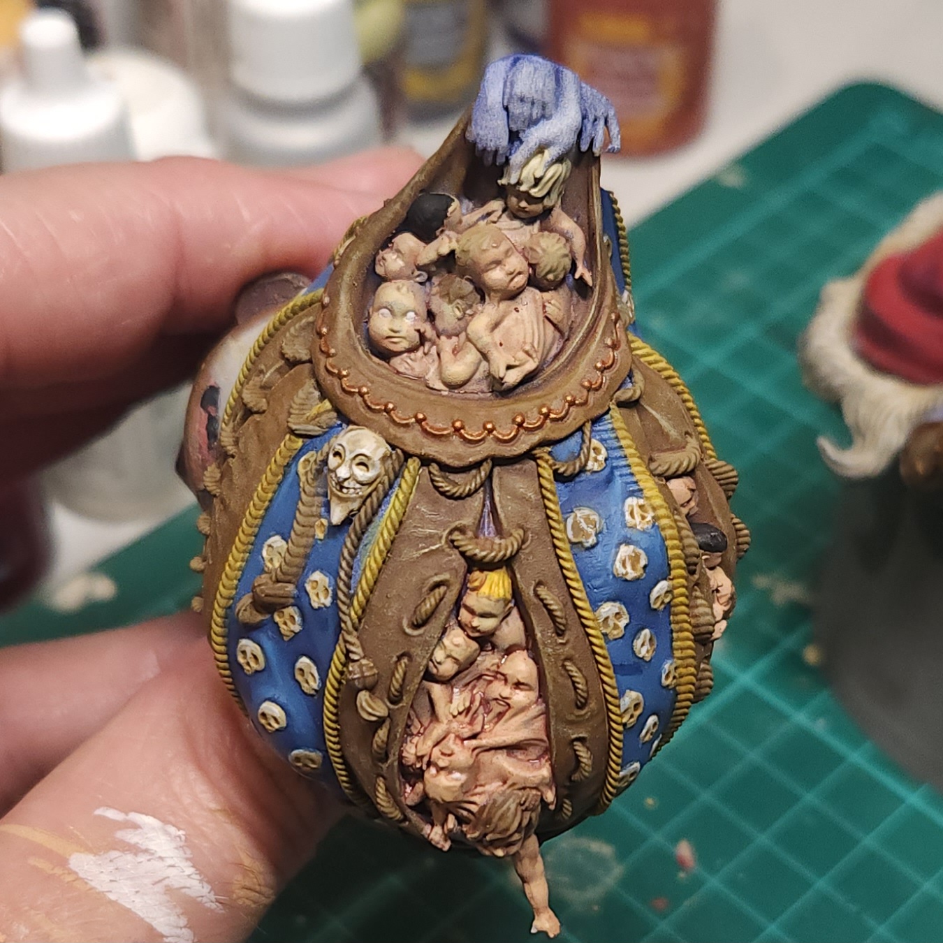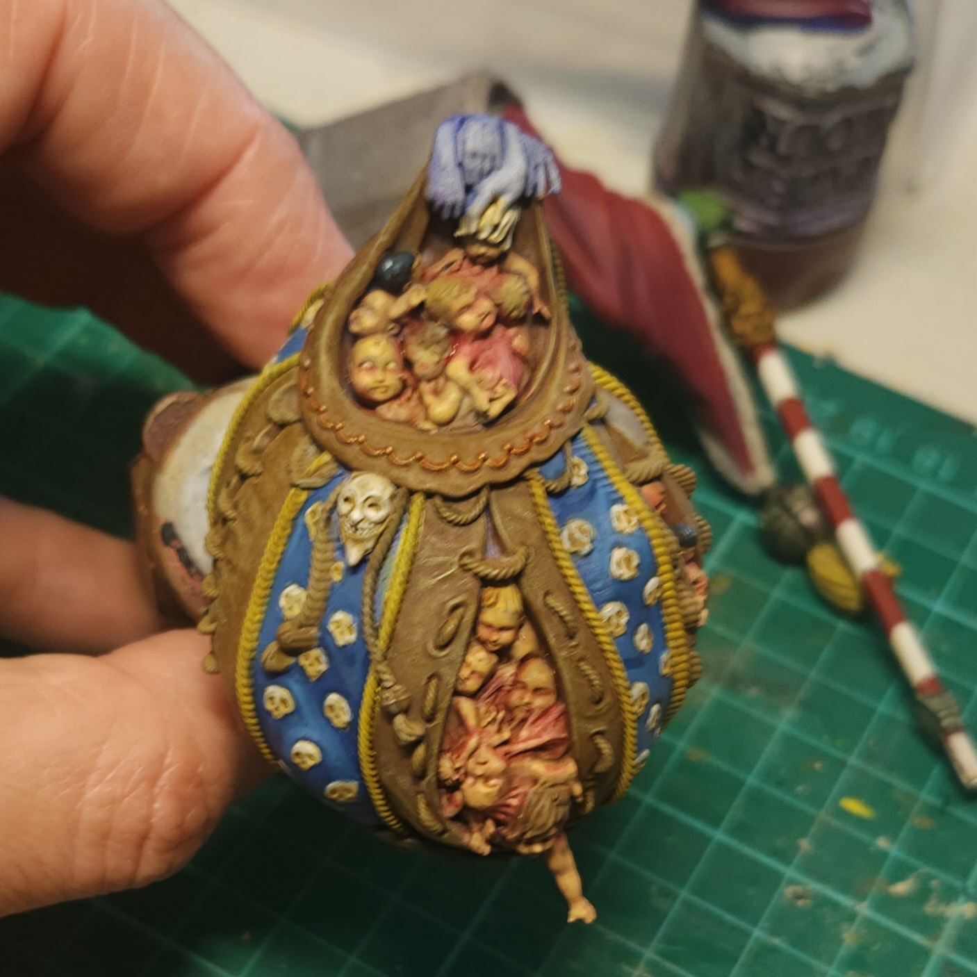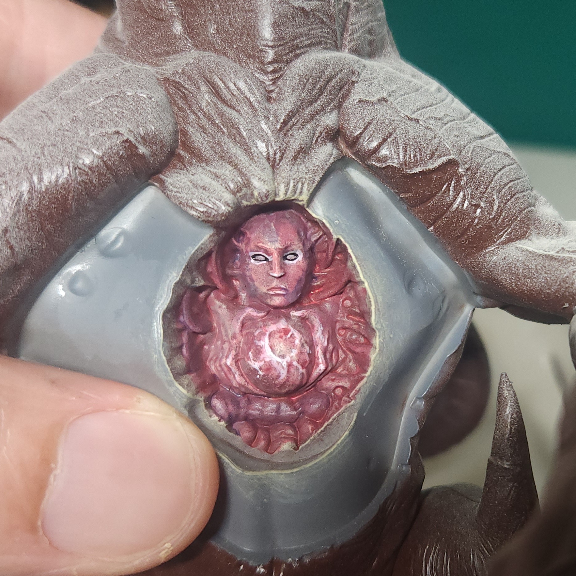 More glazing with the Vallejo Gory Red on the fused flesh in the sack. I also picked out some of the eyes with Vallejo Ivory just to add some extra disturbing factor, I suppose.