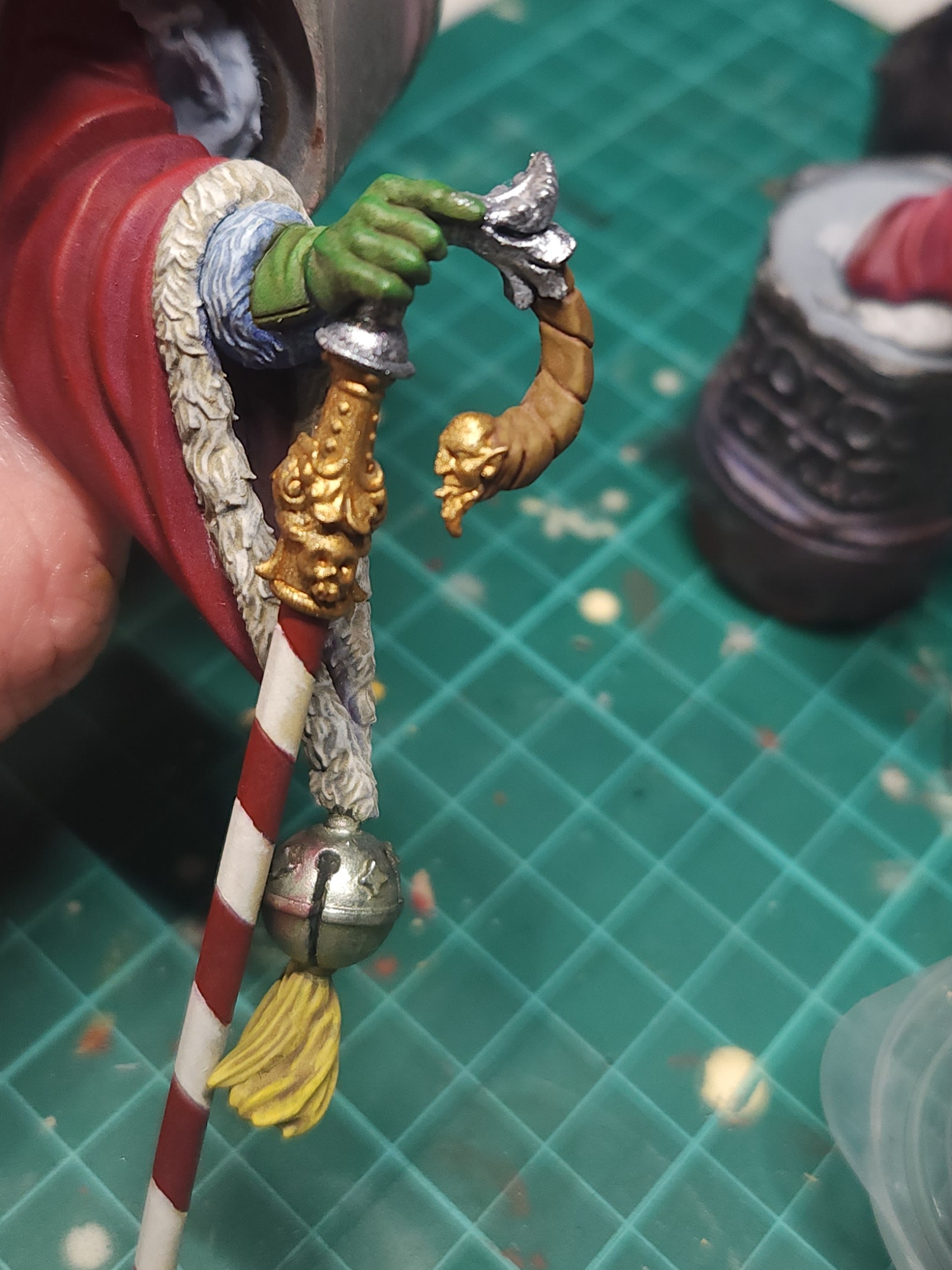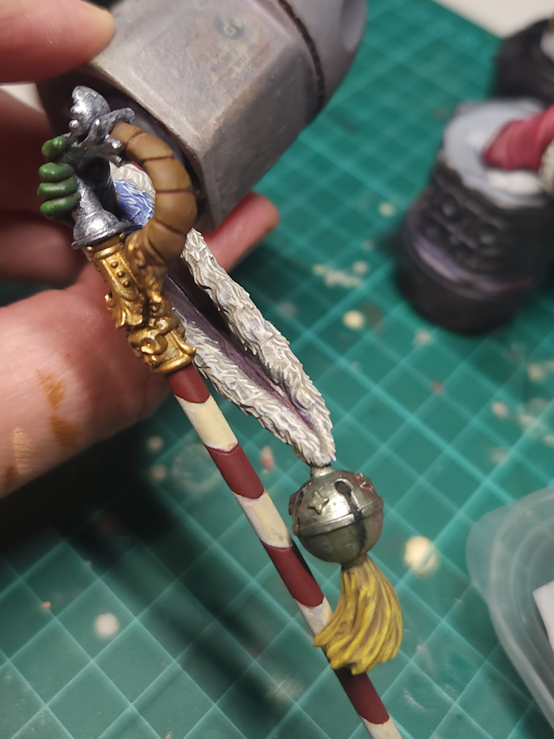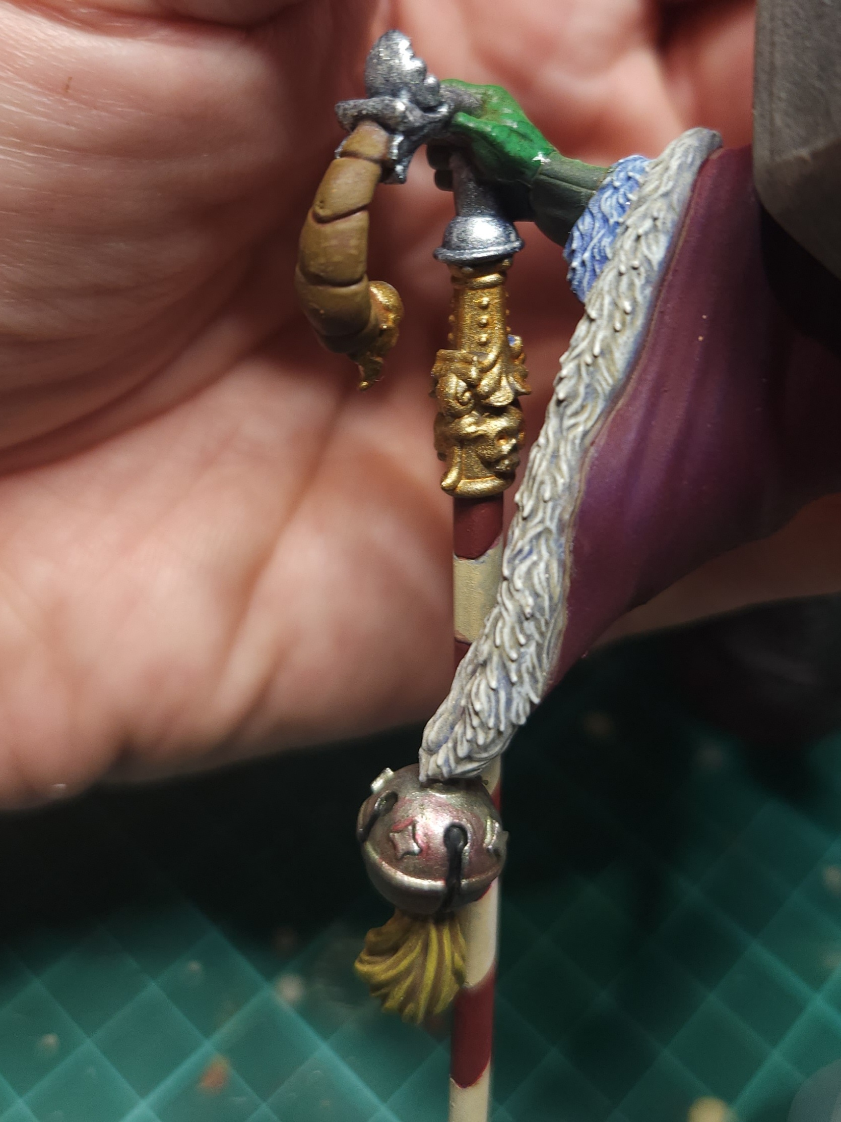 Silver was based using the Vallejo Pure Silver. It isn’t visible here, but there is another detail at the bottom of the cane that I also painted in the silver.