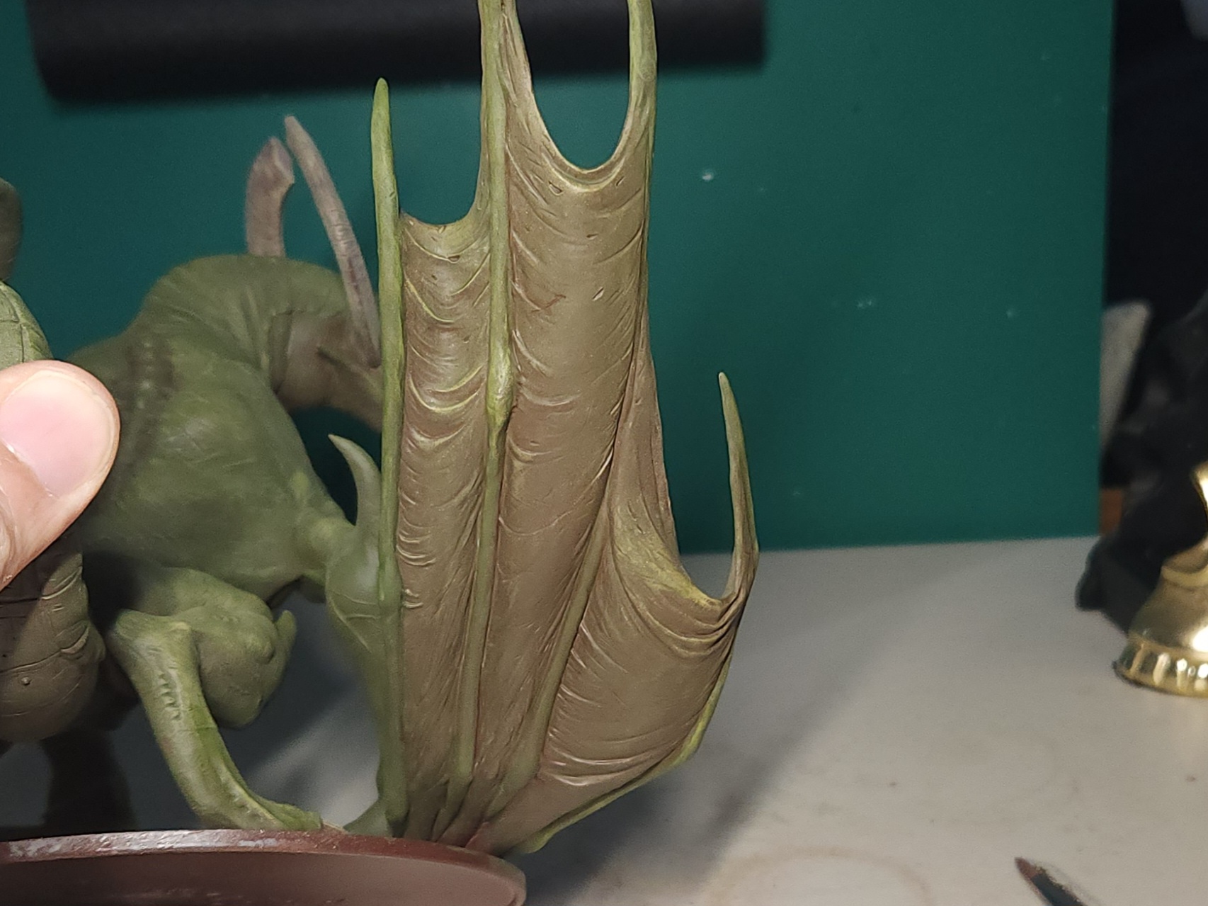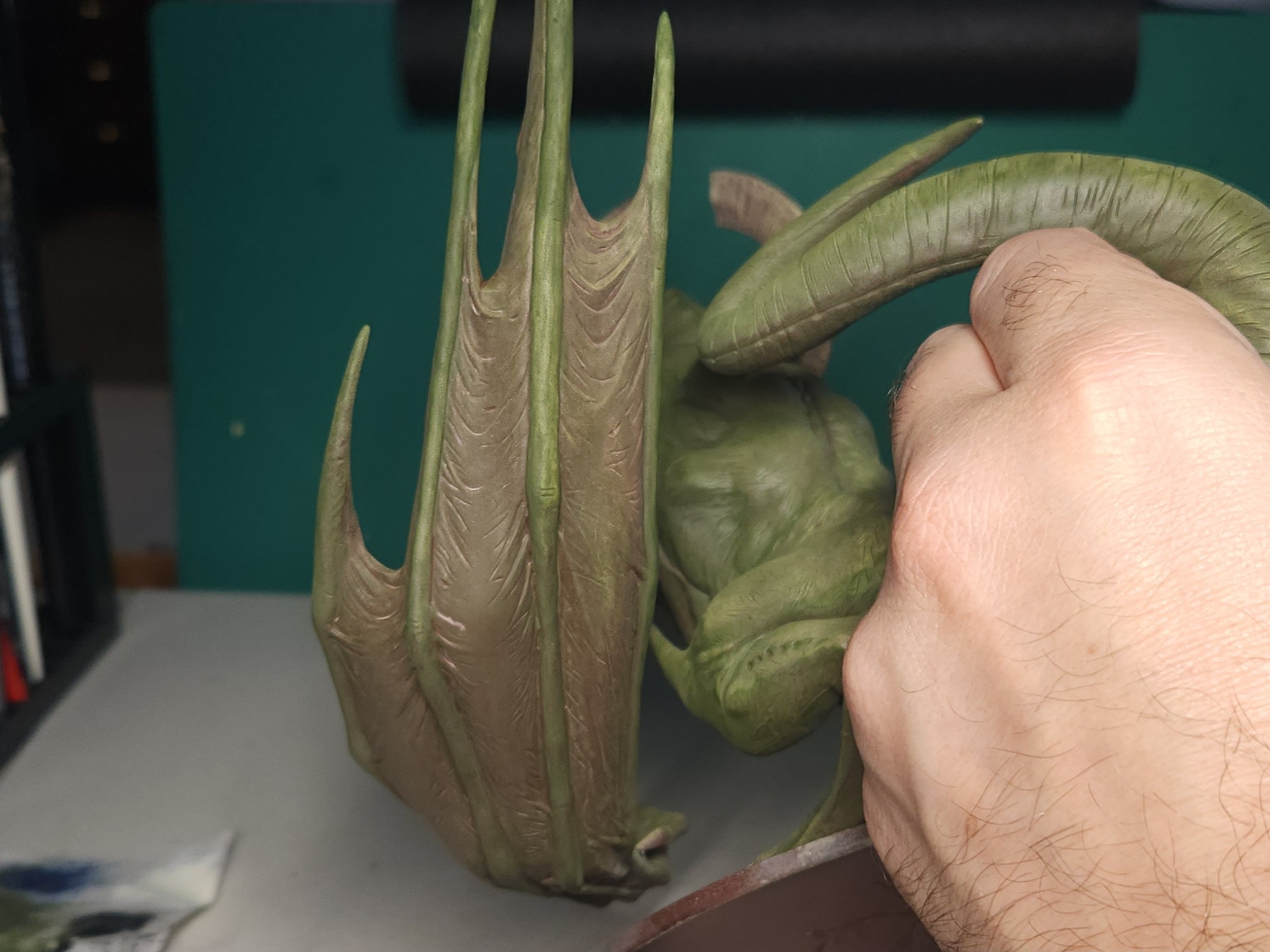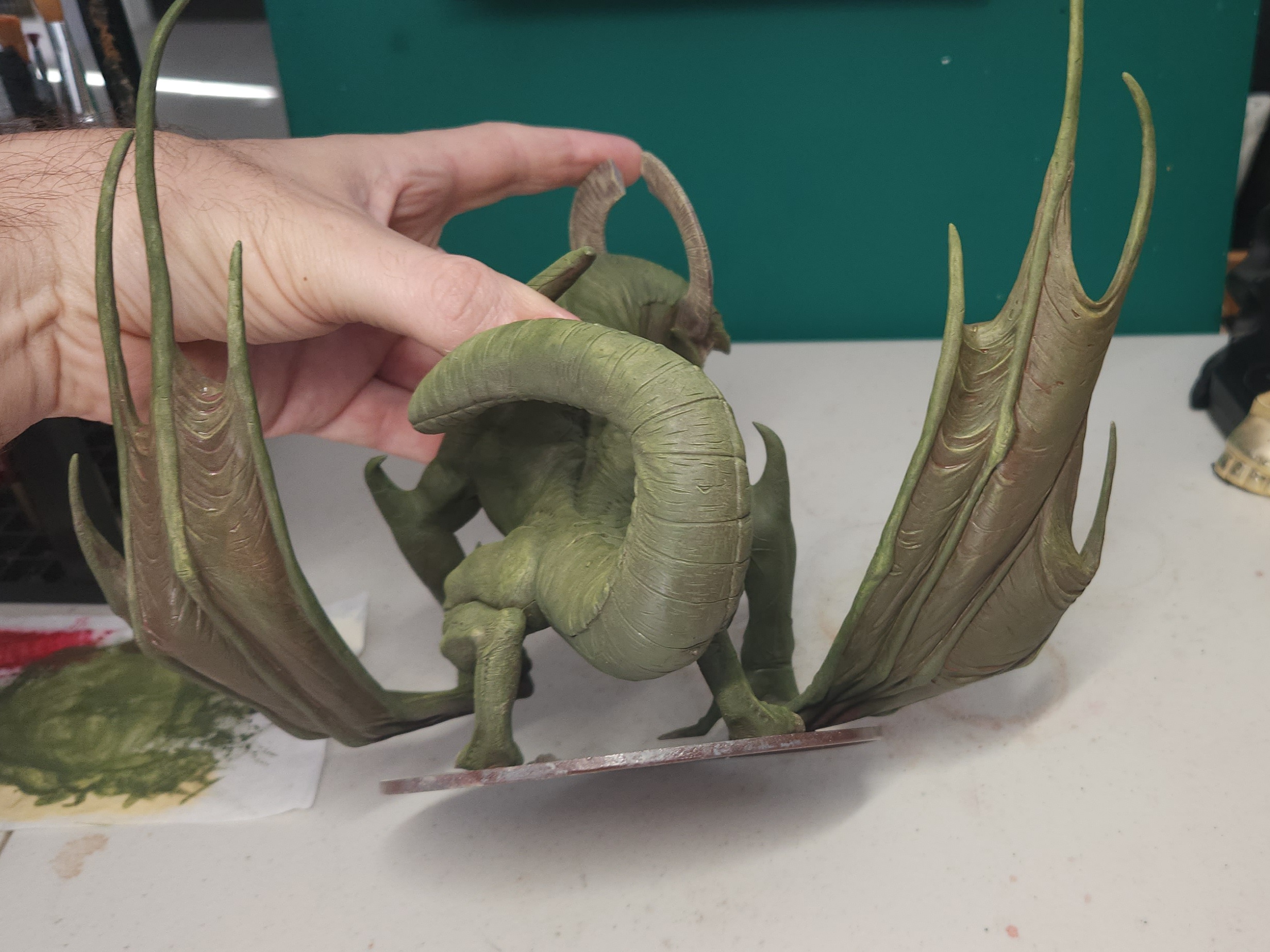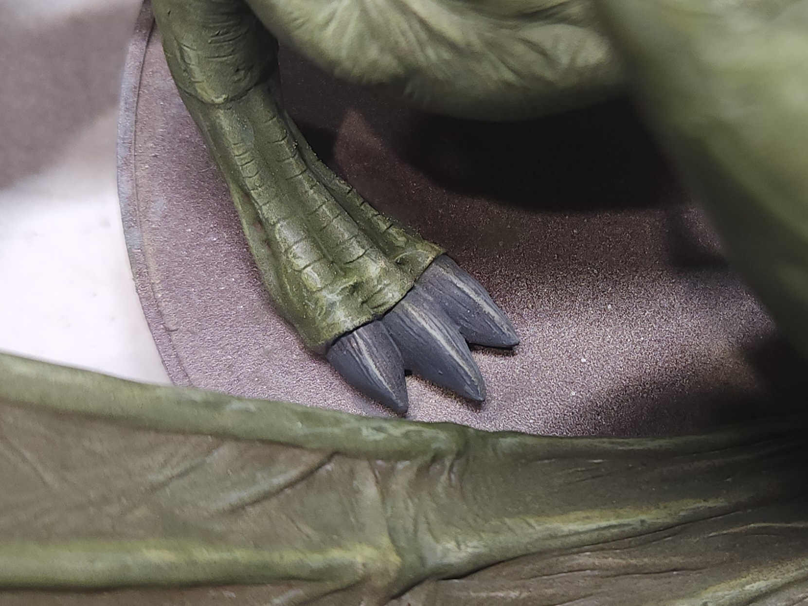 I’ll also point out that the join for the right hand/ wing (the one touching the base) wasn’t great. It looks as though it’s really intended to be stuck directly to a flat base more so than the palm. I’d previously tried to attach it directly, but the join with plastic glue wasn’t strong enough to support the weight of the wing without that additional base support.