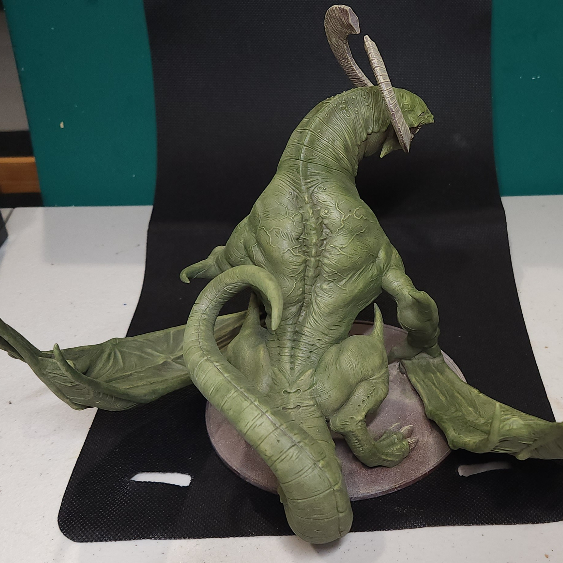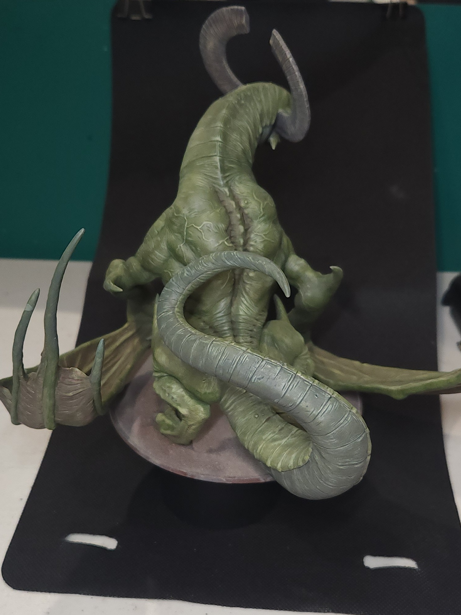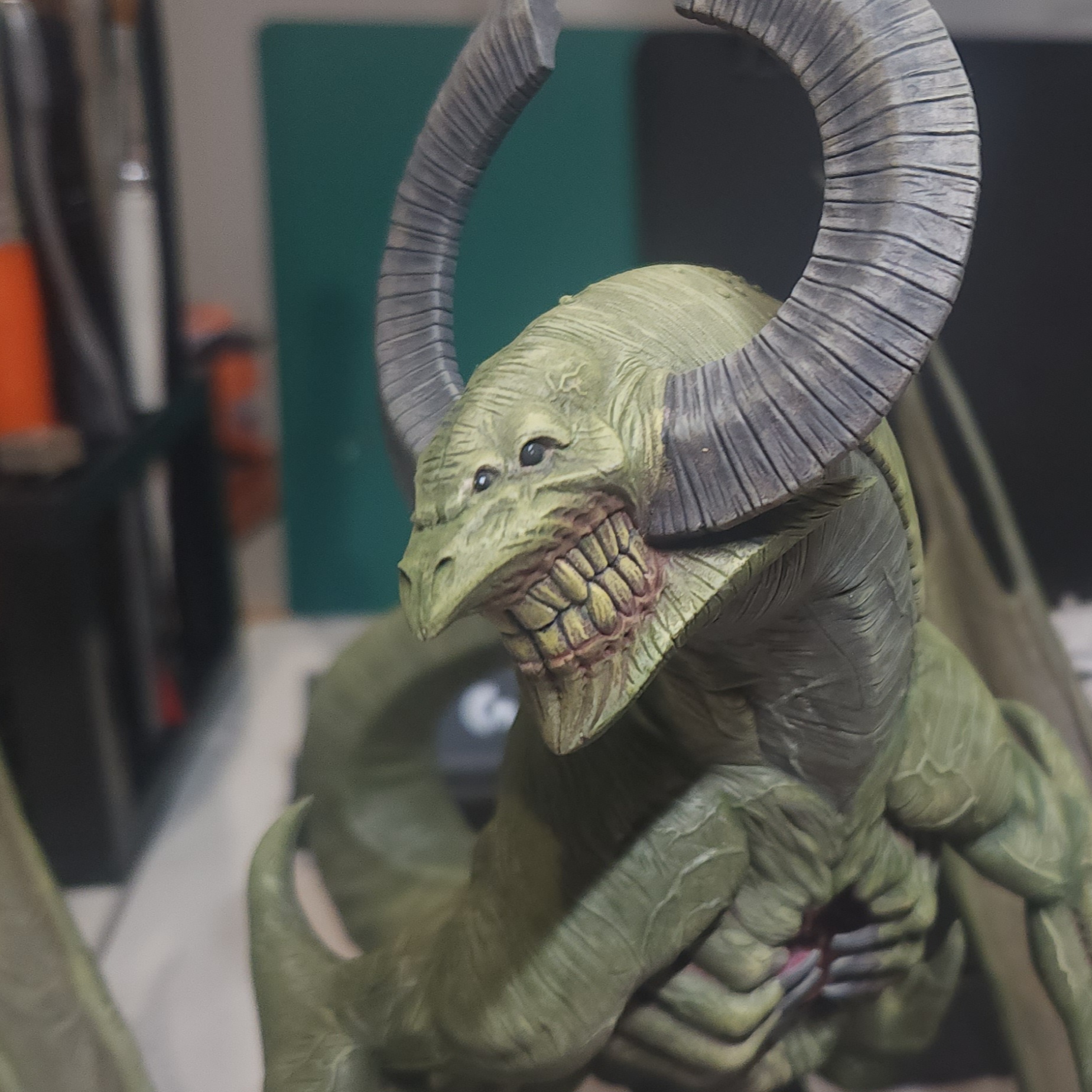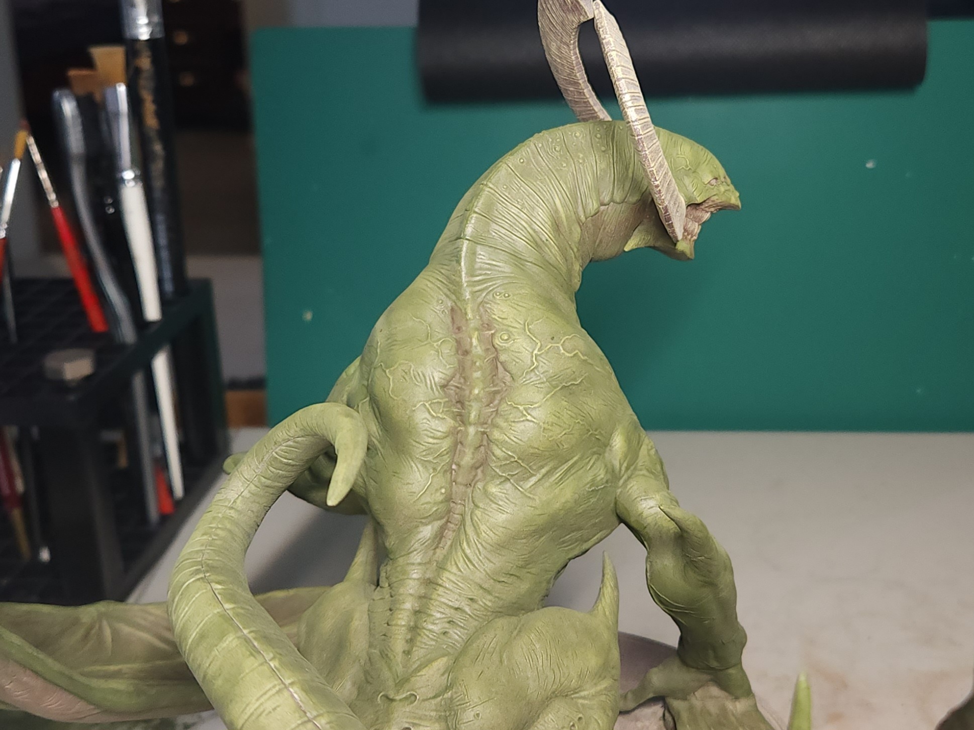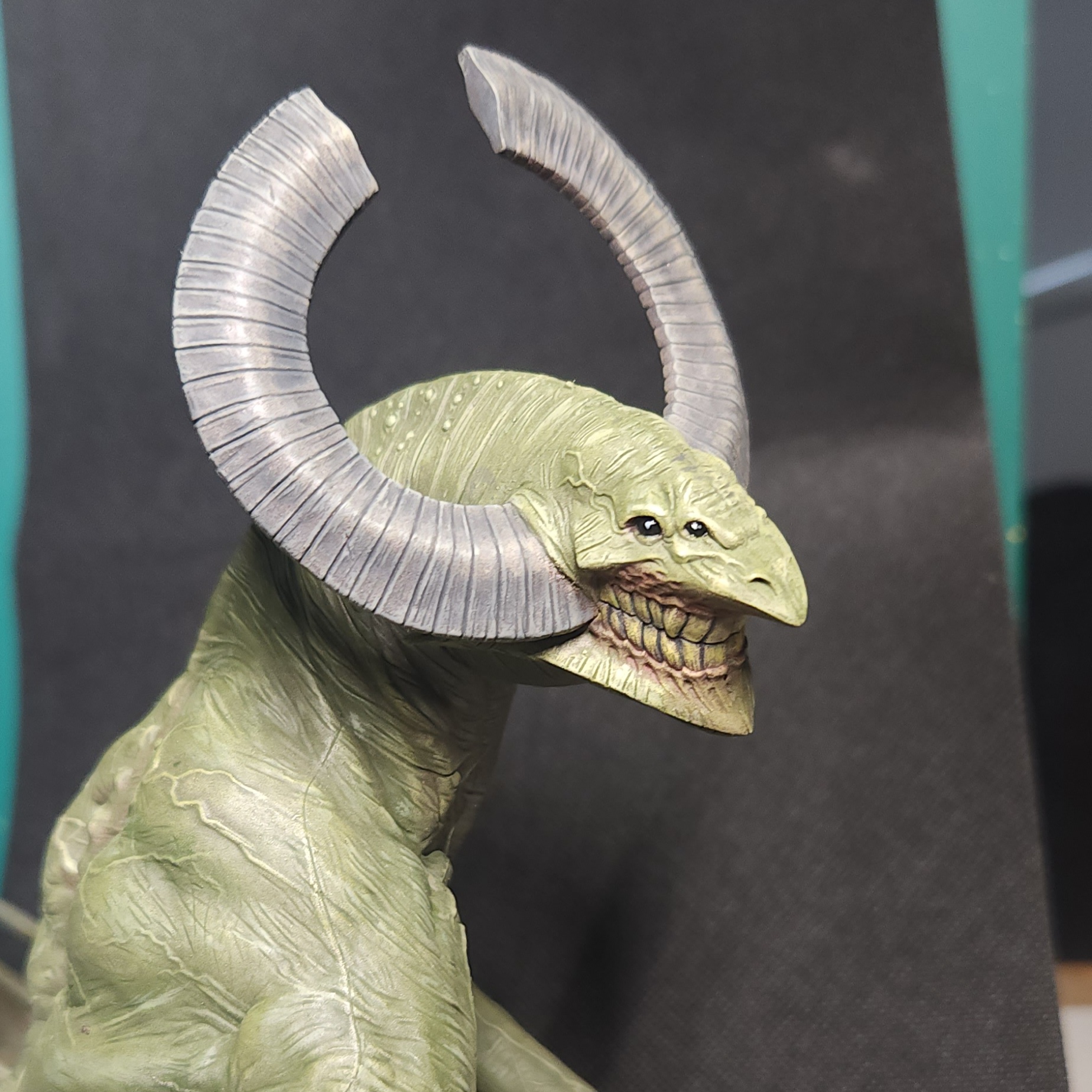- Shots of the neck also showing highlighting on the ridges of the skin using the same colour mix. I specifically only used this mix on the skin, not the horns/claws/ribs. They’ll get done with different colours later to differentiate them.
