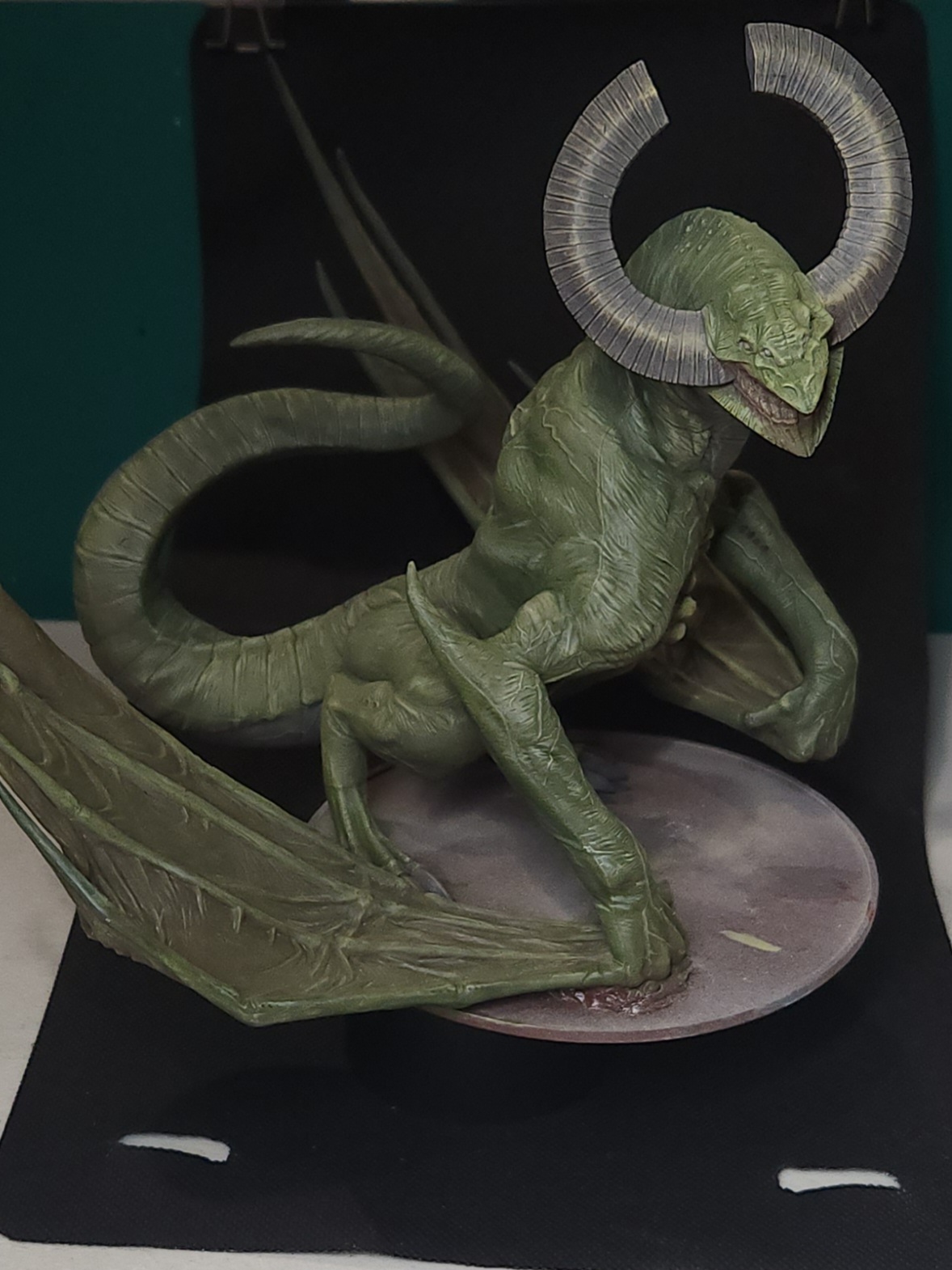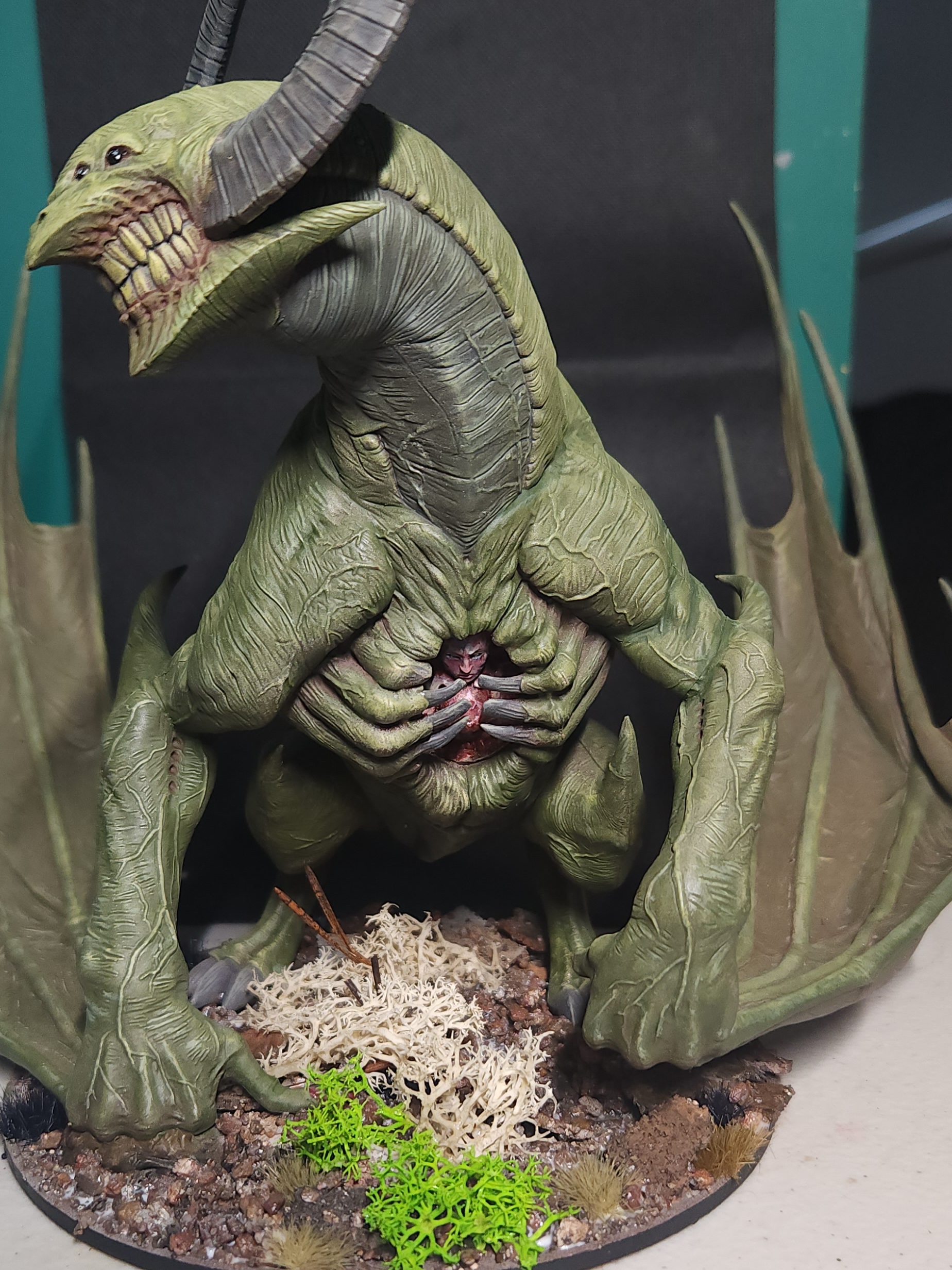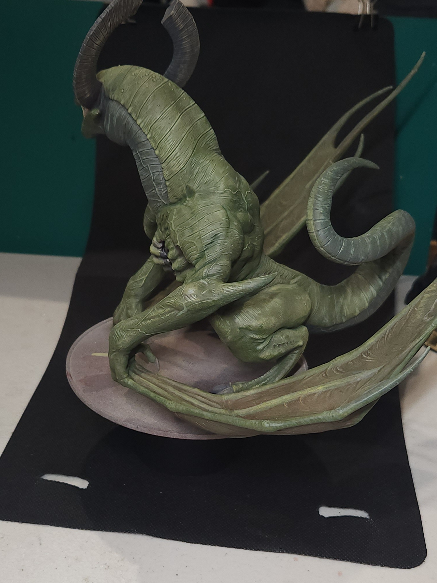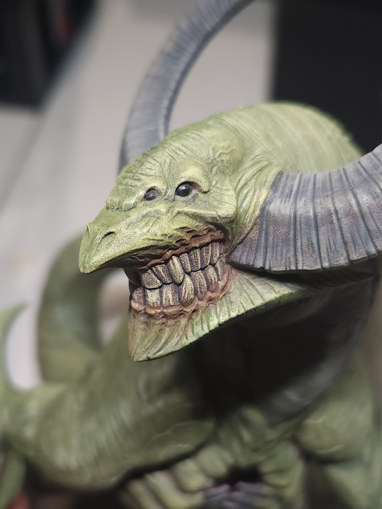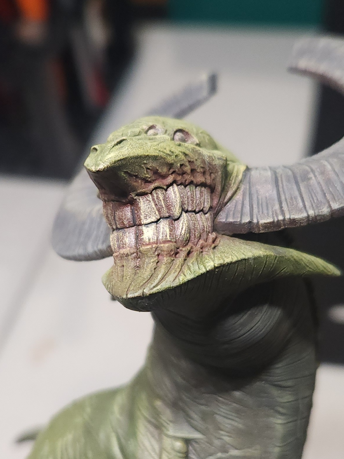- Shots of the neck also showing highlighting on the ridges of the skin using the same colour mix. I specifically only used this mix on the skin, not the horns/claws/ribs. They’ll get done with different colours later to differentiate them.