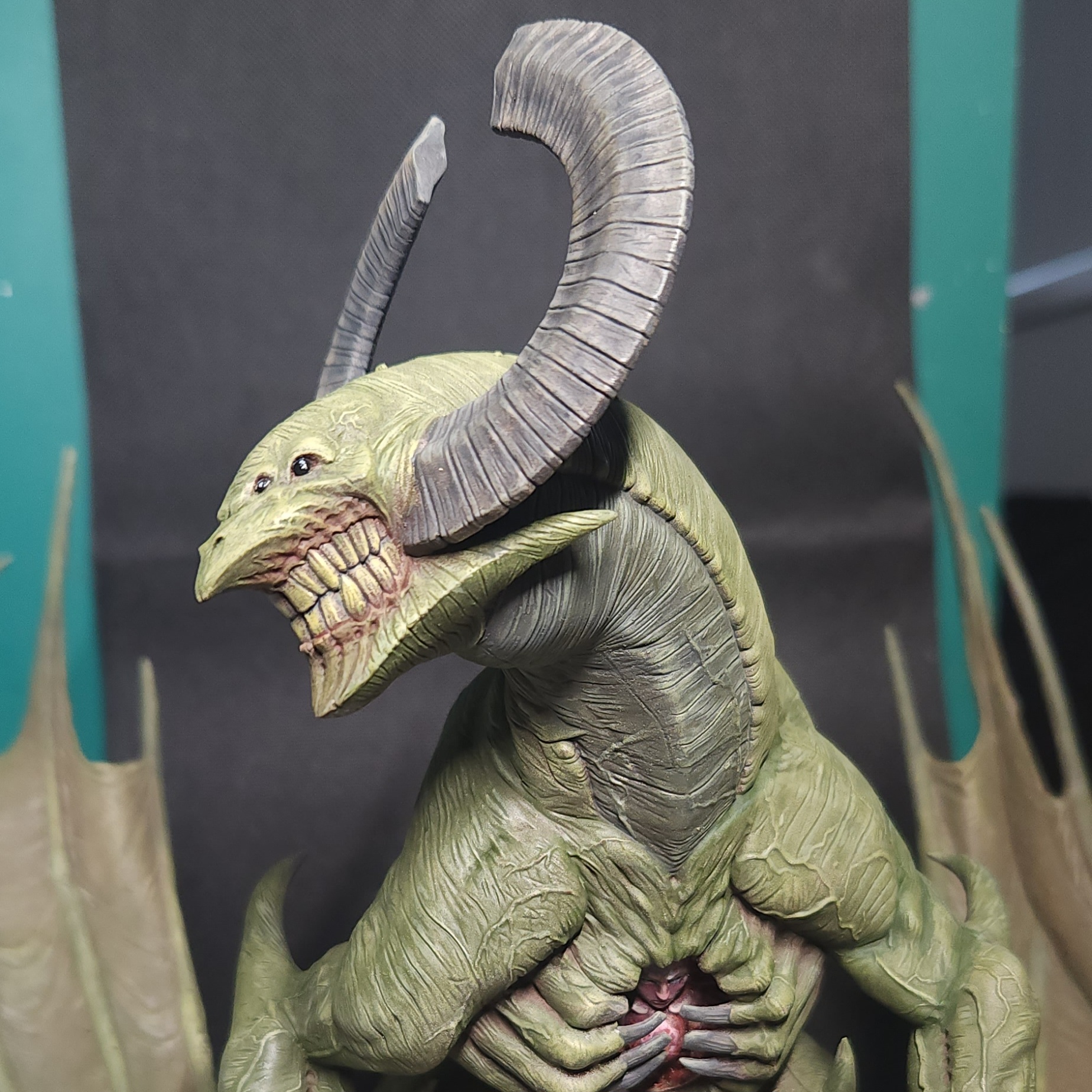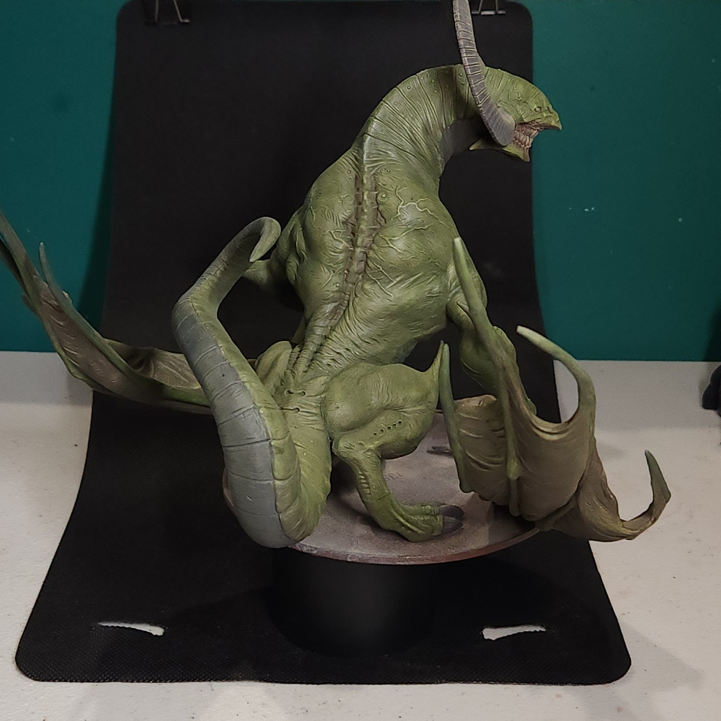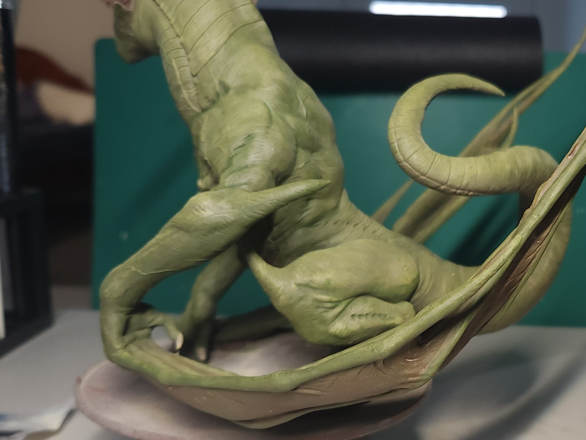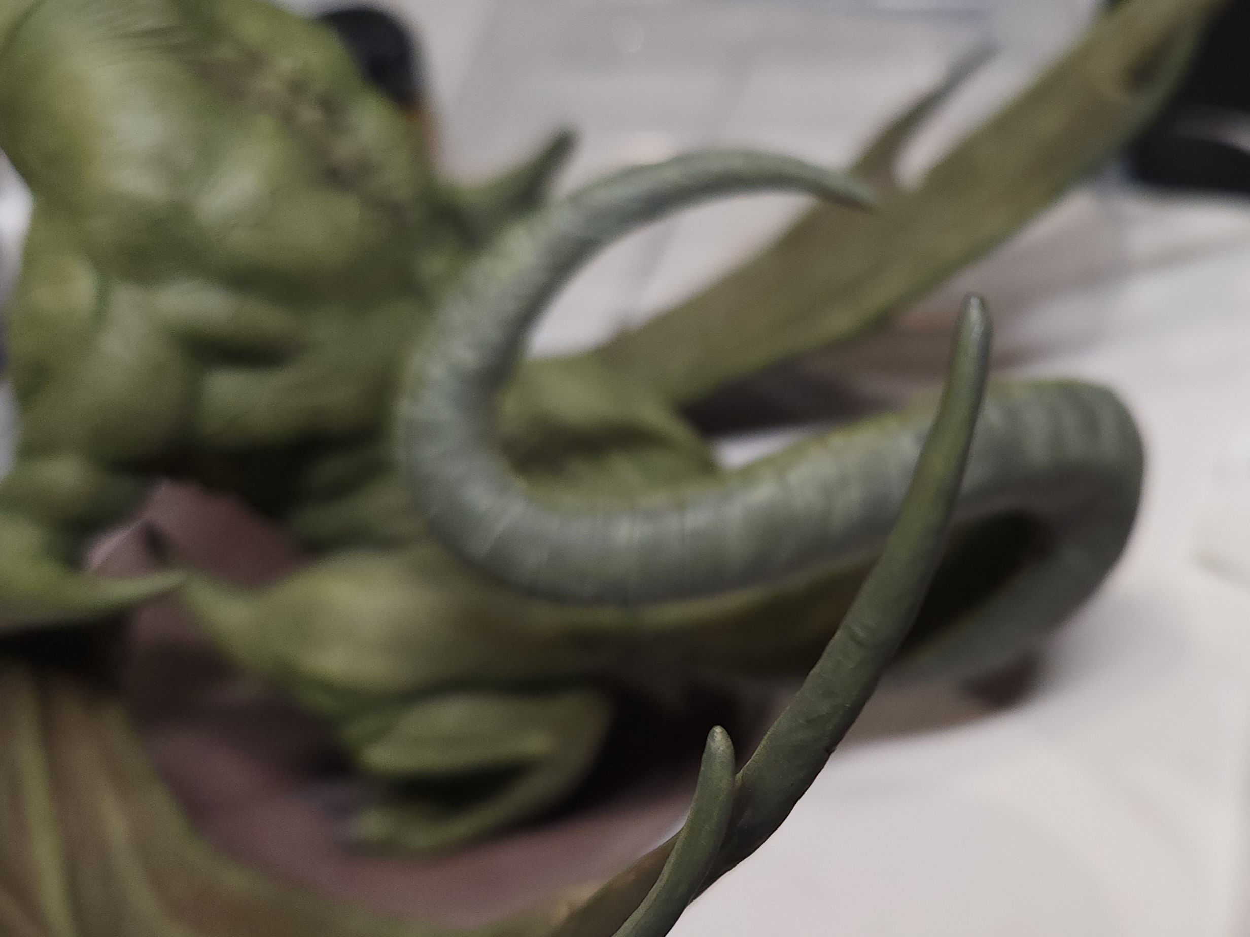 - Shots of the neck also showing highlighting on the ridges of the skin using the same colour mix. I specifically only used this mix on the skin, not the horns/claws/ribs. They’ll get done with different colours later to differentiate them.