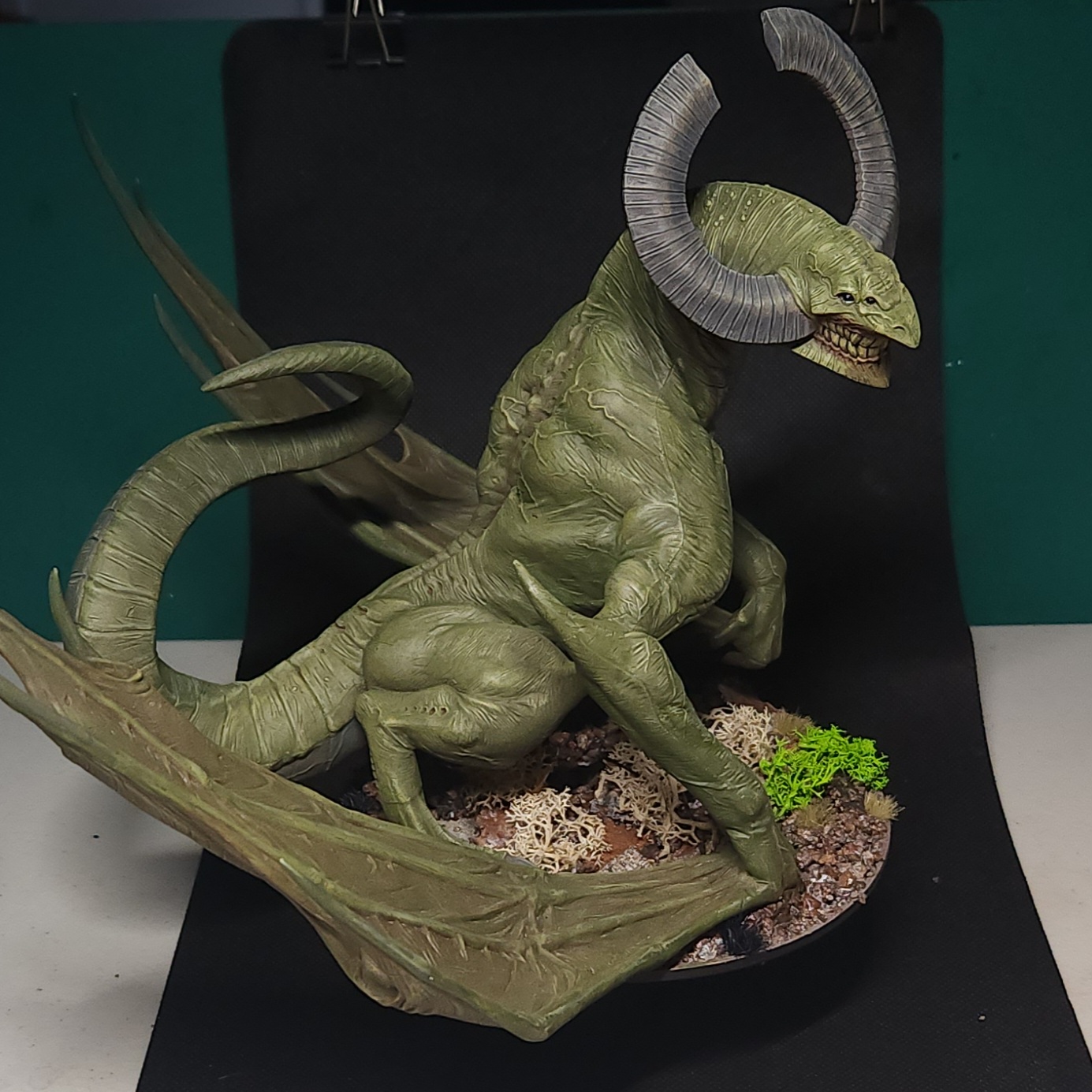 Its a little difficult to see, but the placement of the “dead” lichen and the black tufts has been intentionally done. The KD Dragon is radioactive! The plant life directly below it is dead, lifeless, burnt. In front, it still lives… for the moment.
