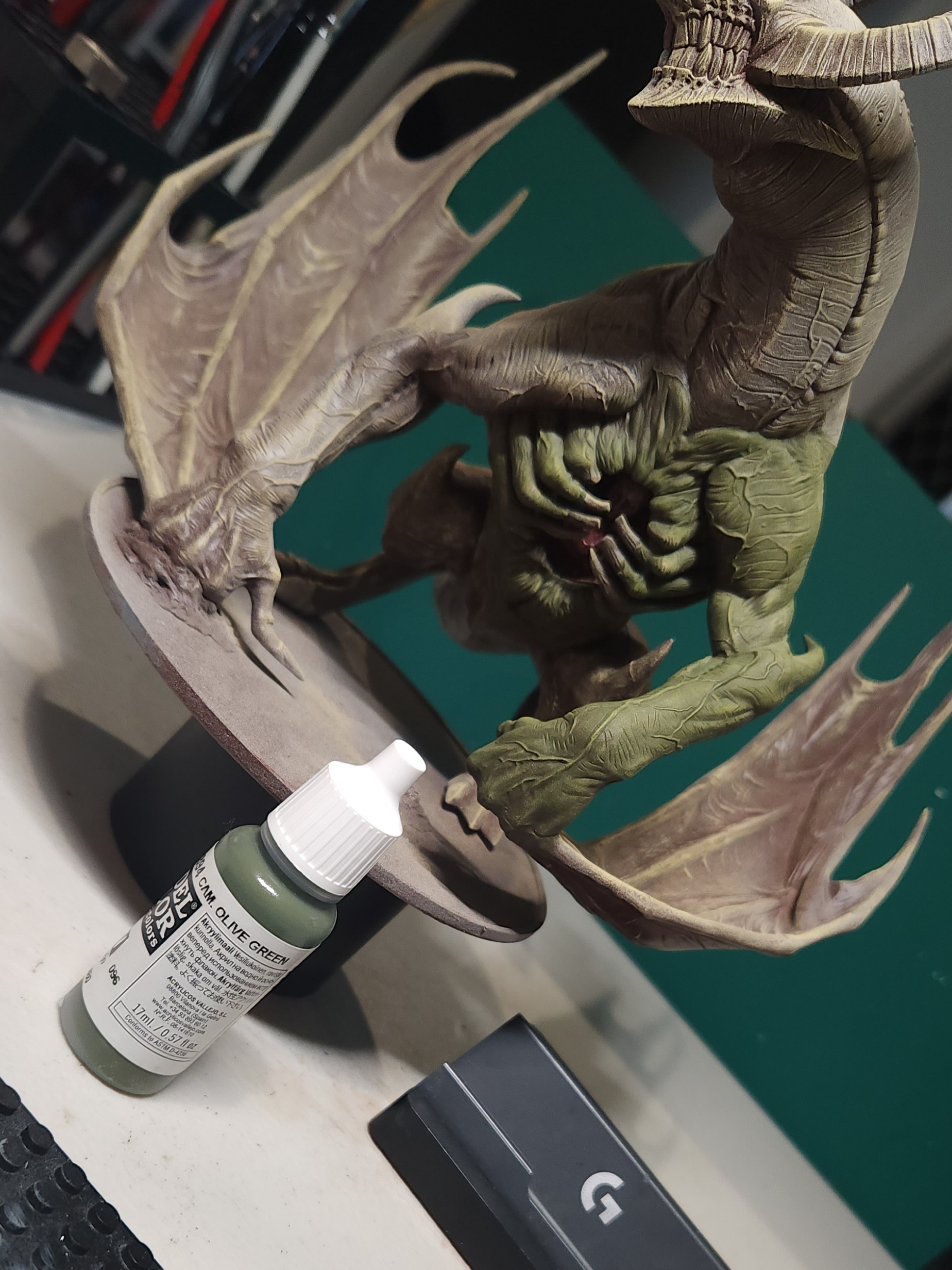 For the shadows and underside of the skin I used Vallejo Military Green.