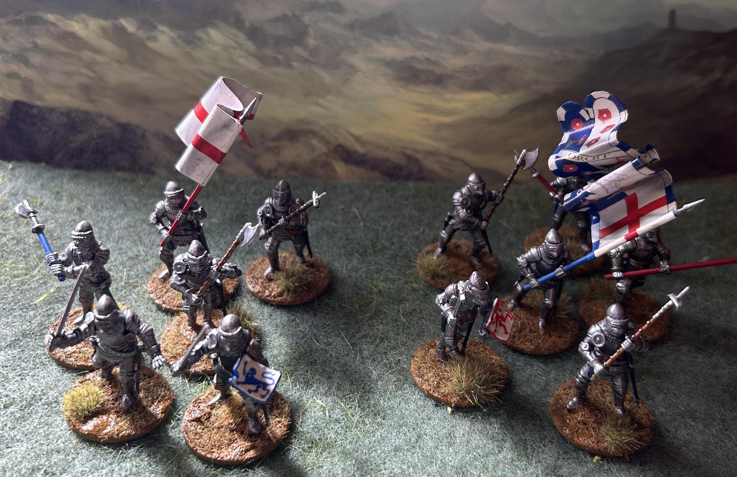 The banners are in the information sheet that comes with the kit. I went for a simple Cross of St George and then the banner of Henry V. This is because I bought the Copplestone Henry V to use as my Warlord.