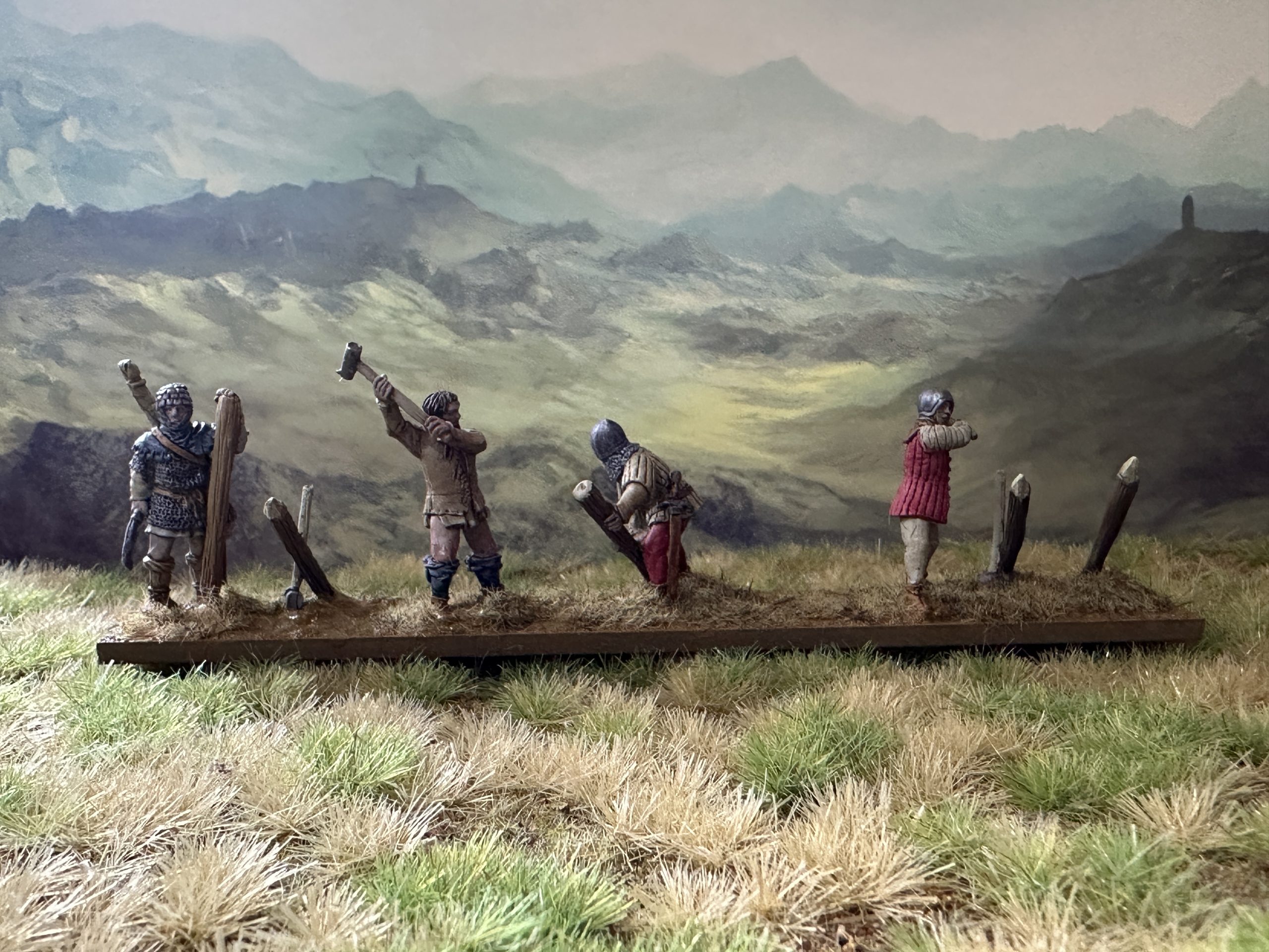 Here is the base of the archers preparing their defences. The game doesn’t need this but I thought it looked cool. You can see in the closeup that I’ve managed to replicate the wet, muddy ground basing I did on the men-at-arms.