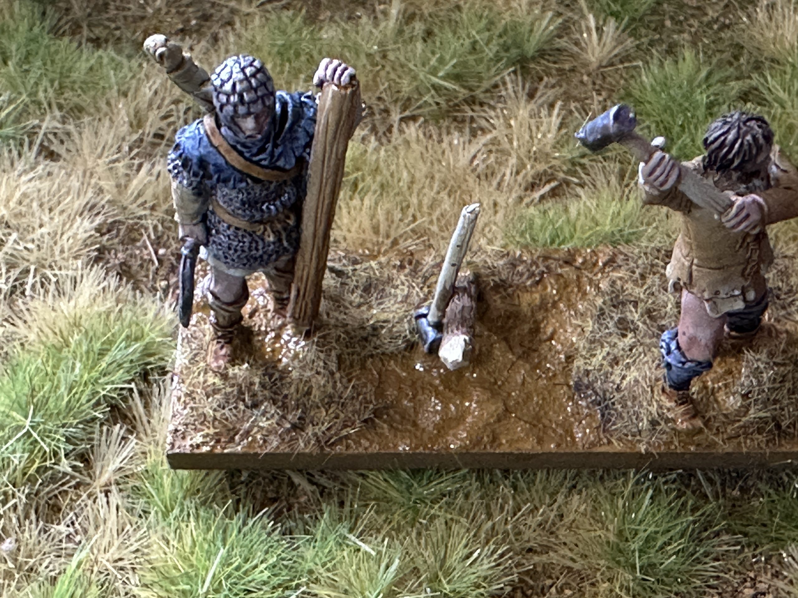 I tried to add some mud and trampled grass as the basing scheme. I used gloss varnish to try to get them looking wet. Difficult to see in photographs but it looks okay: