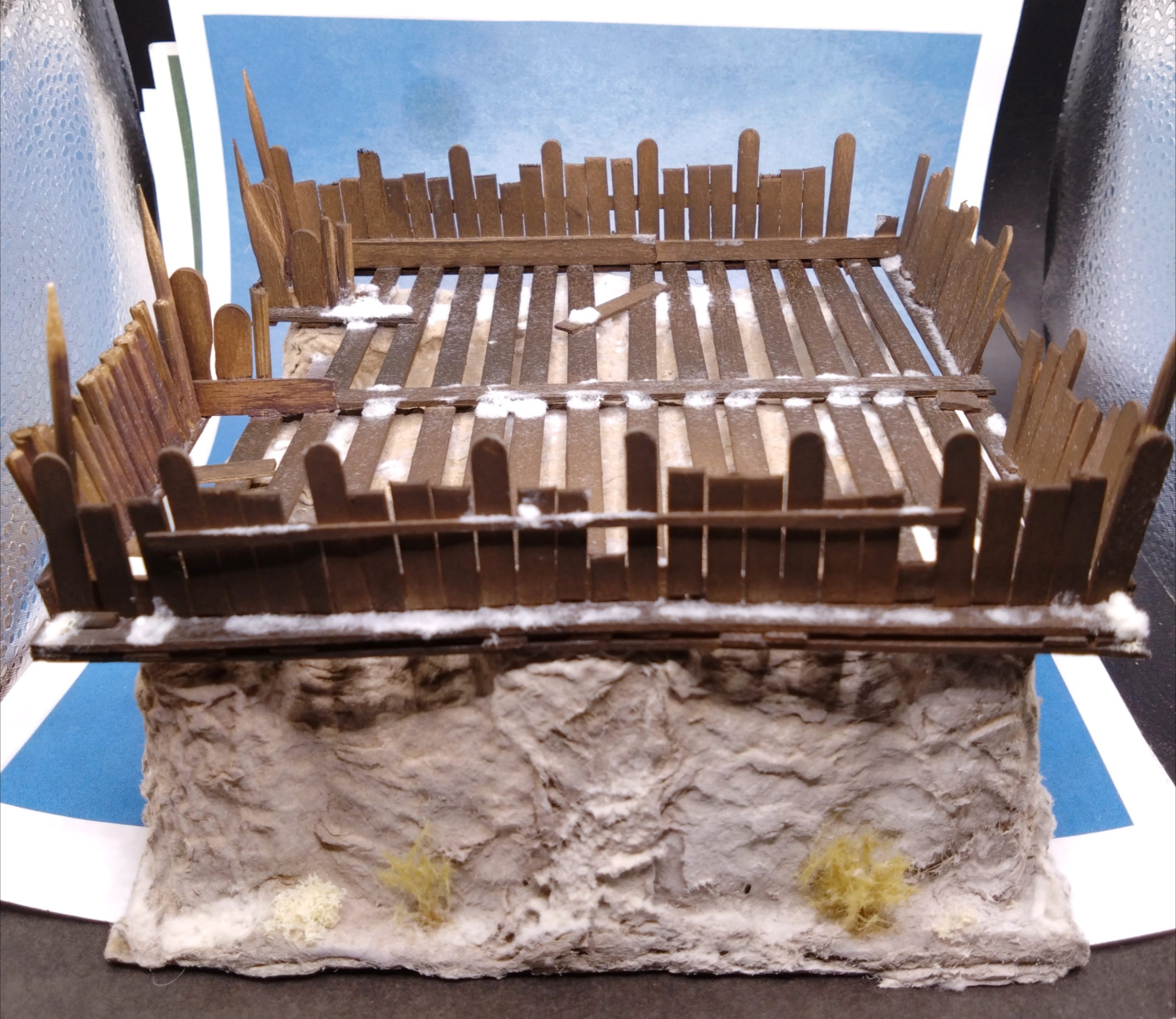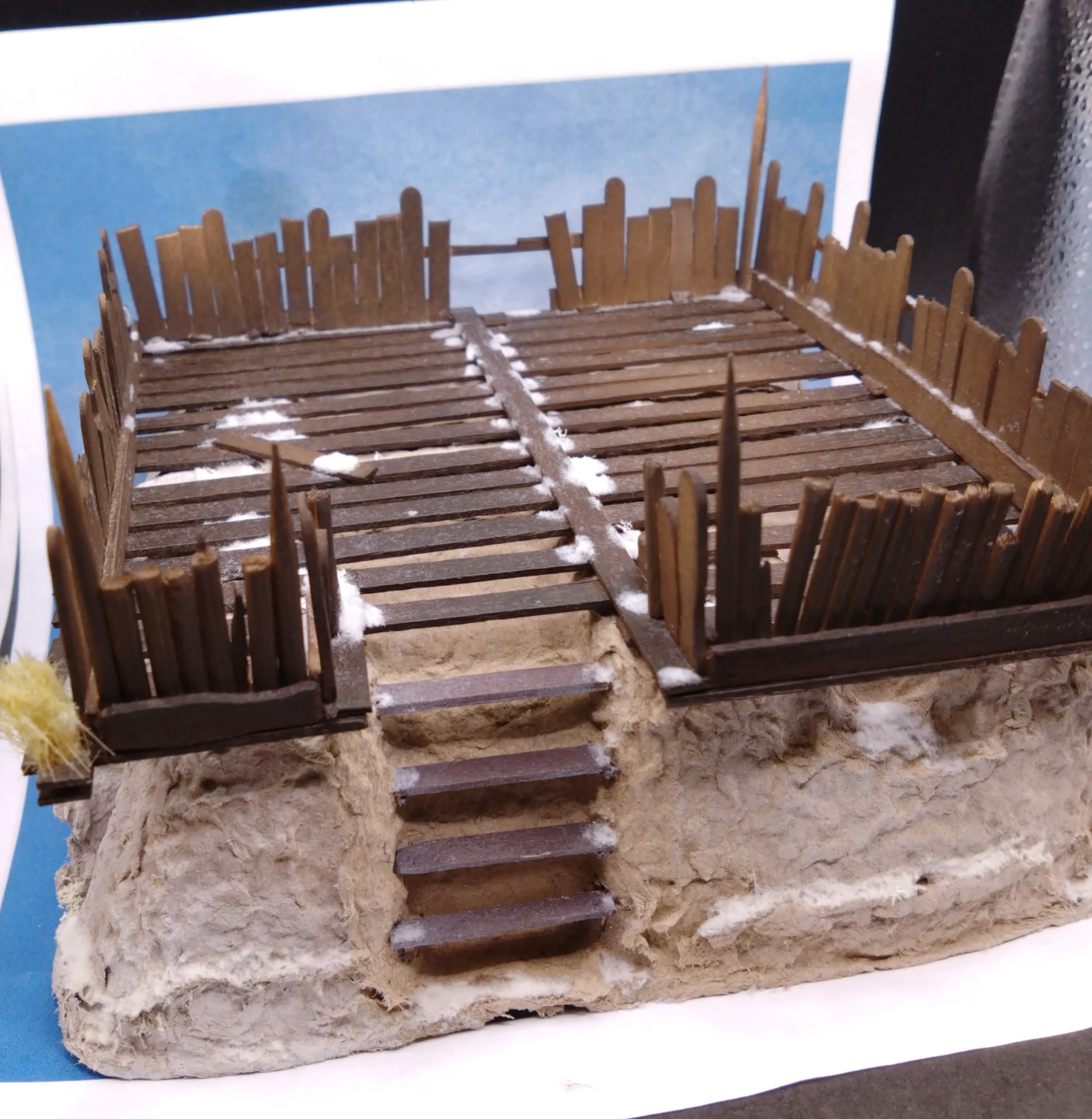 A paper terrain freebie from the Osprey website became something more 3D with some coffee stirrer embellishments.