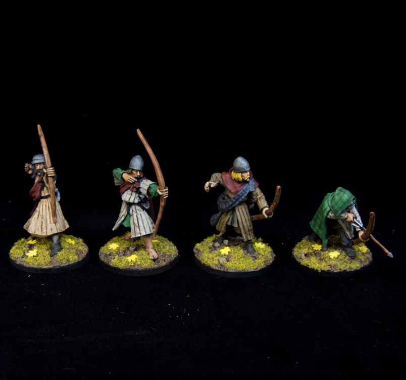 I decidet to go with the welsh as they got lots of lovely metal minis wich does not look too fancy. Some of the knights wearing just simple helmets and gambesons instead of mail armour which makes good squires for the warband. The bowmen all have some kind of coats mostly slung around the shoulders which mixed with some patterns makes them stand out from the standard bowmen a bit.