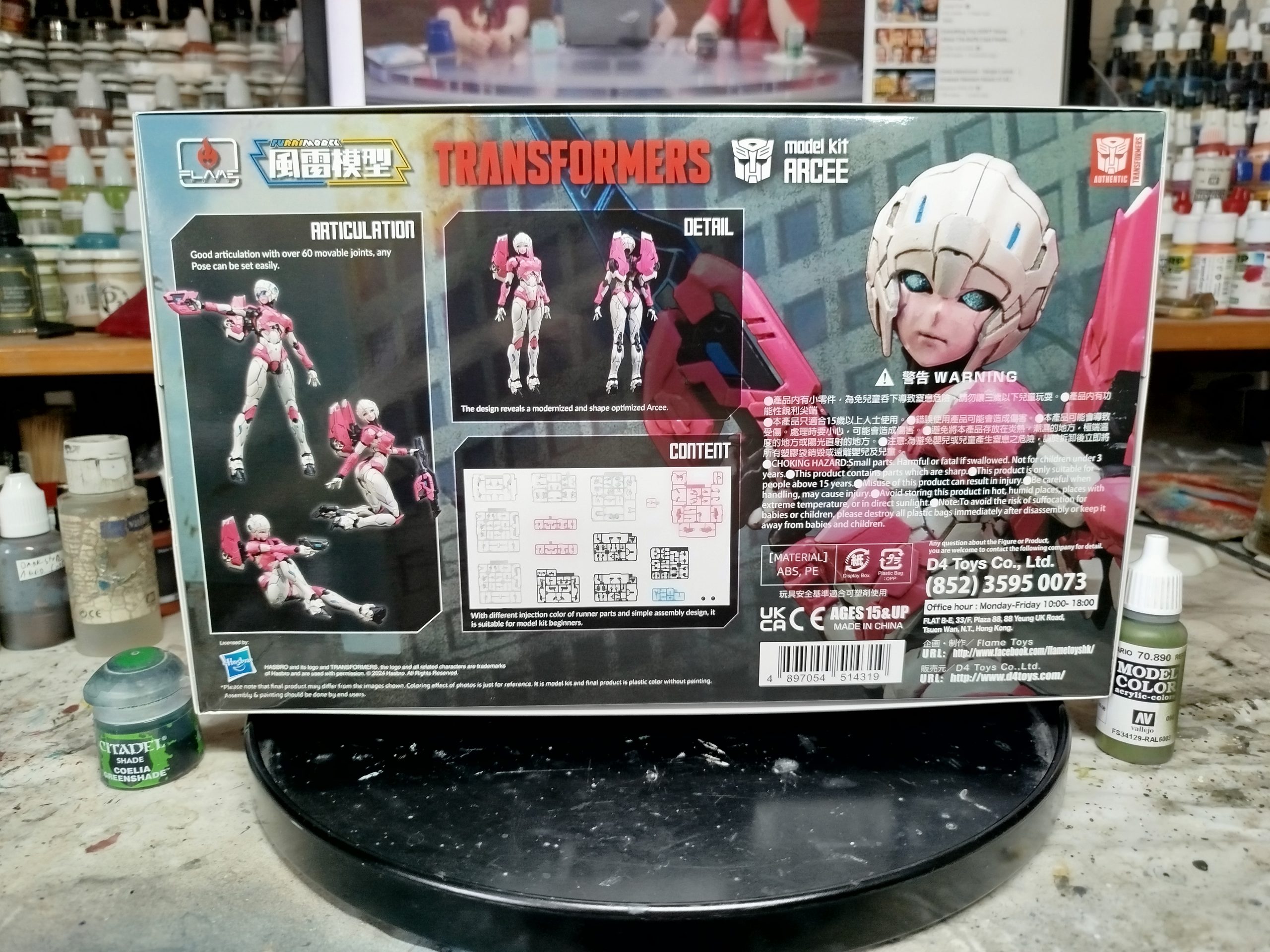 A few months back I was able to pick up Arcee, on eBay for a steal, still brand new in shrink. I’ve been deep in a priority project since then, but I finally finished that recently, and caught up on my immediate backlog. I build and primed my next project, but then found myself with an afternoon with nothing to work on, unless I didn’t want to wait for my primer to cure fully. Seemed like a good time to get Arce of the shelf and build her.
