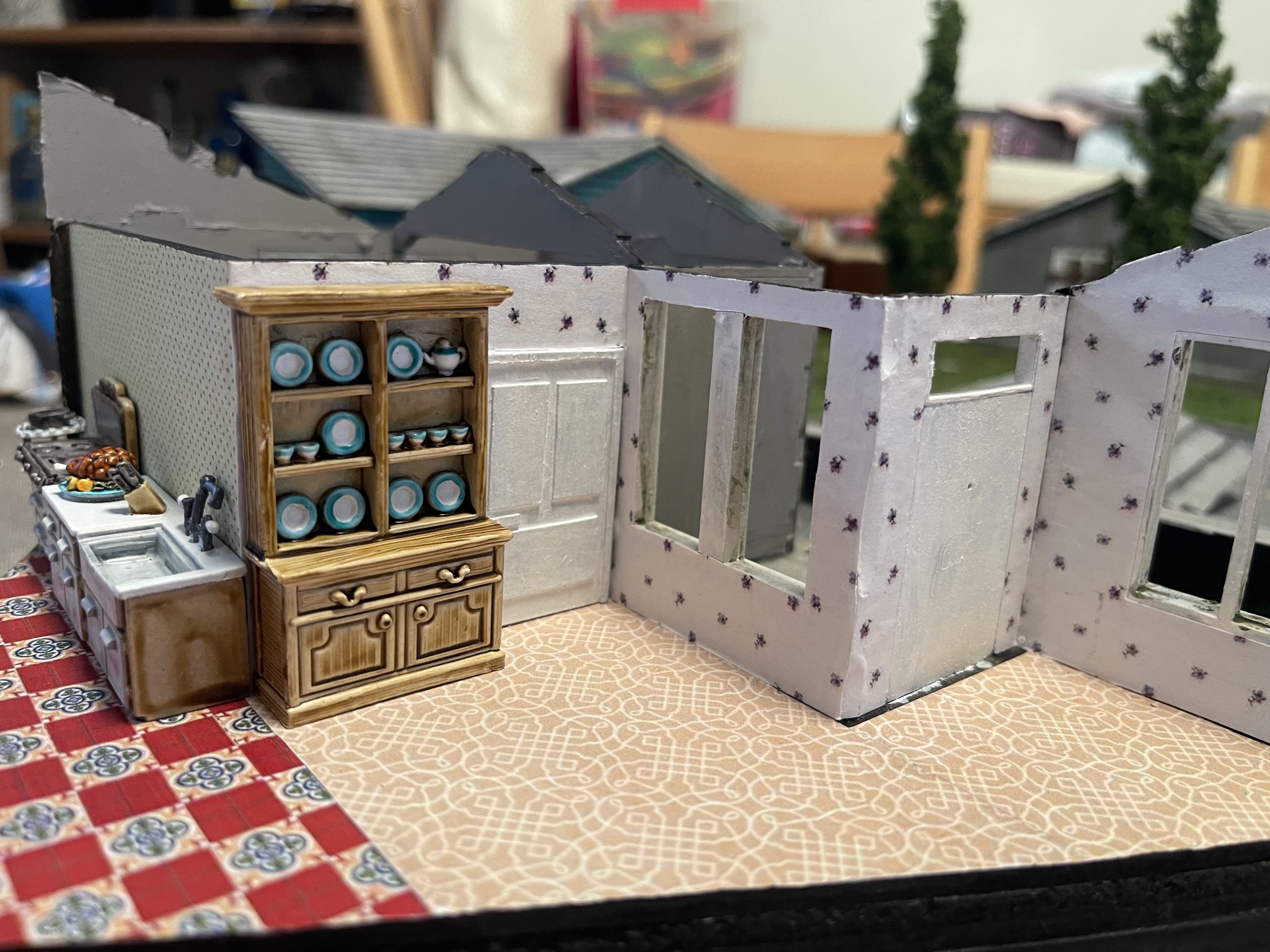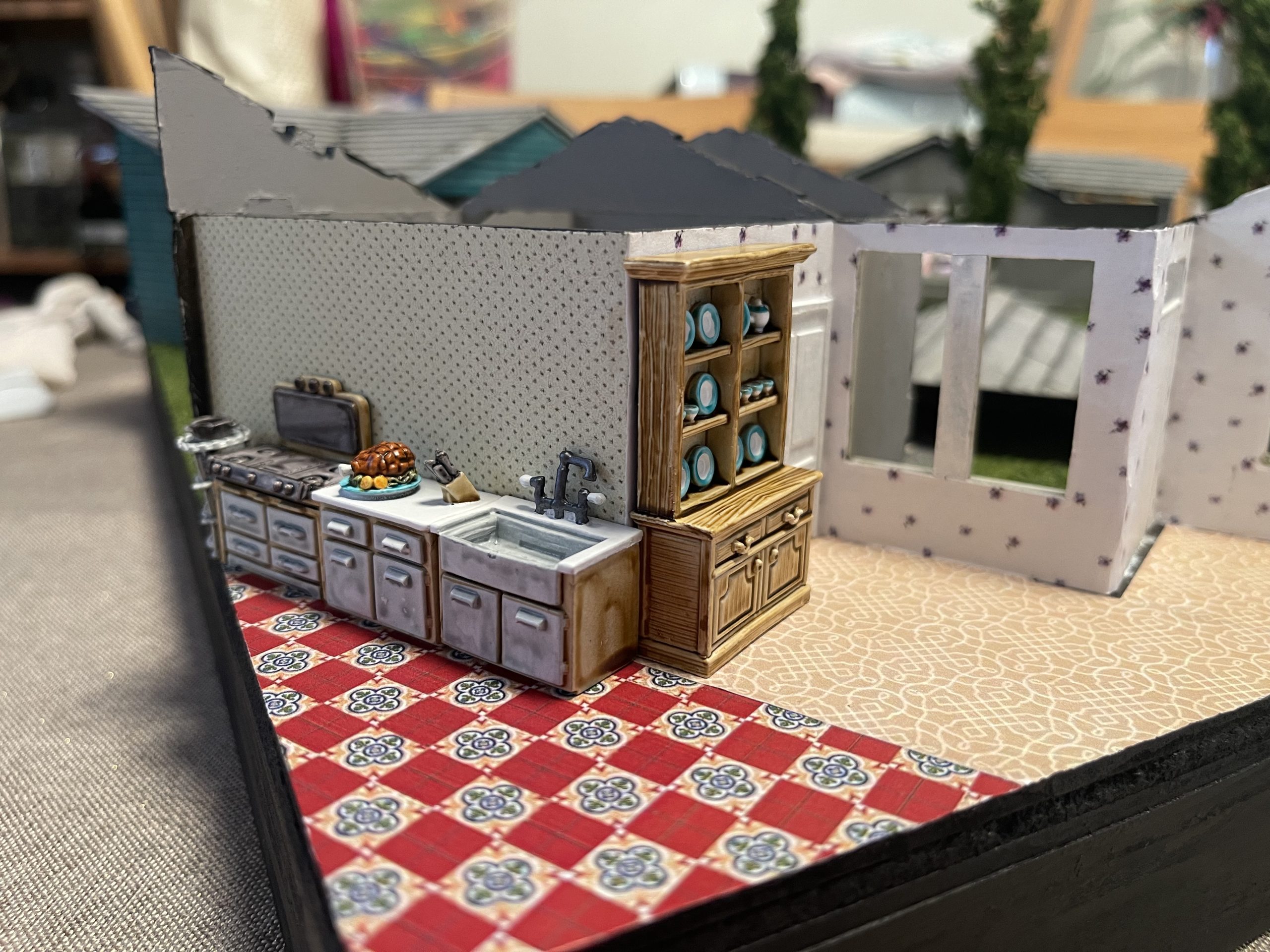 I’m very happy with how its come out so far, i’m within sight of the finished product! i simply need to add in the furniture and then find some appropriate debris to scatter to the winds to make it look like a lived in environment.