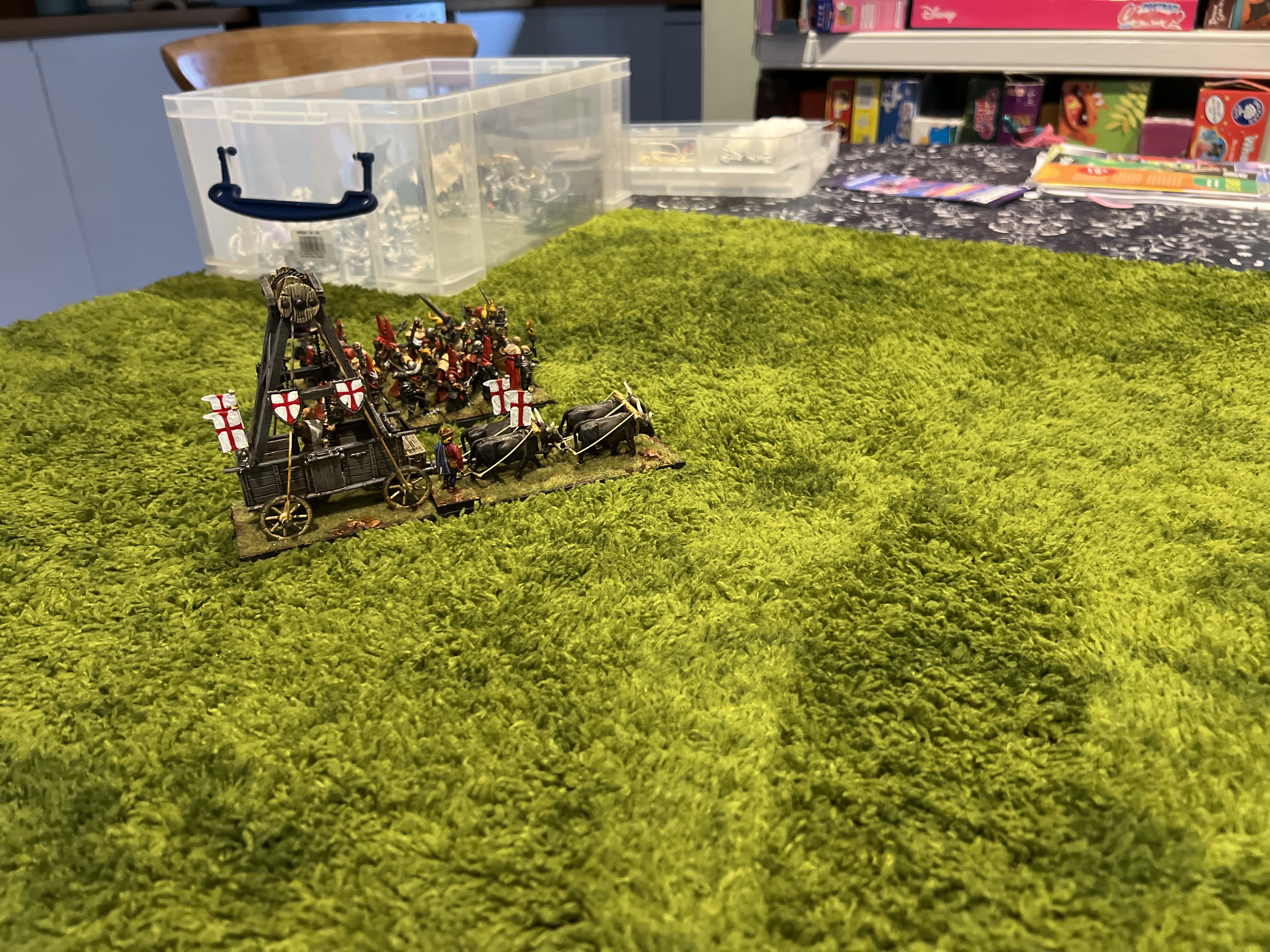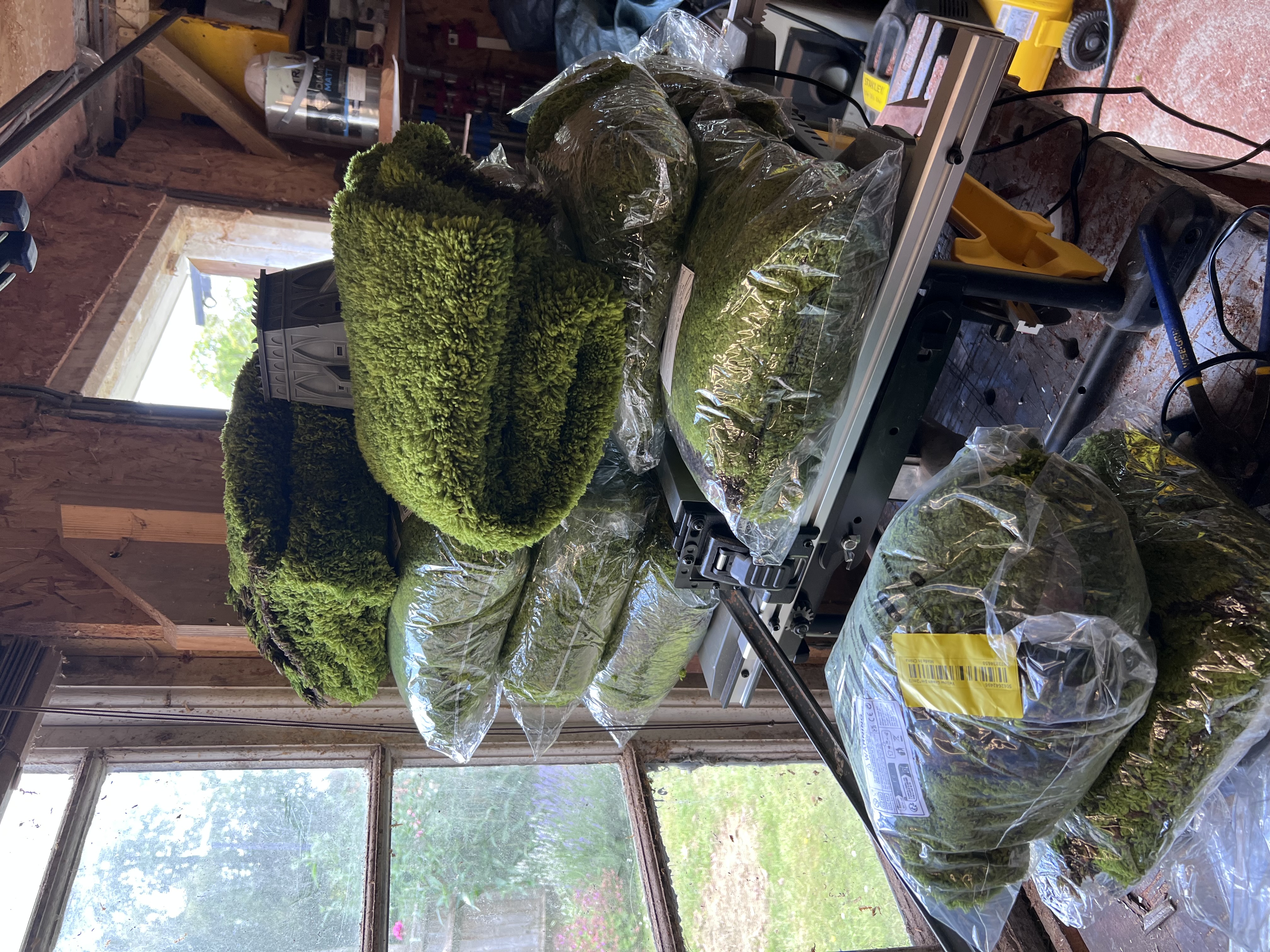 Here you see the very soft and playable backing. This is so much more useful as it’s annoying trying to get the mats to lay flat instantly the winter. My mats needed me to glue on flock and the glue has a mild memory and won’t go flat without weights. This is also better for storage as they can be stiffed into any old way/shape and still lay flat on the table. It’s an architectural decorative moss, yellow green from Temu for £17. I’m hoping to shave it slightly like the napoleonic gamers do with ready bear fur. If this works well I’m going to make this the mainstay of my travel sets for massive games. Buying ten of them for a 8 metre by 2 metre table and use the last two to re cover my hills etc. Will be an improvement!