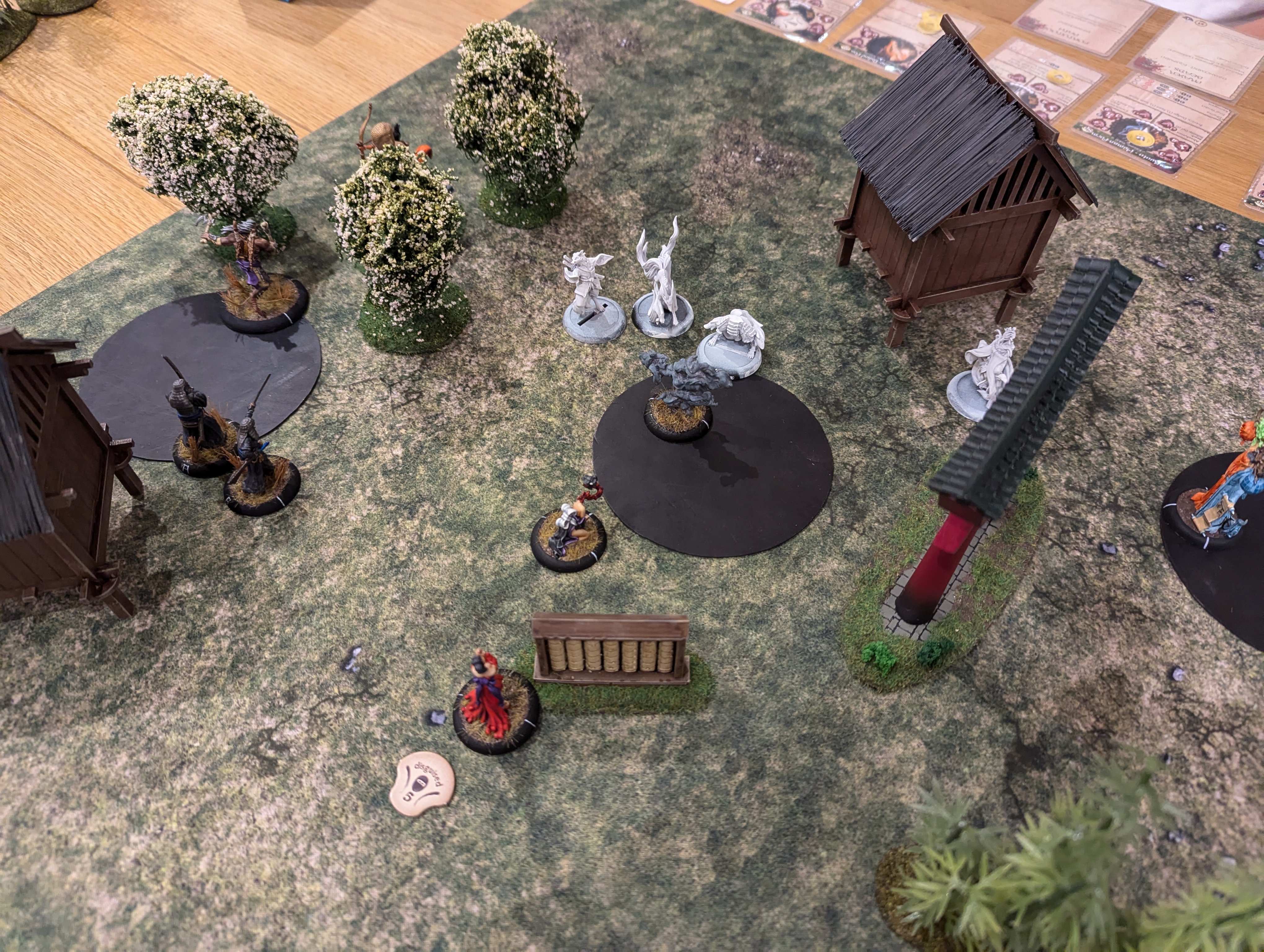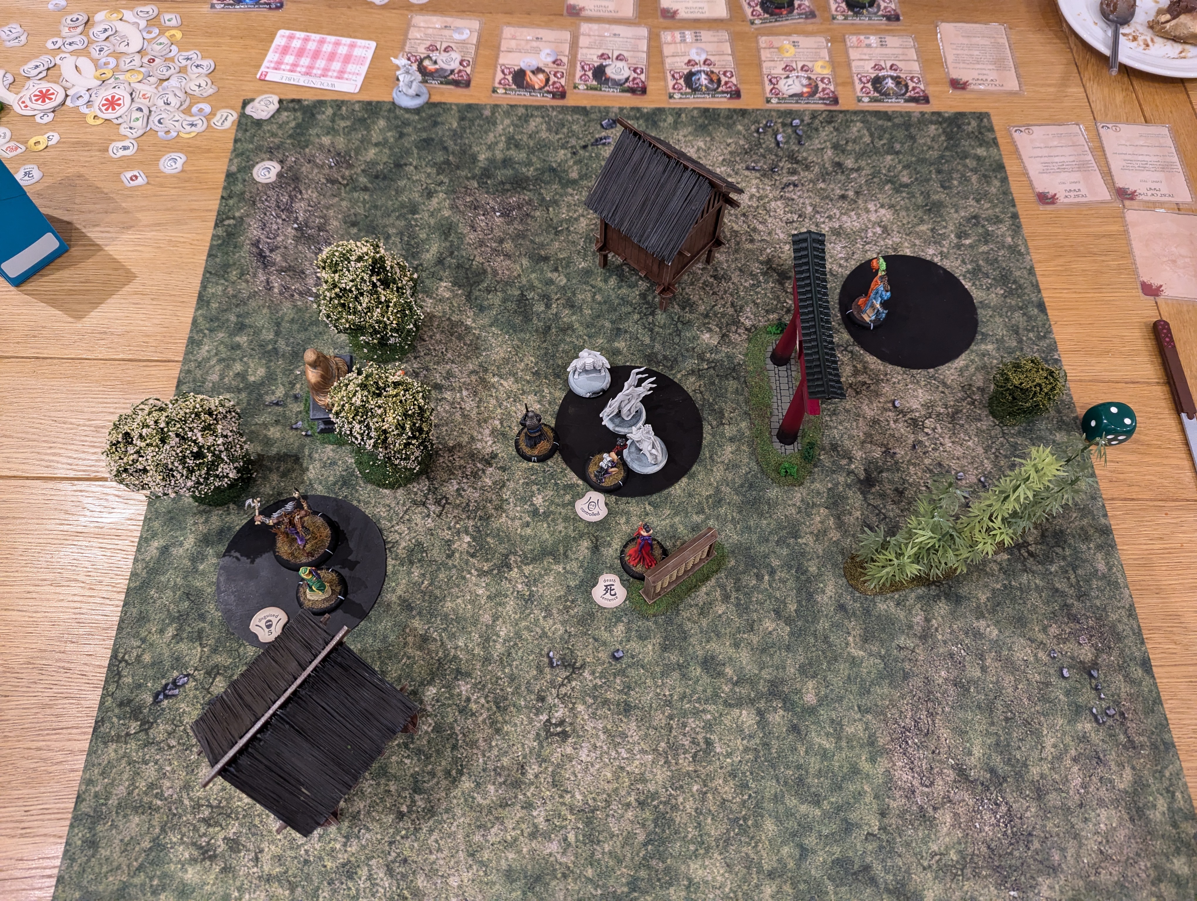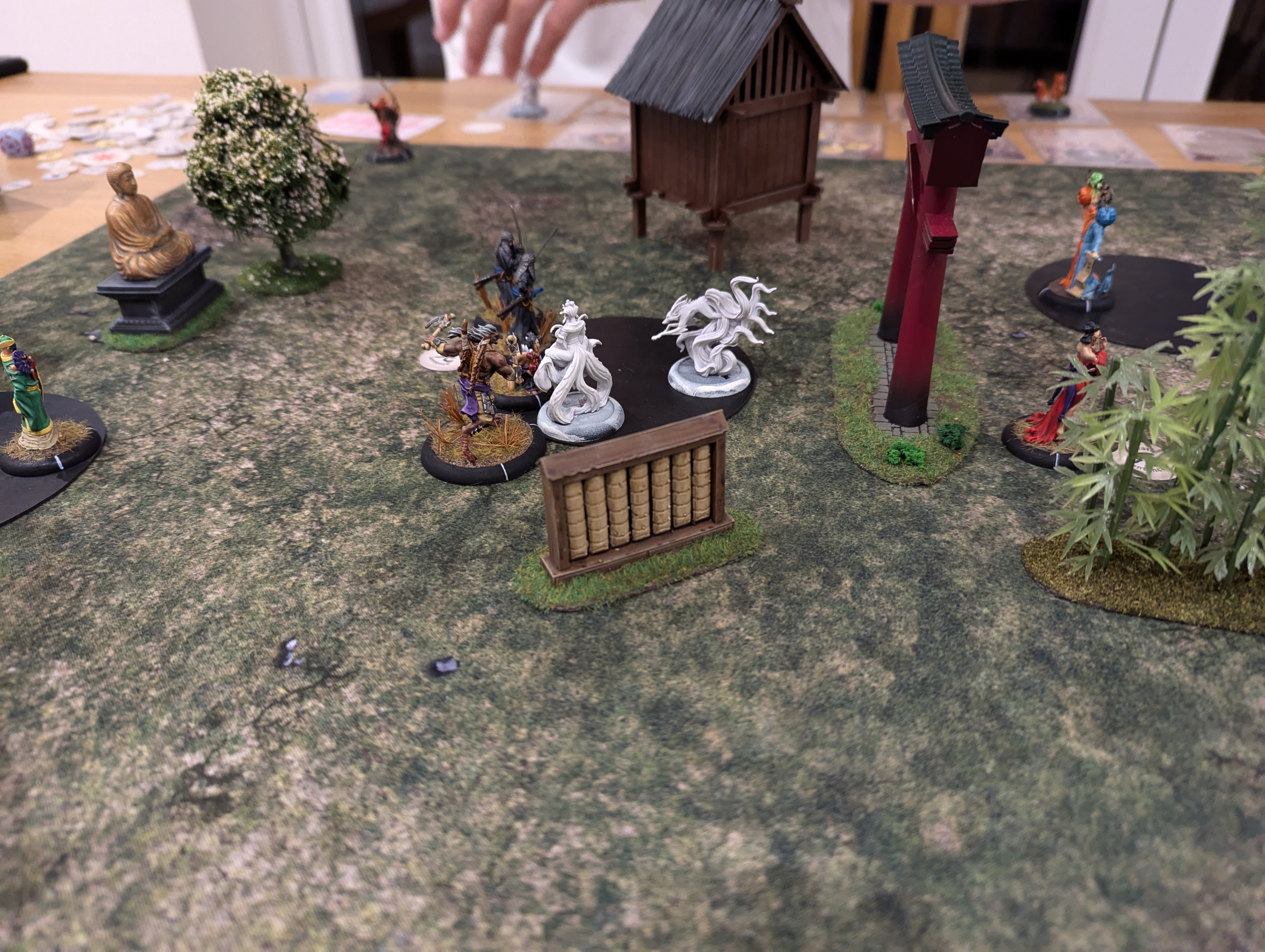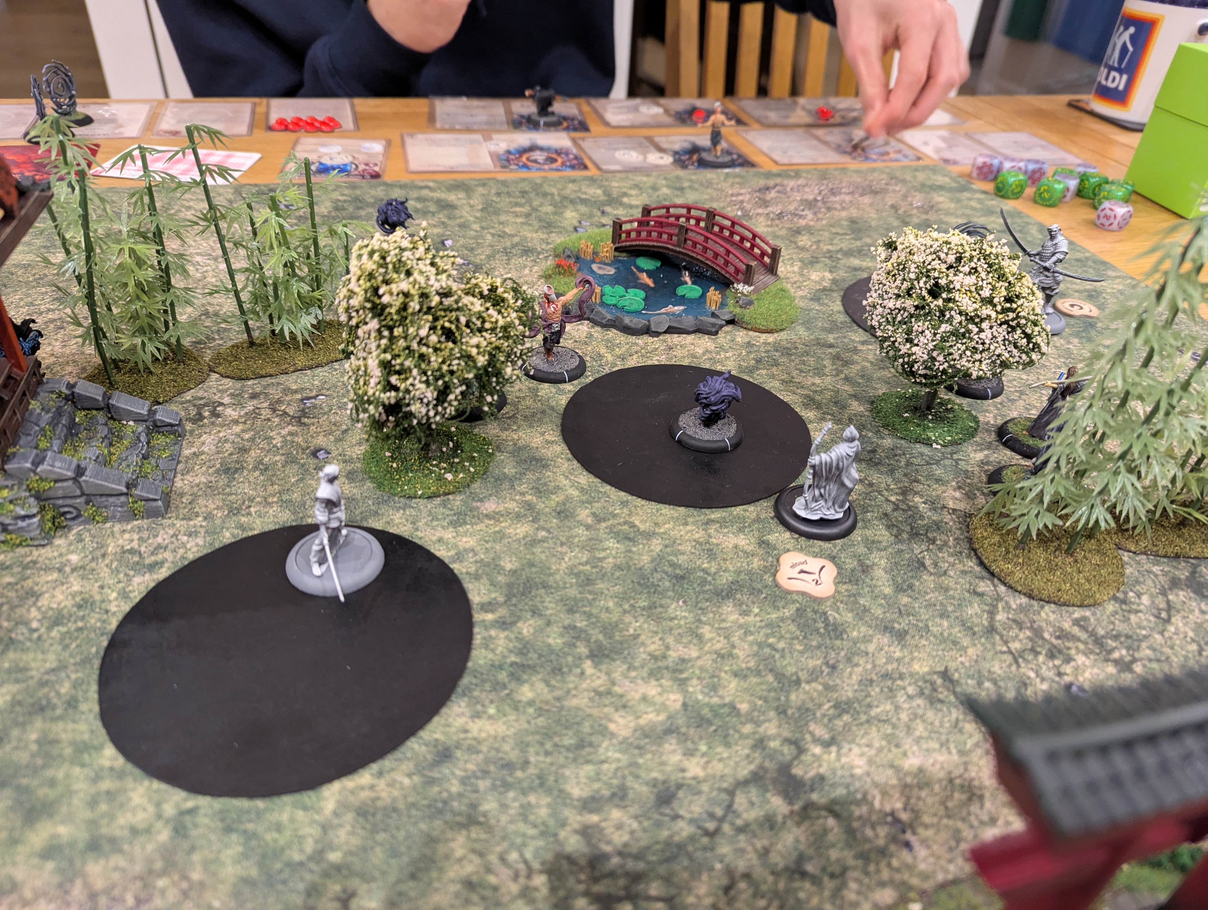 As a final move for the round, Koda attacks Tenbatsu and, thanks to the Death Sentence markers, is able to cause 4 wounds. Maybe I should be more concerned!