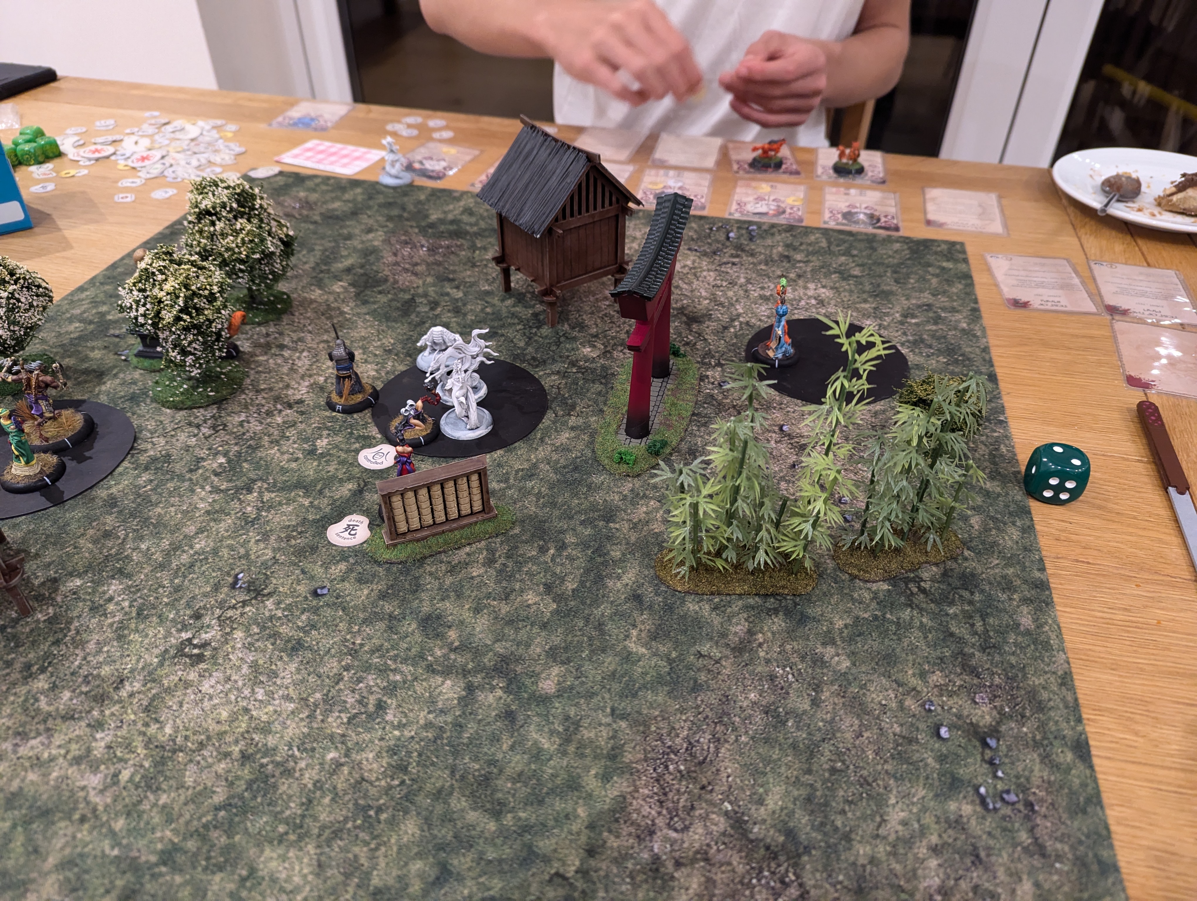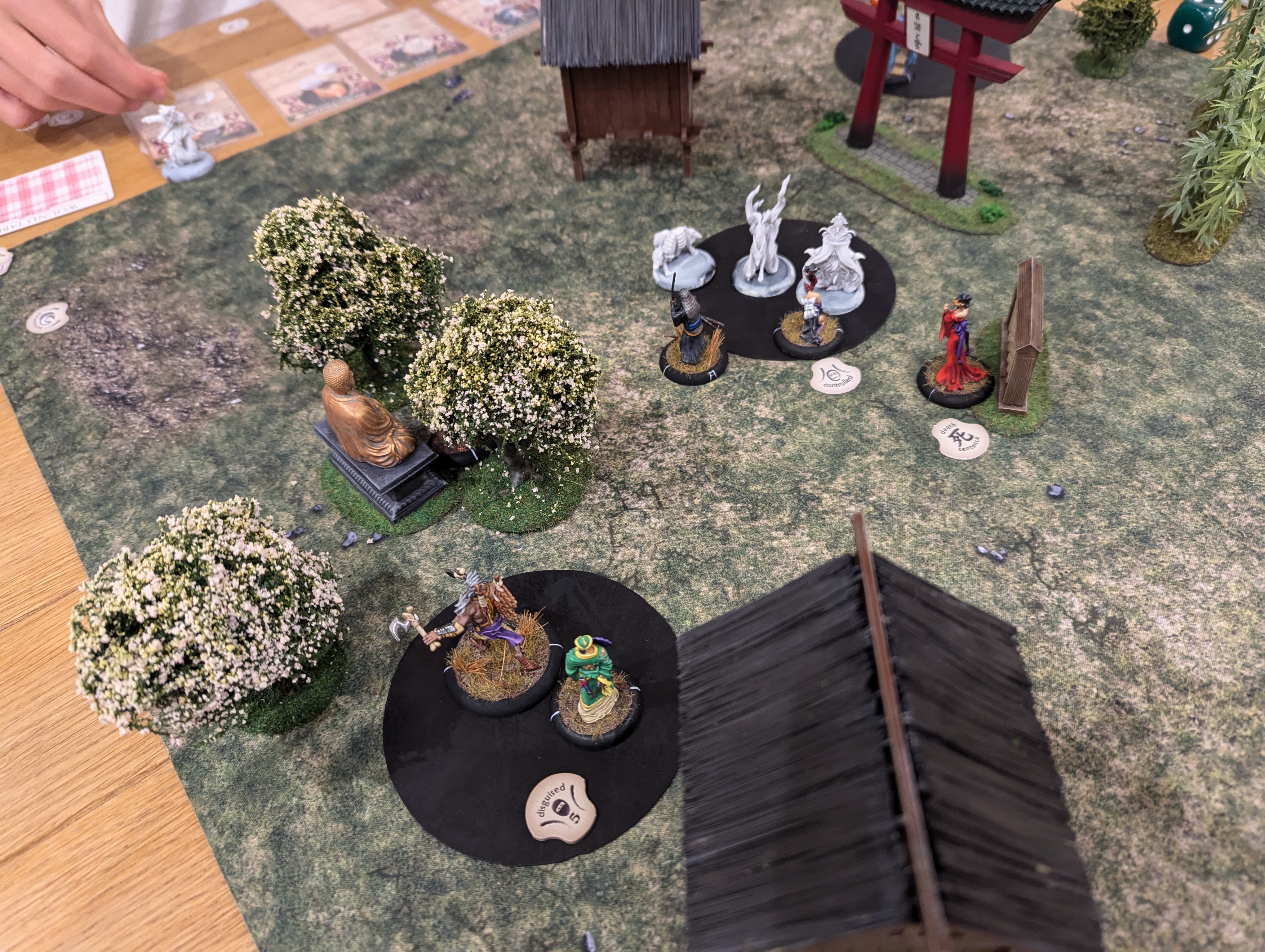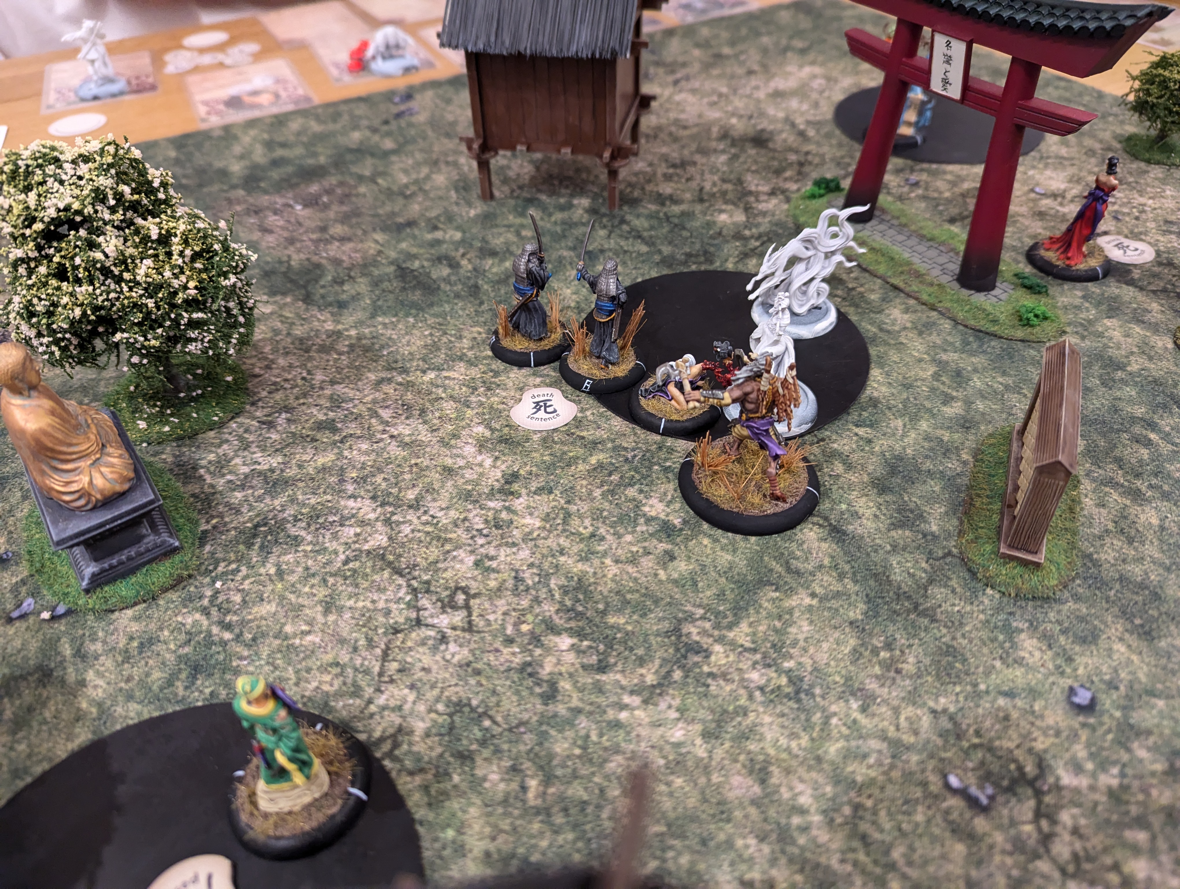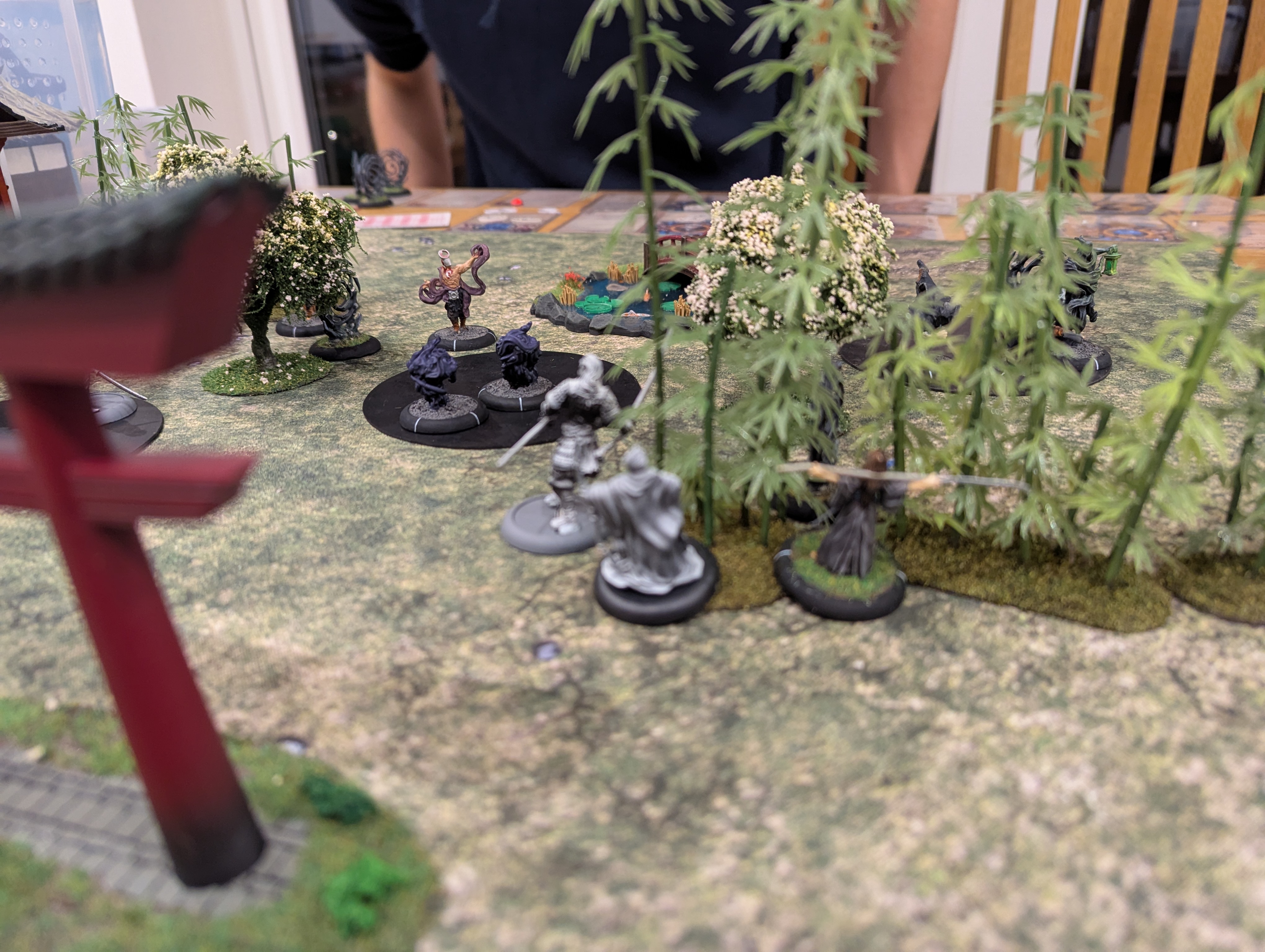 My son took his (fully painted!) Kinshi Temple faction. I’m not to up on the individual model capabilities but they were Batsu, Hishigata, Maru, Kodai, Nagashikaku and Shikaku. He also took two Kami of the Empty Mind