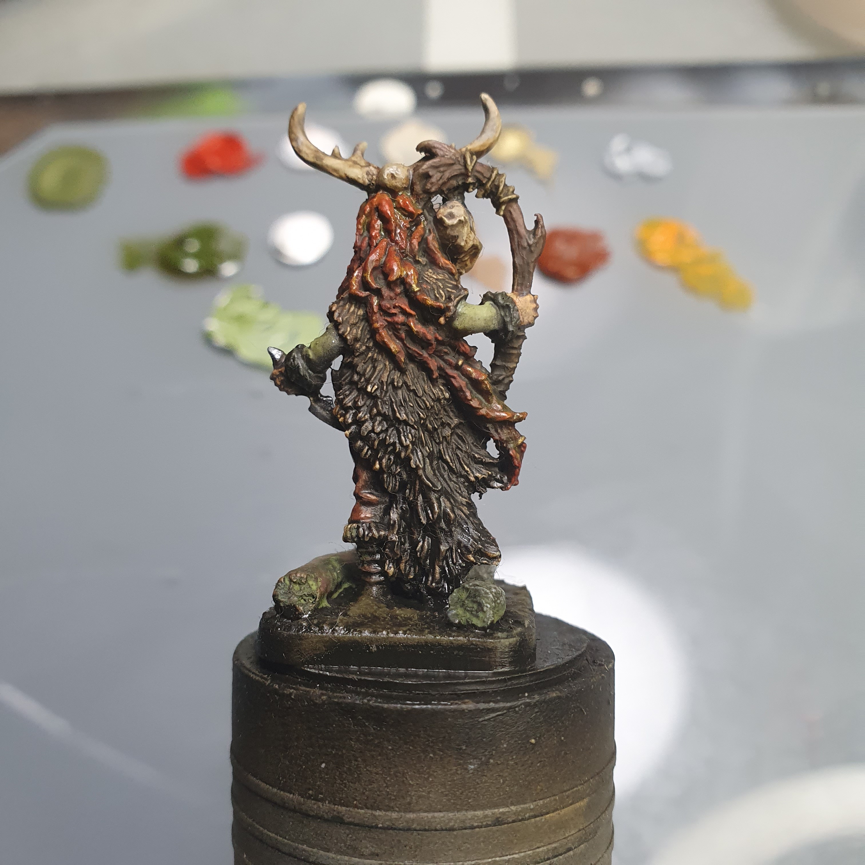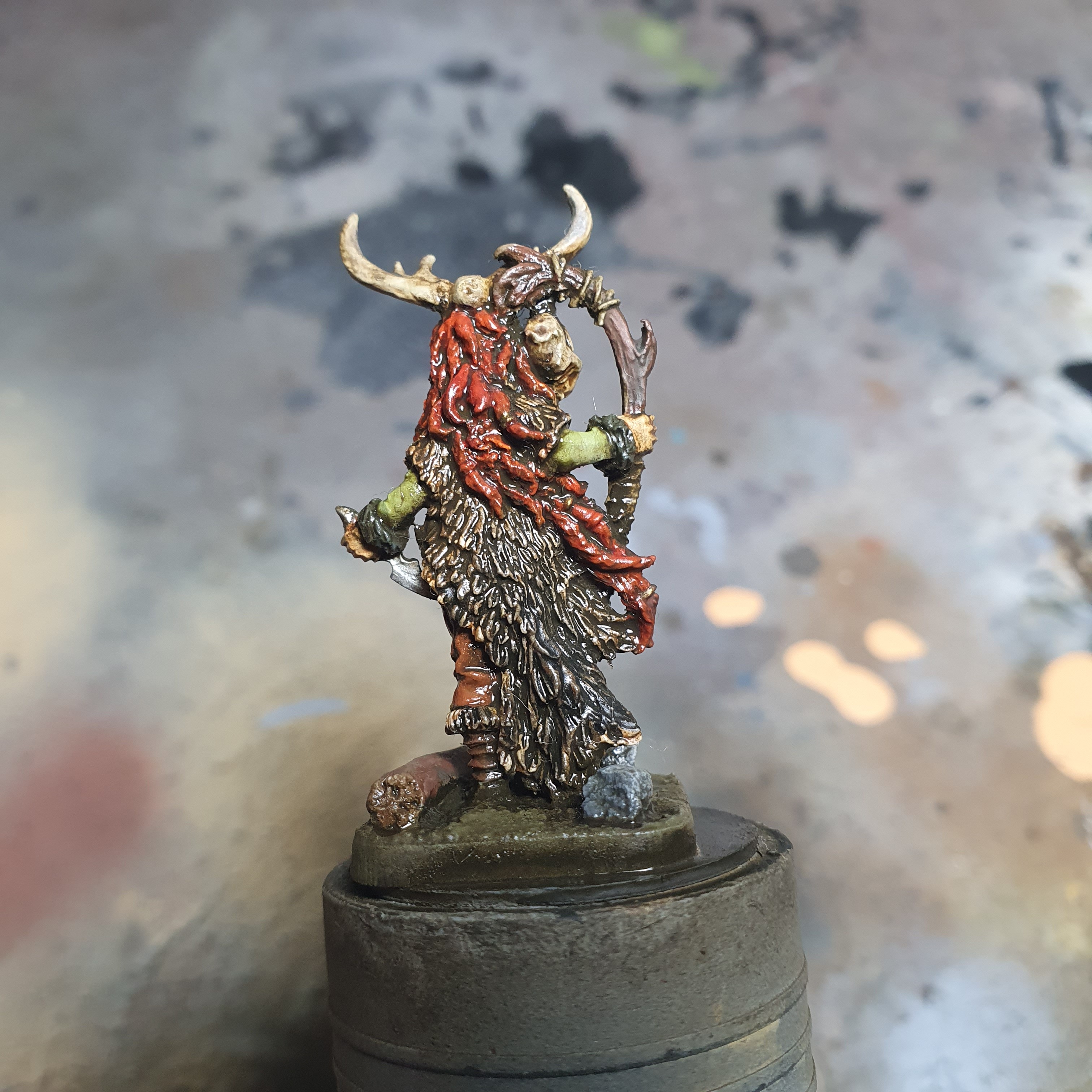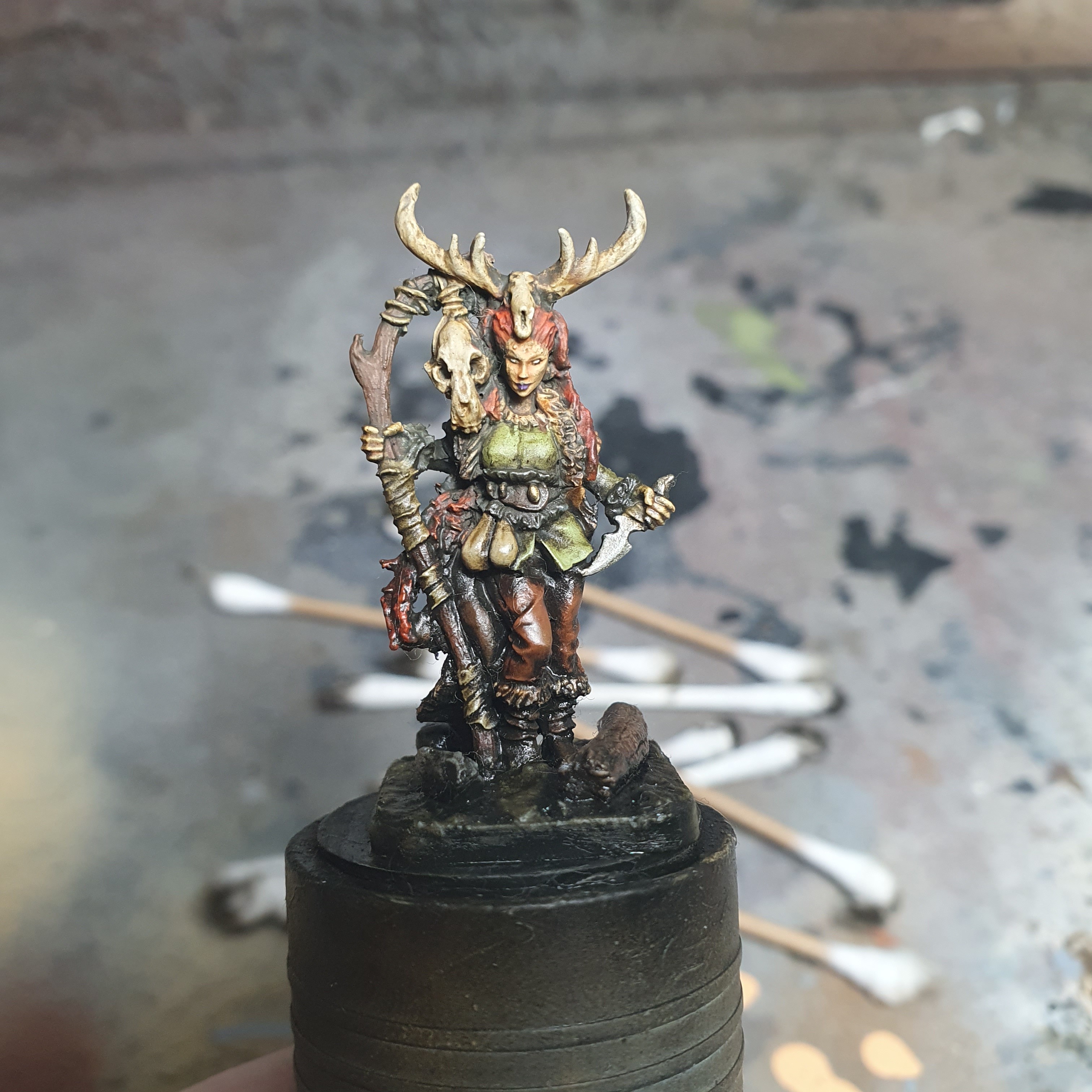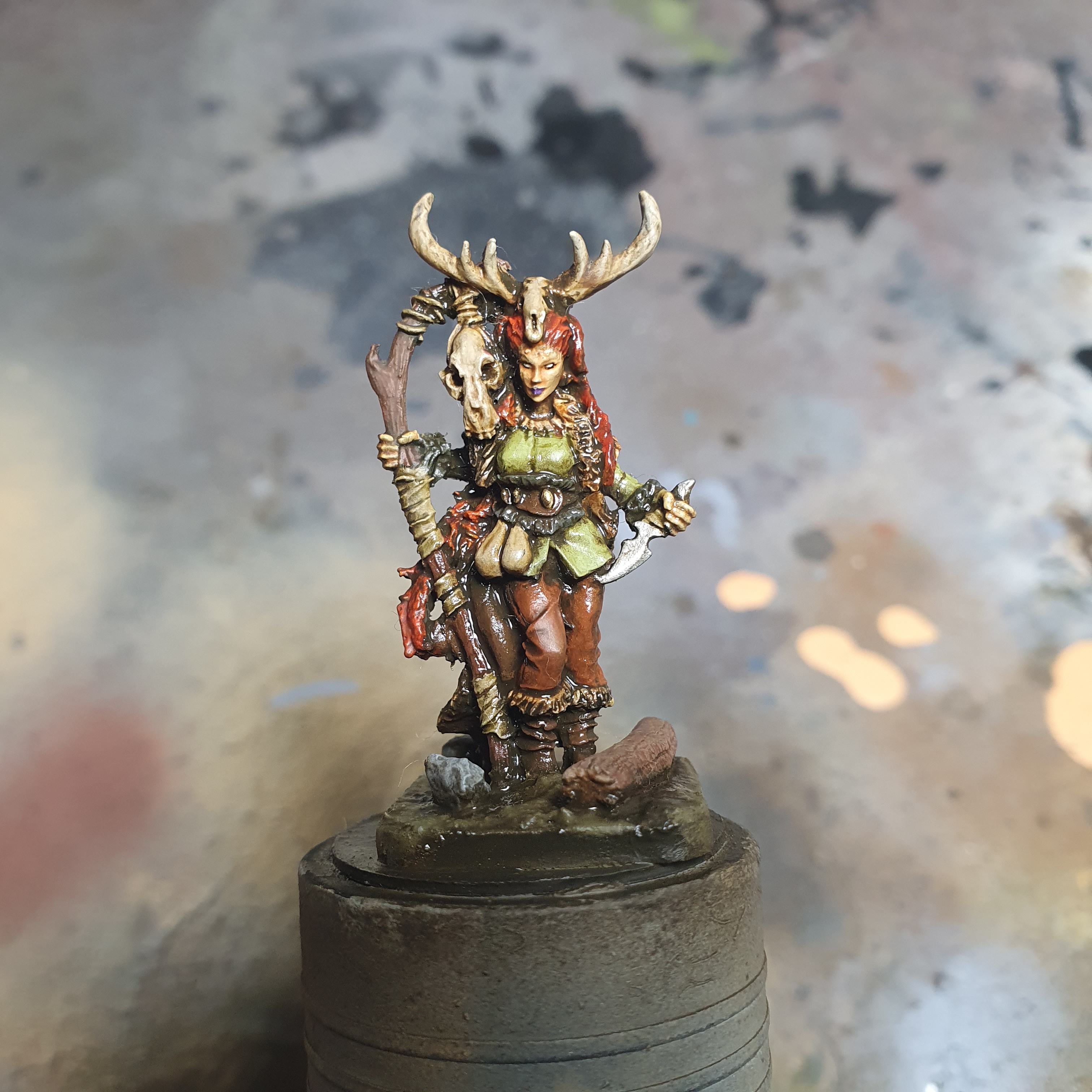 One midnight painting session later and I got the highlighting & detailing done on Frost Shaman Boudi.