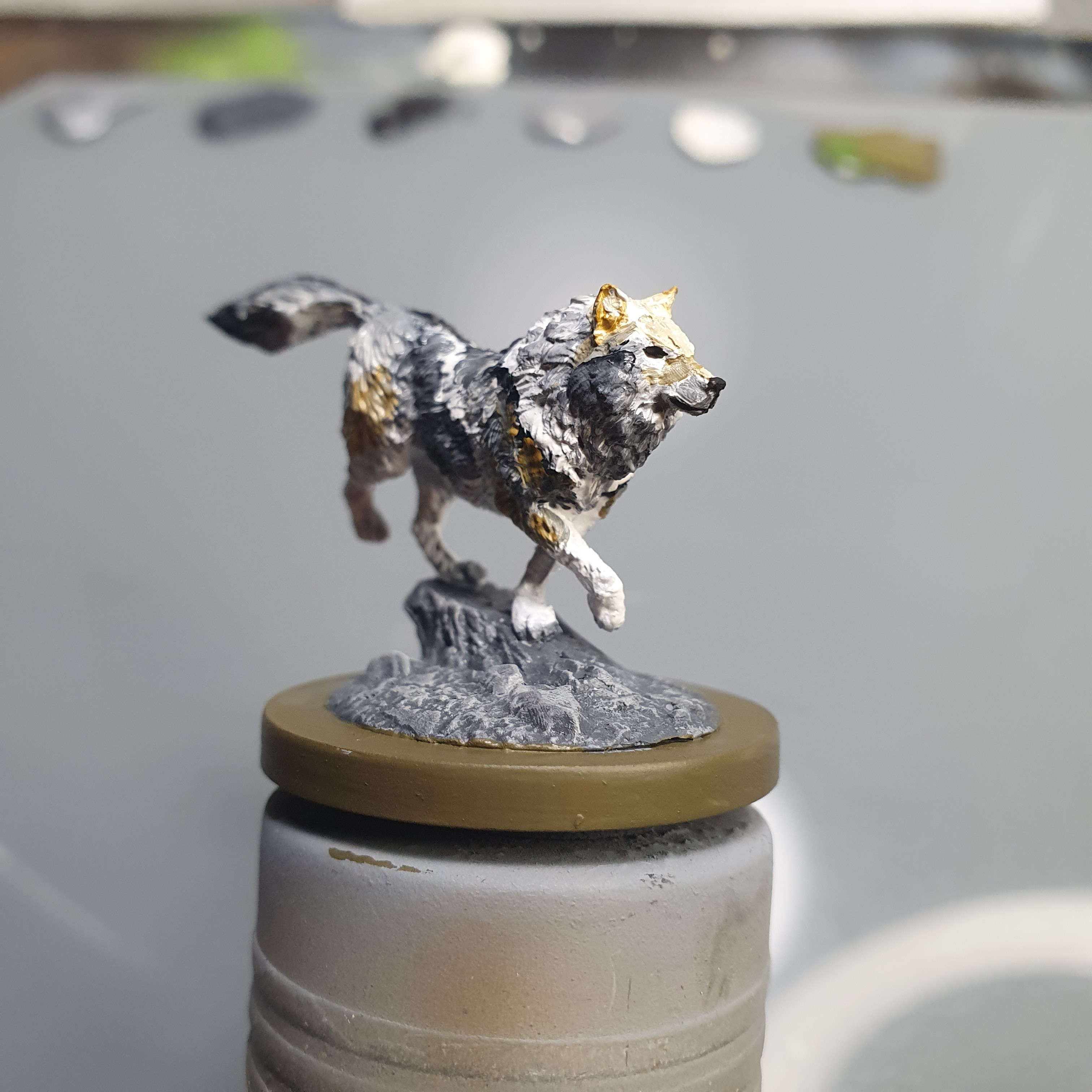 Little bit more work on the wolf, mostly the face and the base.