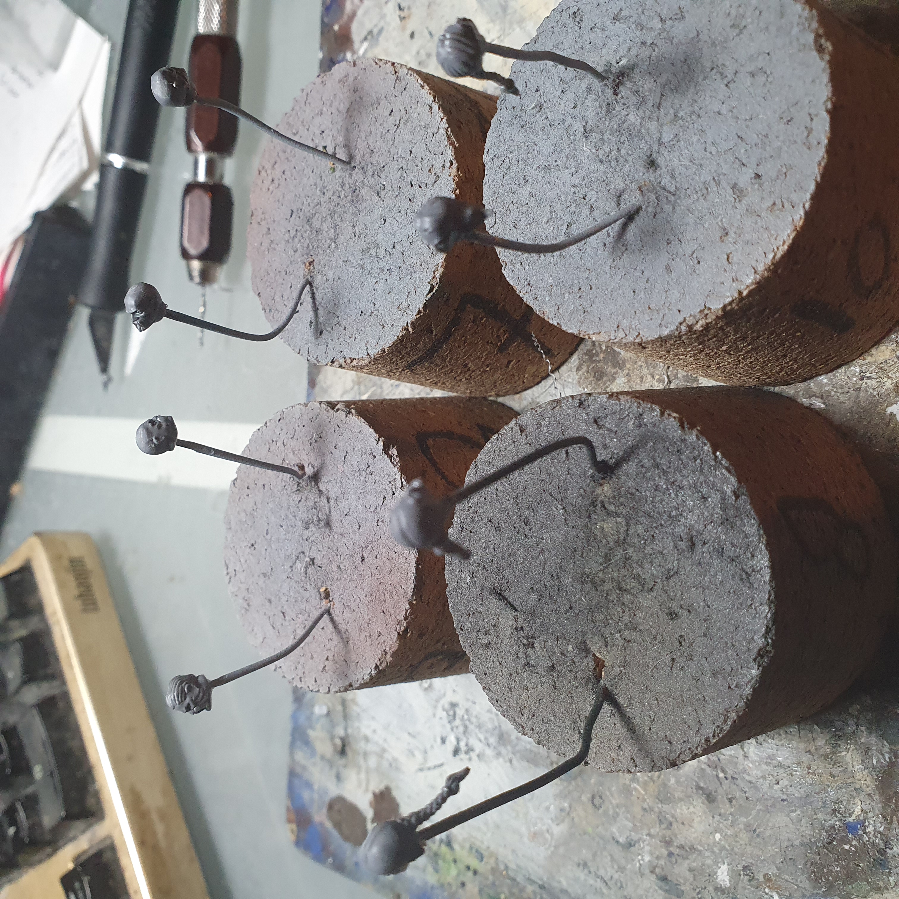 After Boudi and Haleth are done I got myself a new exercise. As I was chatting with someone about options for practising faces, I recalled the Fireforge Games Folk Rabble have a ton of great head sculpts. And I could use some practice myself…. So I mounted 8 heads on pikes.