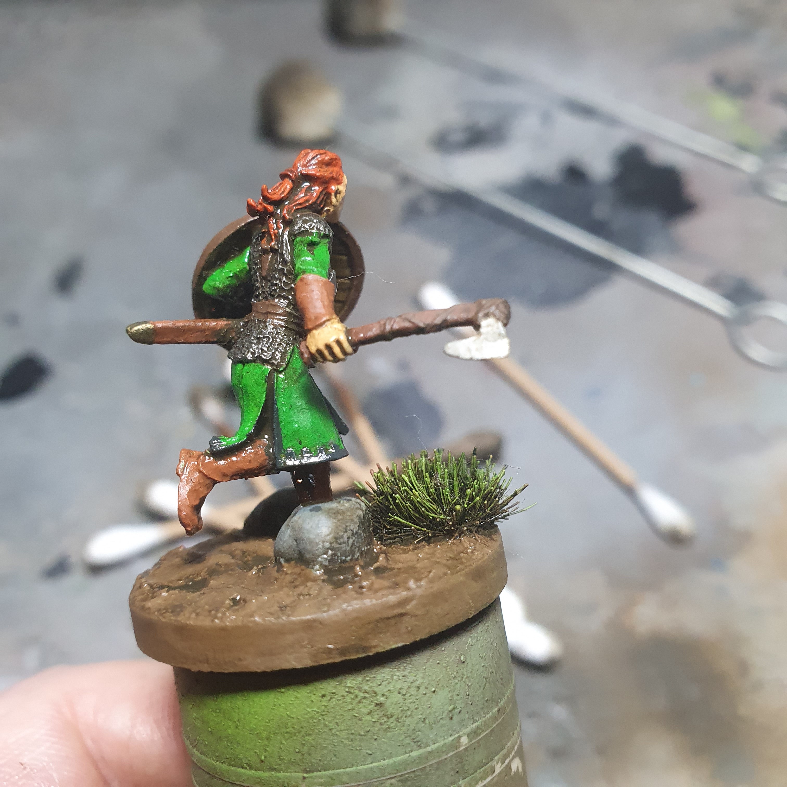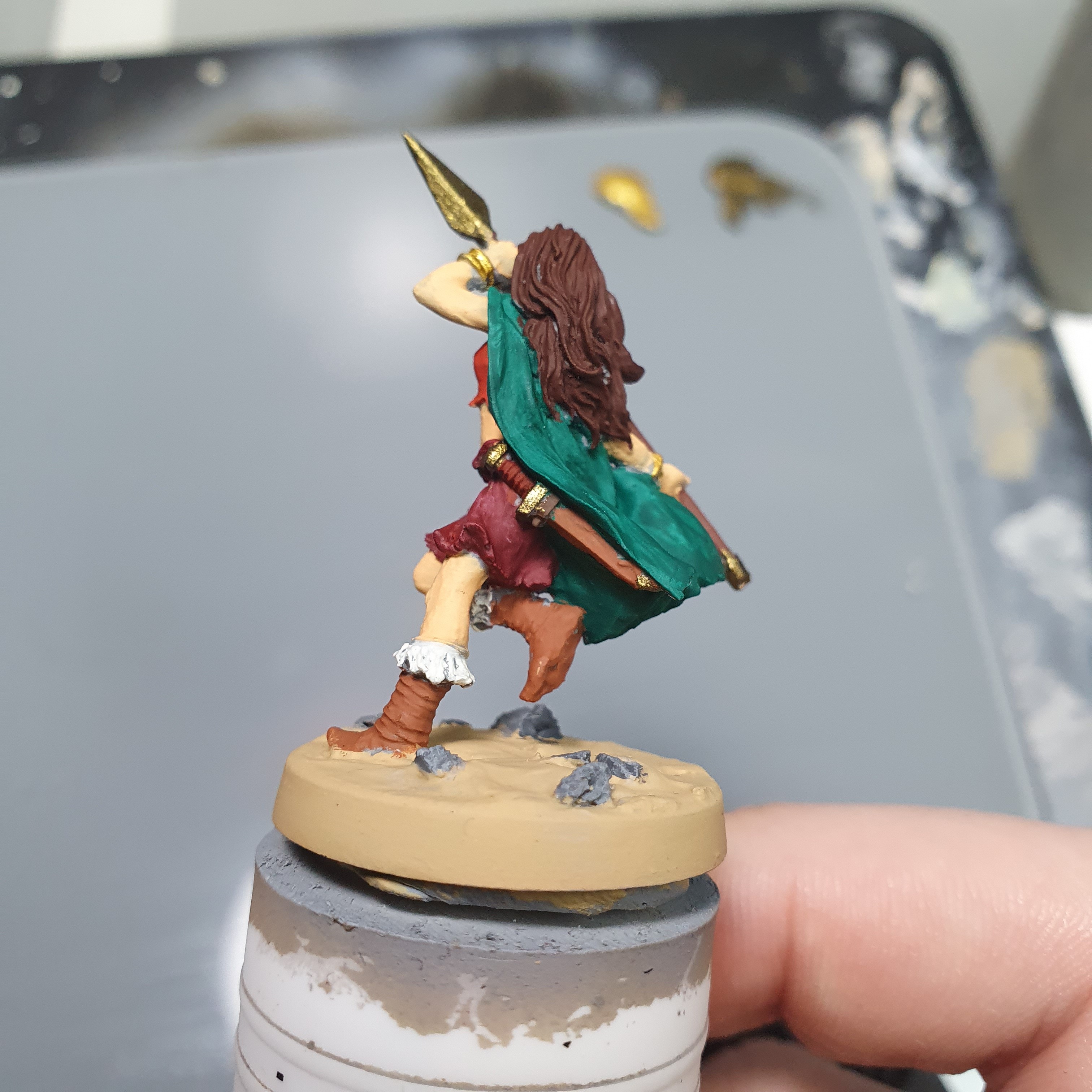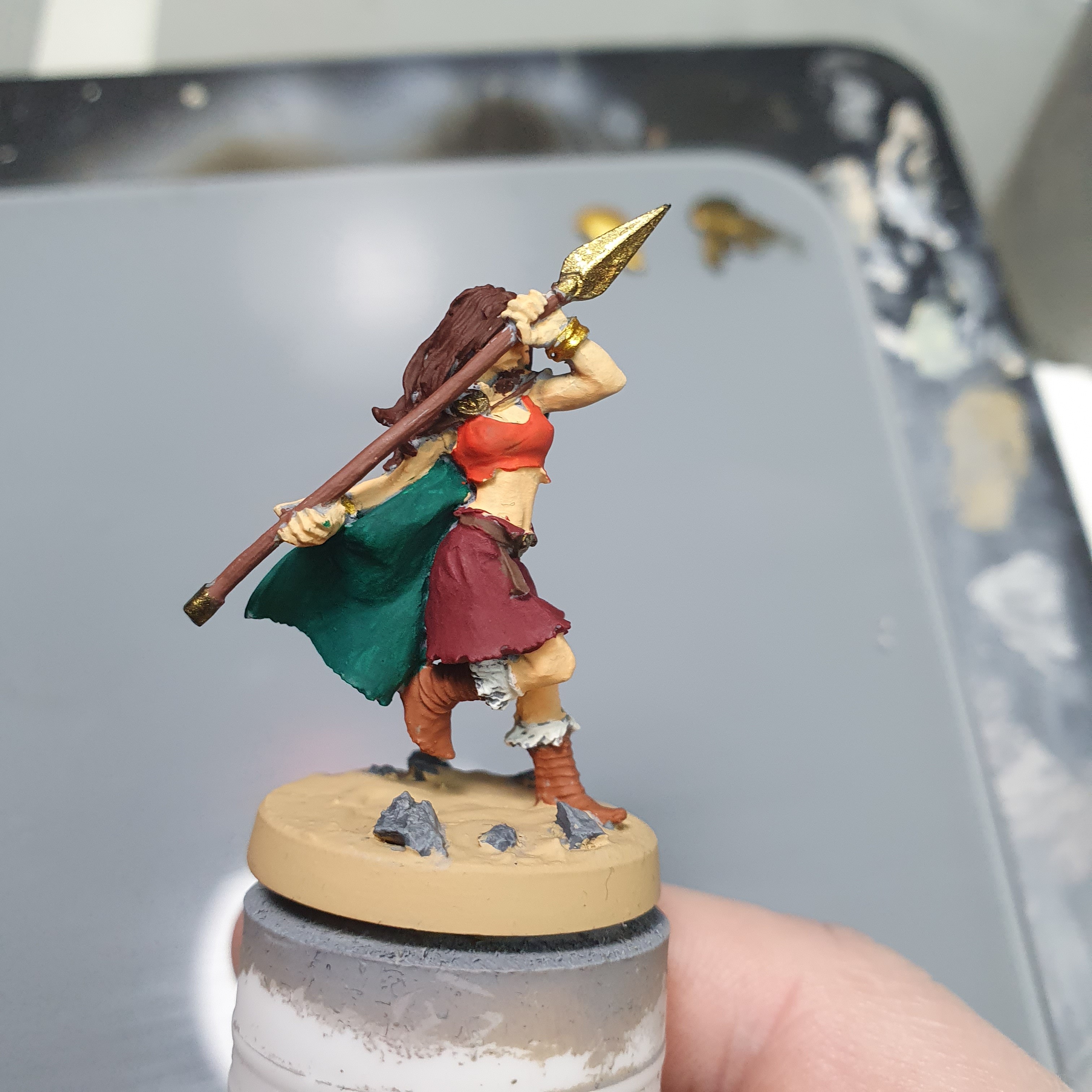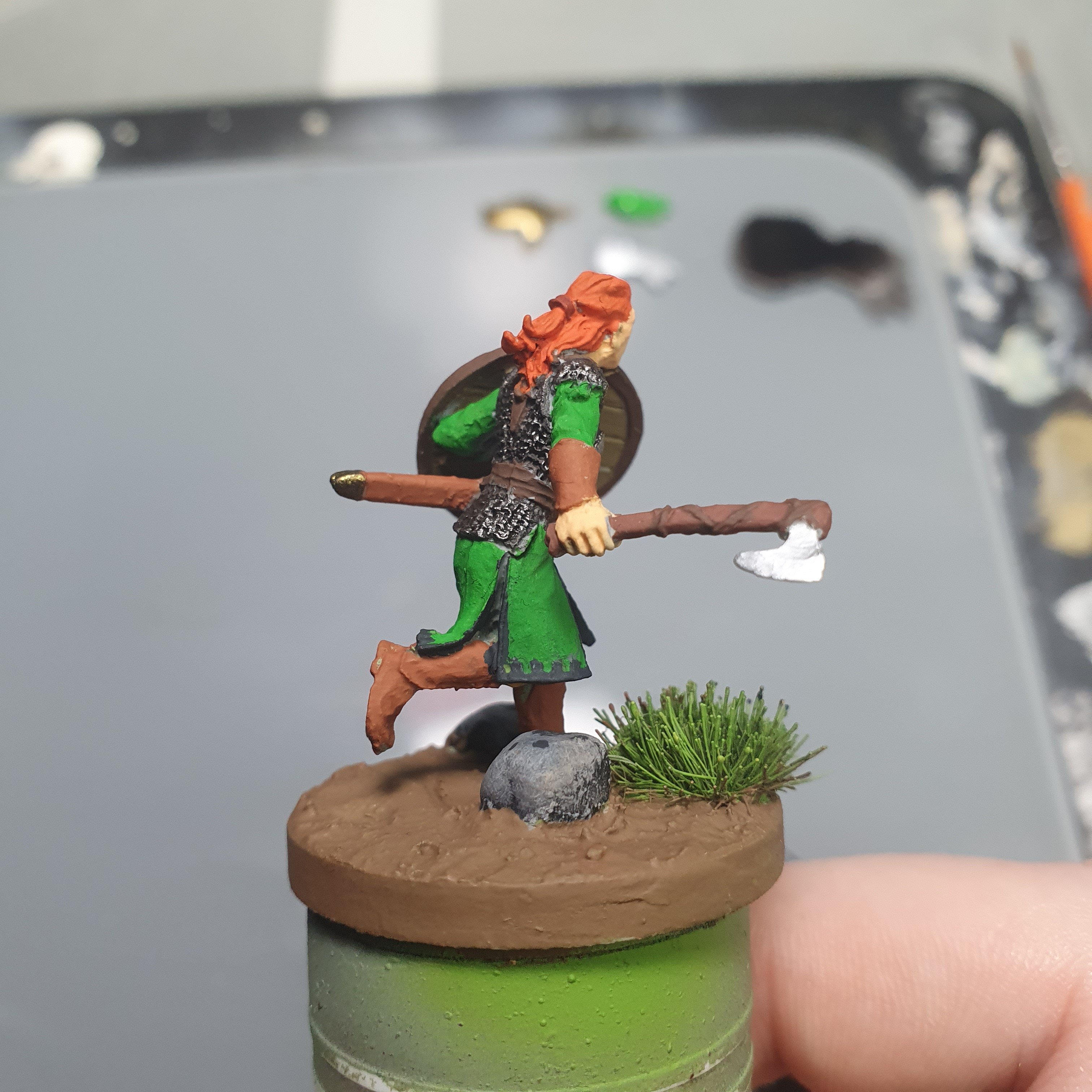 I had a really good painting session today. I got the metals upped and shiny again after the varnishes on Haleth and did the acrylic base layers on Boudi, both from Hasslefree Miniatures.