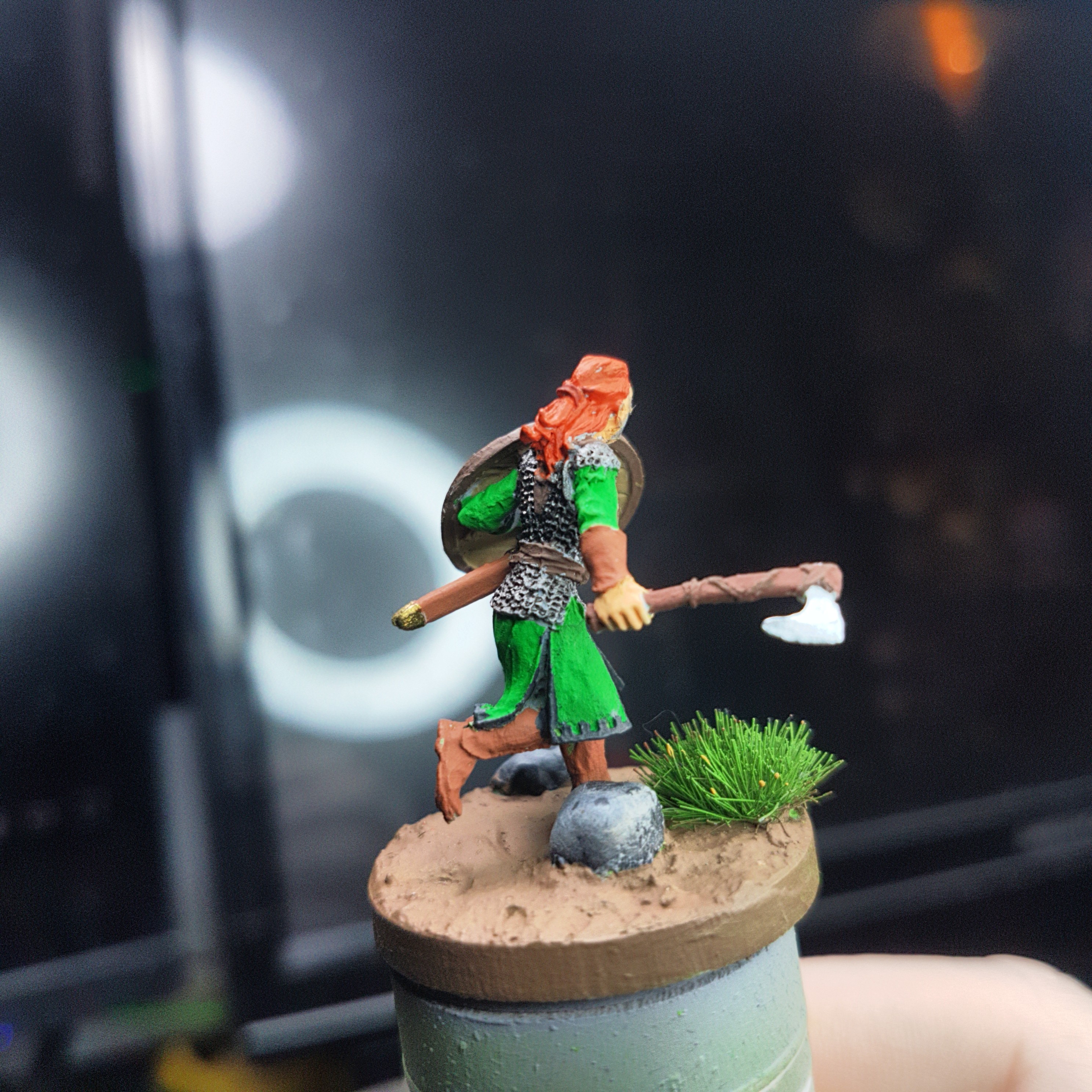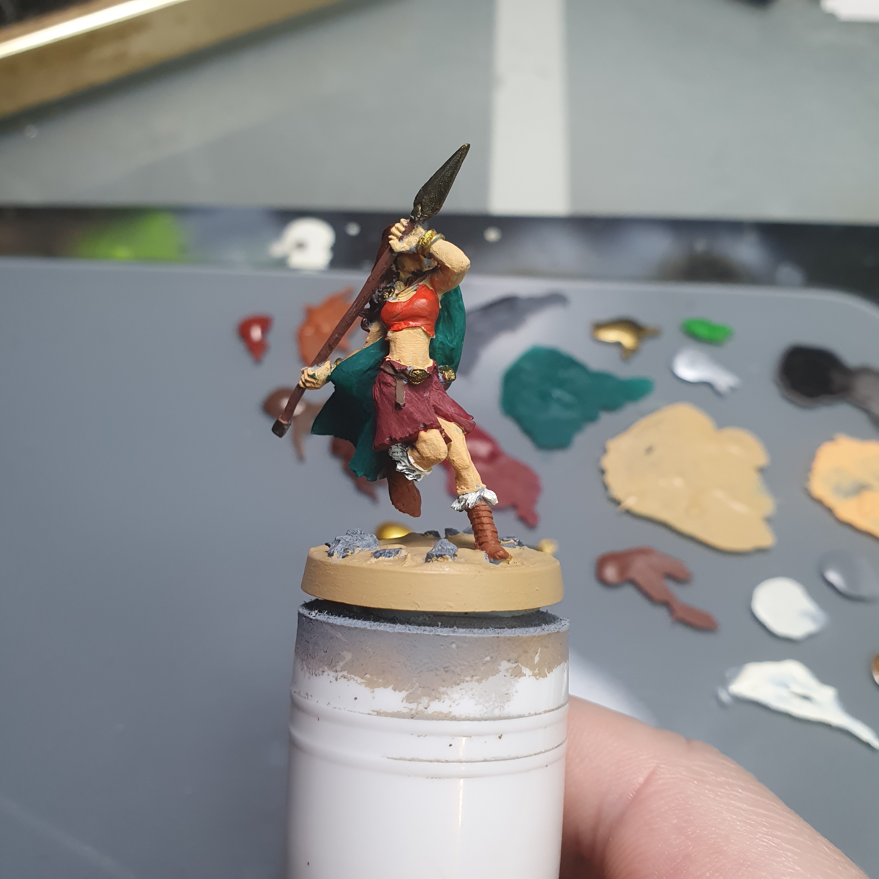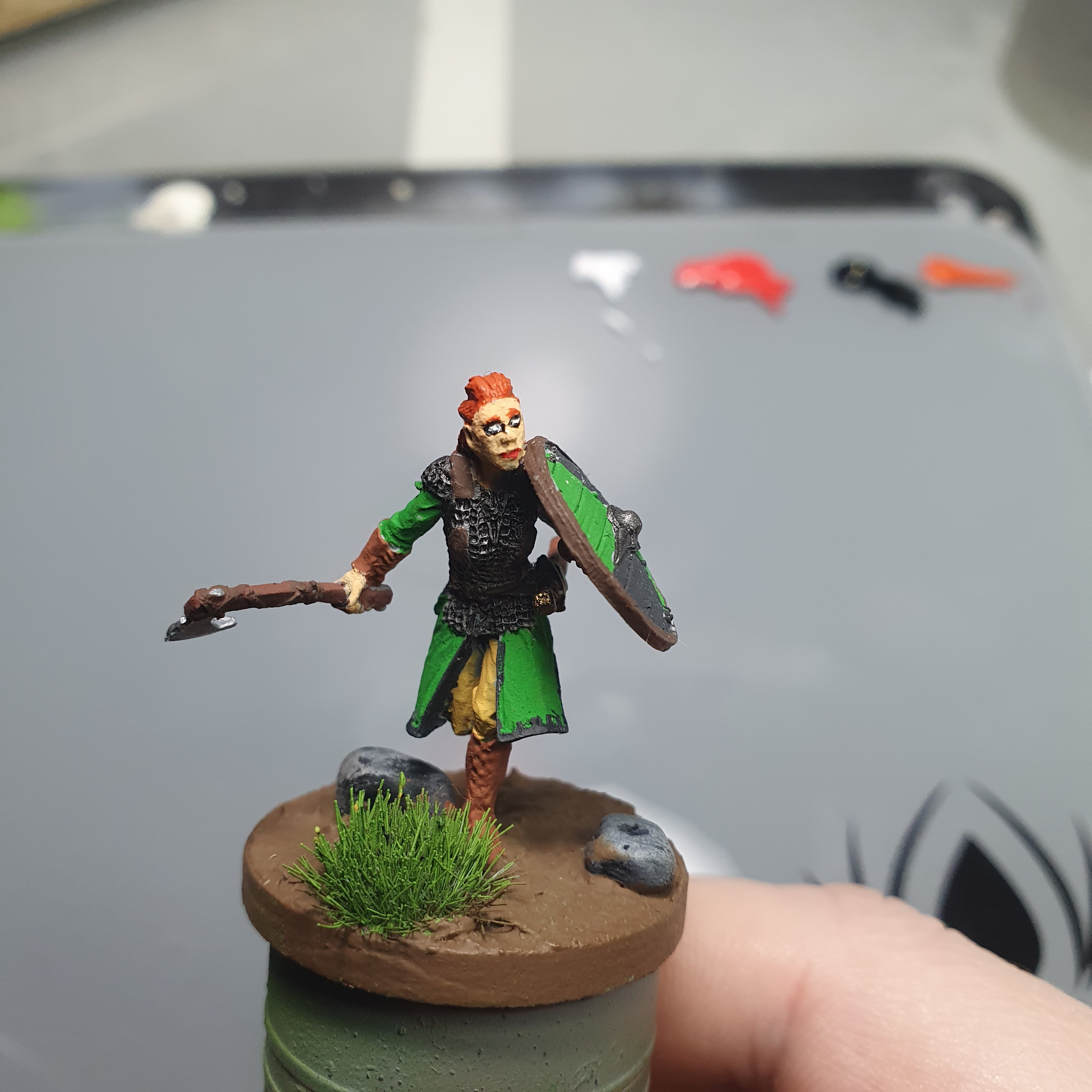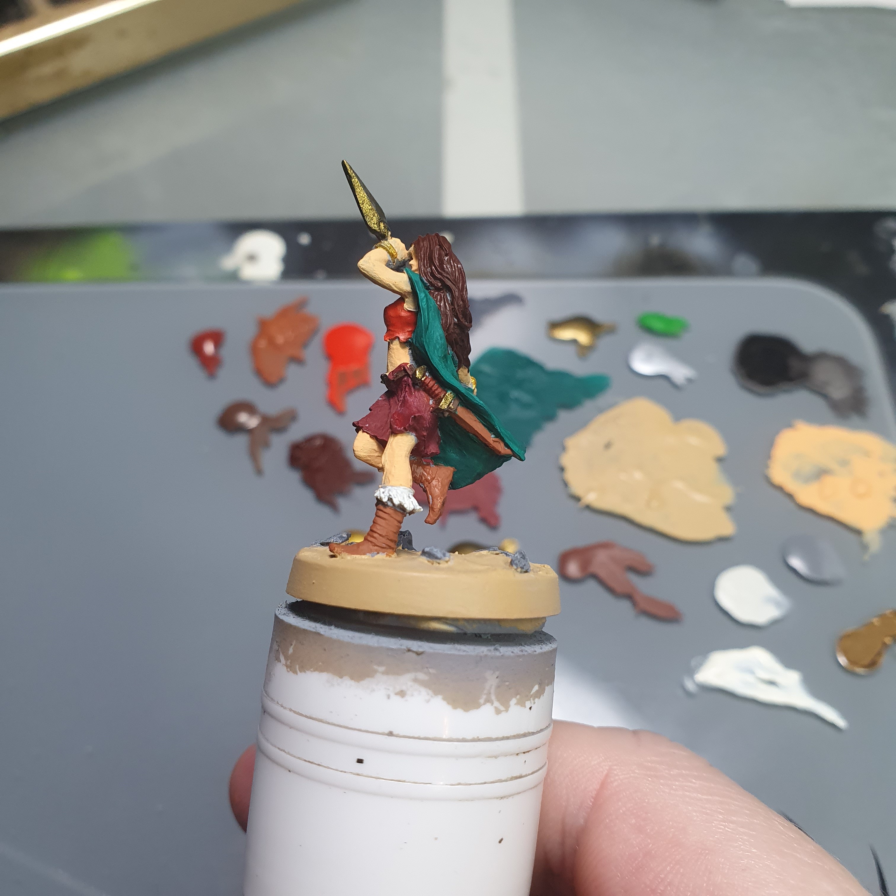 I had a really good painting session today. I got the metals upped and shiny again after the varnishes on Haleth and did the acrylic base layers on Boudi, both from Hasslefree Miniatures.