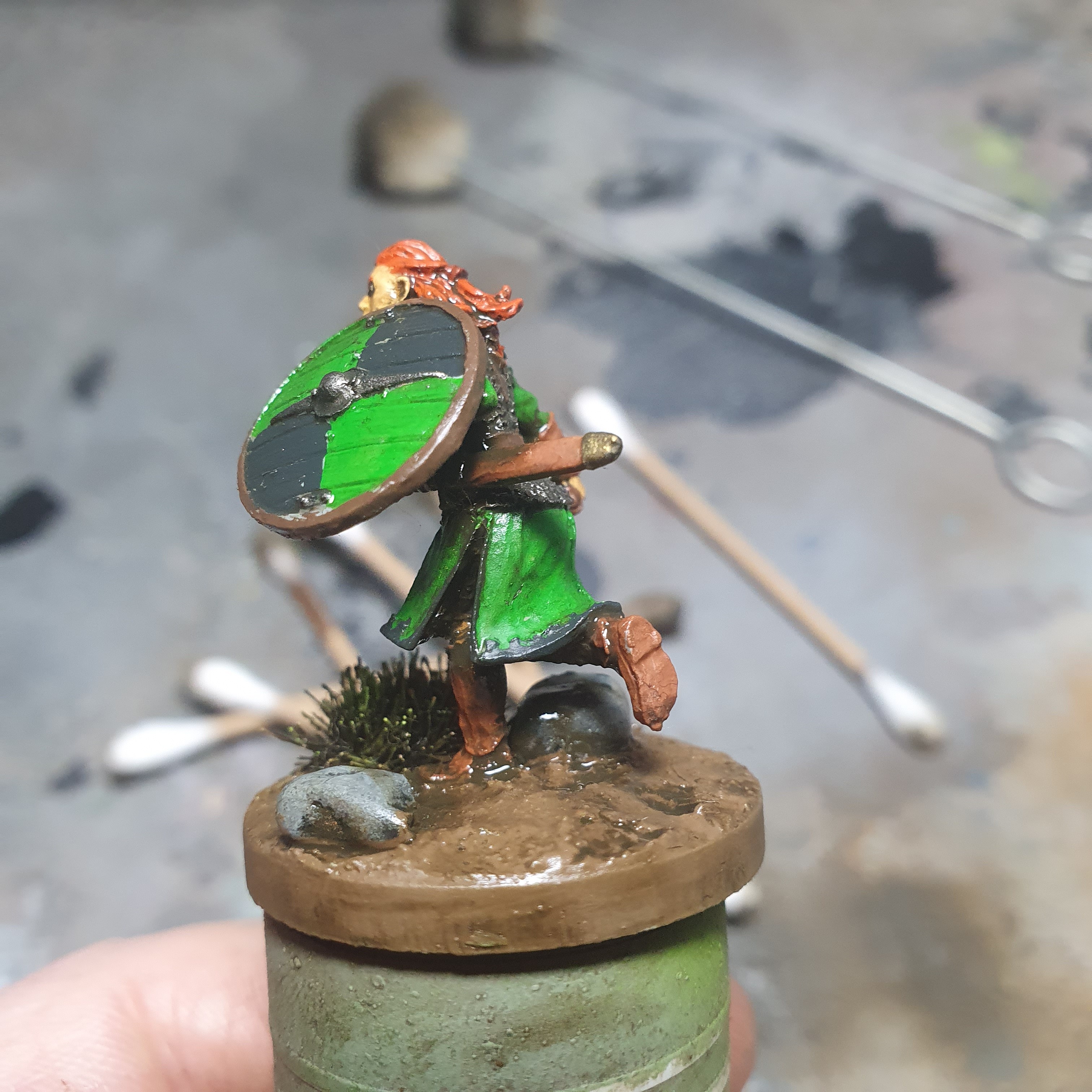 That is the first layer of shading done on Haleth from Hasslefree Miniatures. Now I just got to wait until it is properly cured before doing the next.