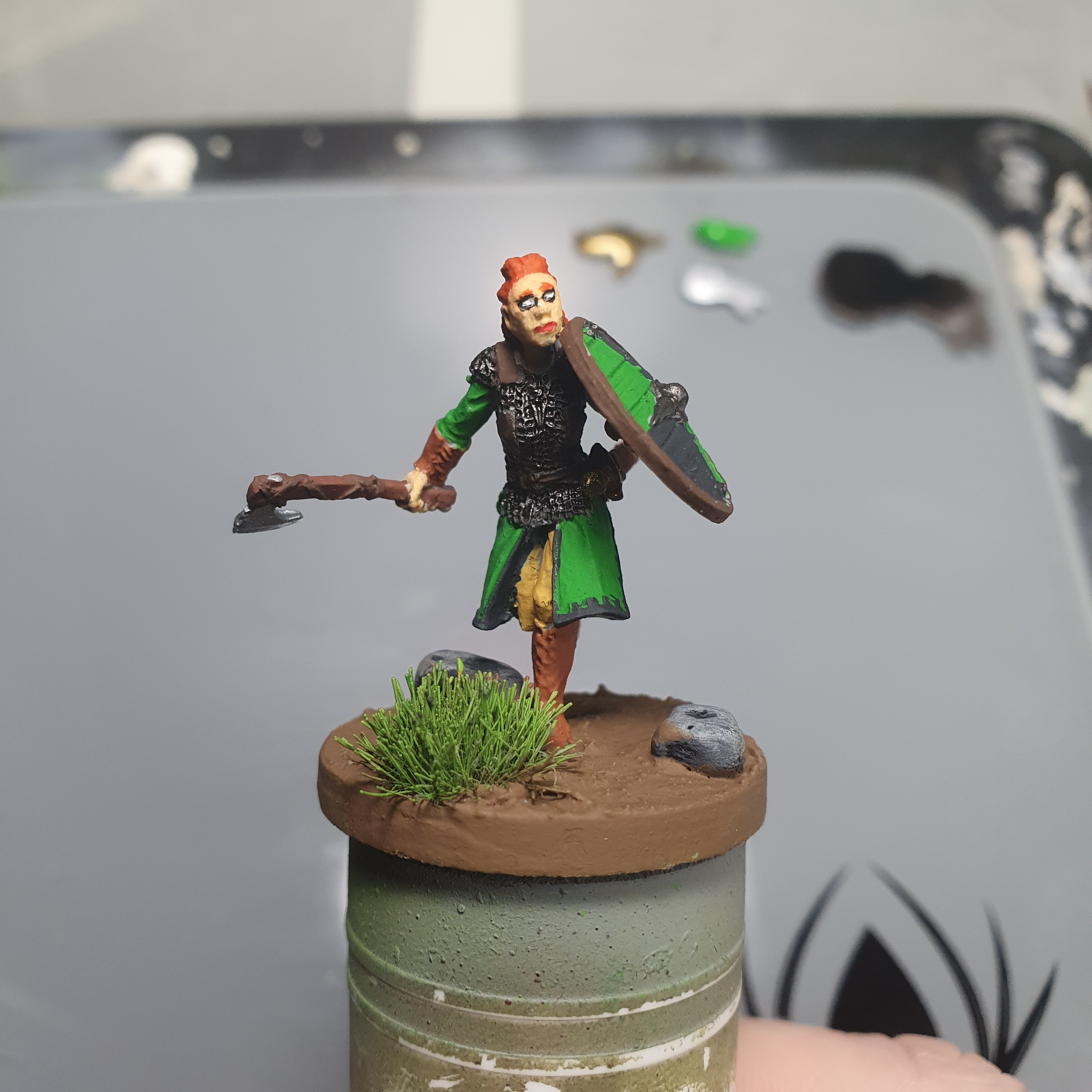 Again, my health is limiting me how much I can paint. 😩😔 But at least I got a little bit done on Dynamic Haleth from Hasslefree Miniatures. At this stage I might get this model done by the end of the year…..
