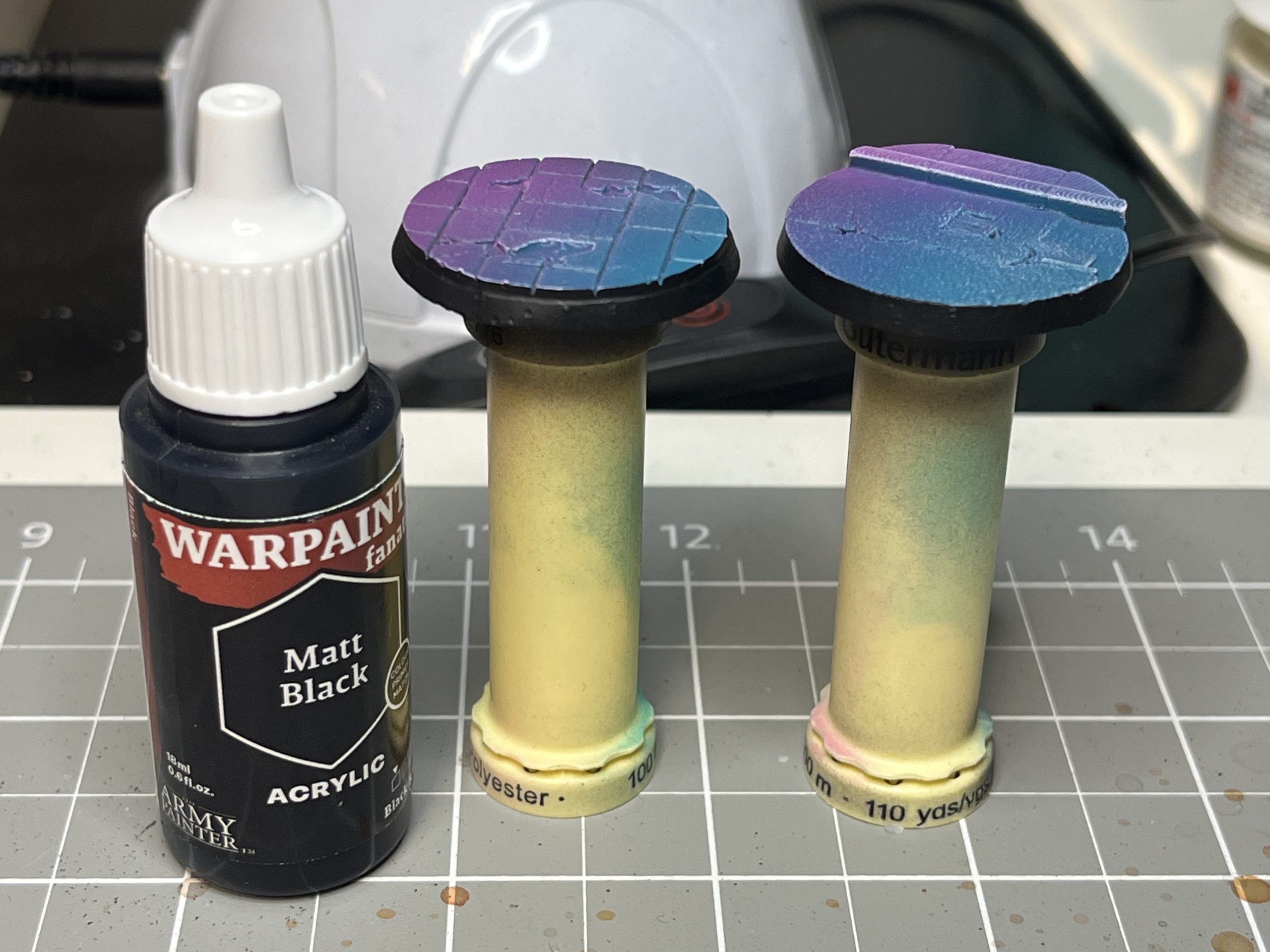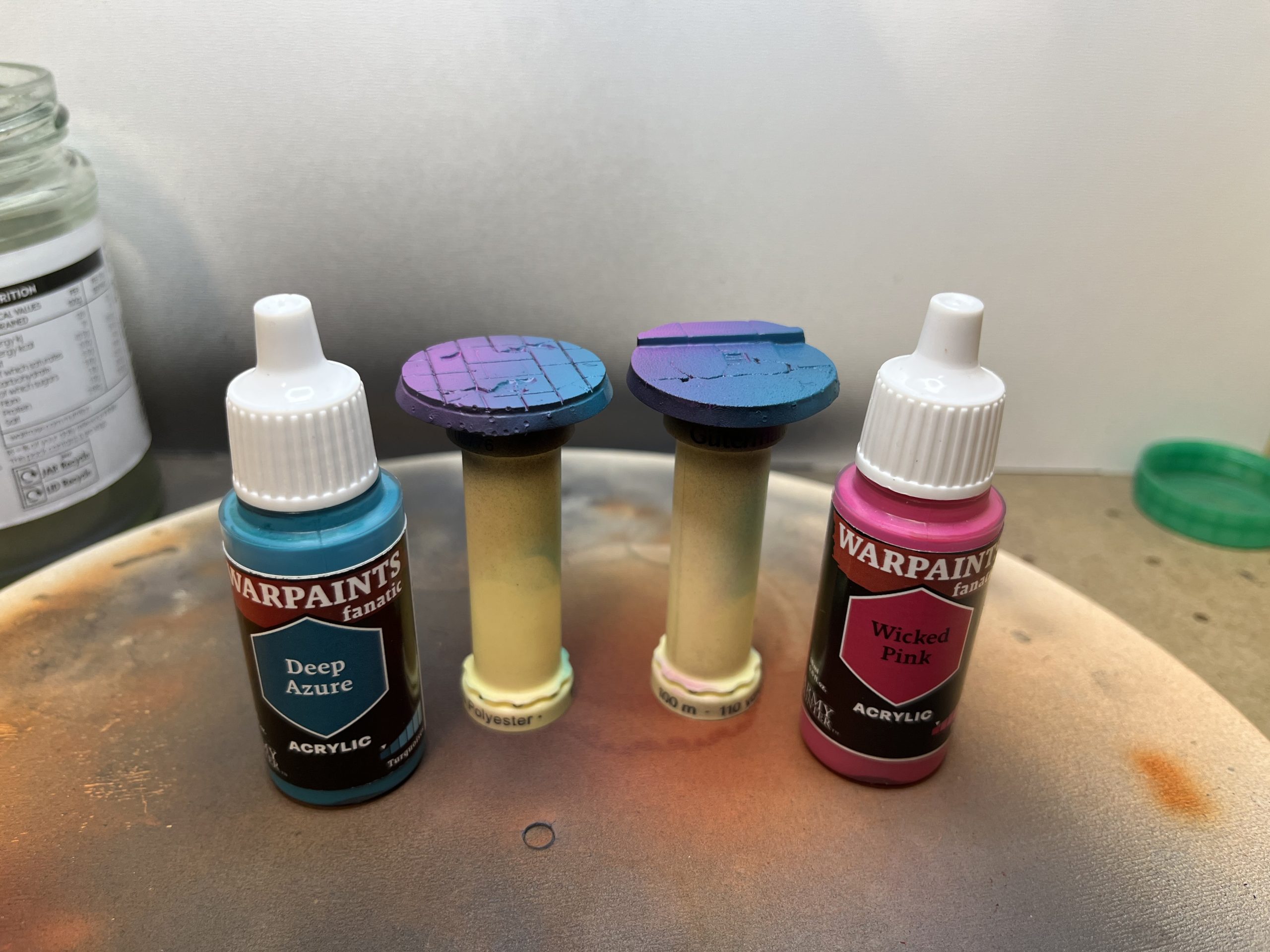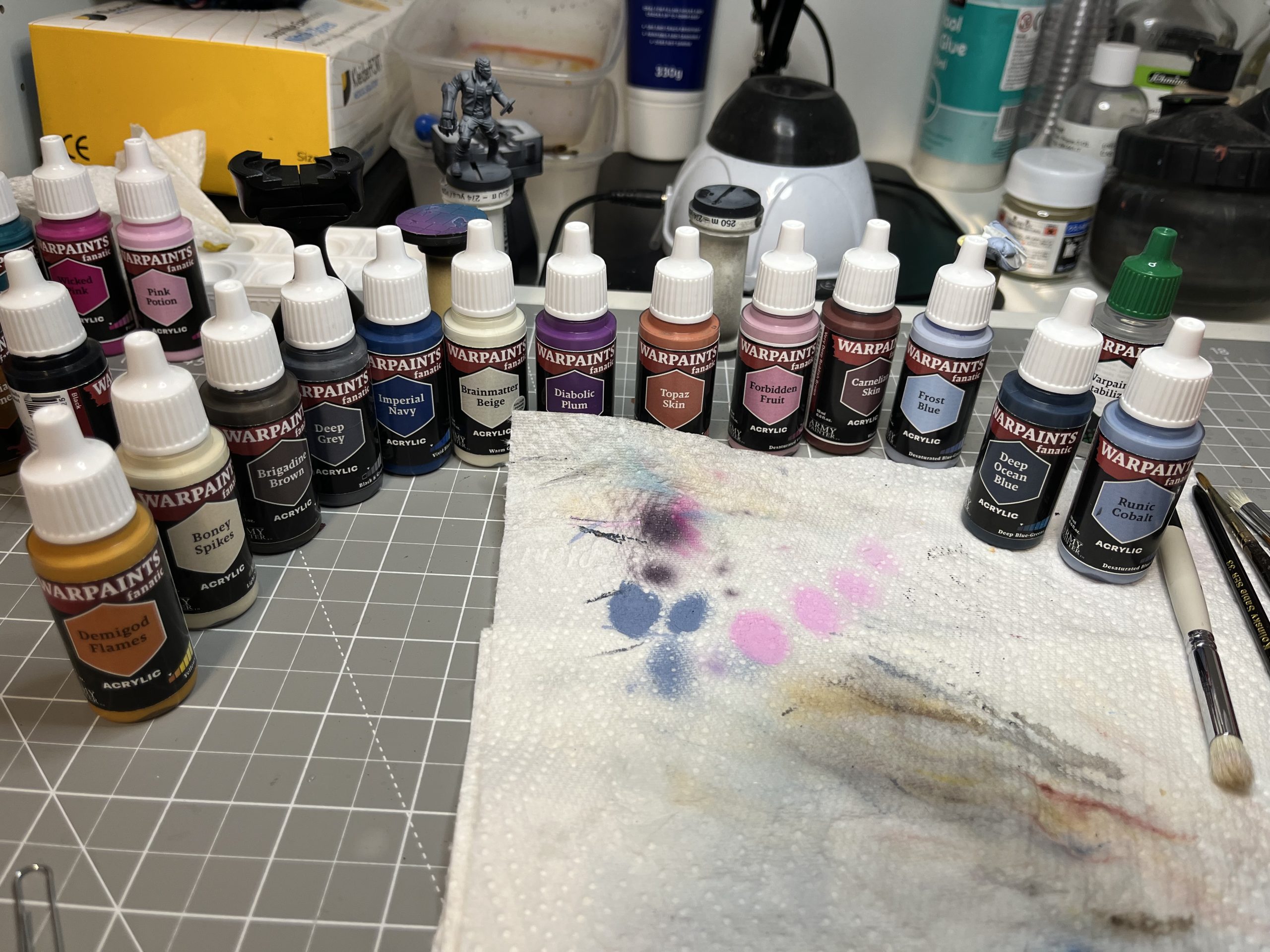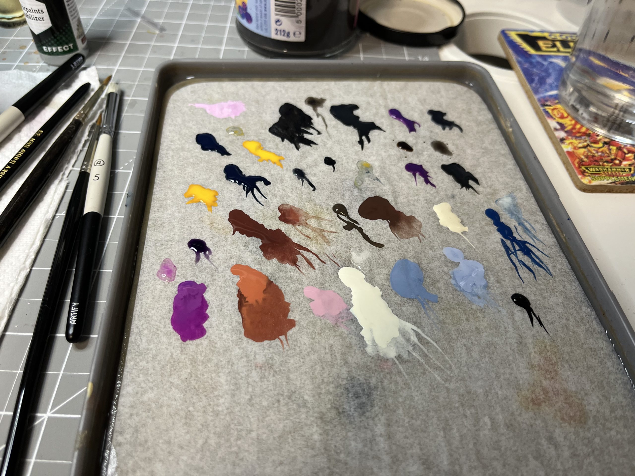 So no steps but I did capture the paint bottles that ended up on that desk, and the palette after the job: