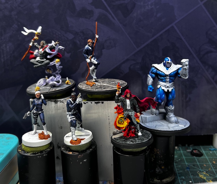 I have some very good friends who chipped in to pick up the newest core box for Marvel Crisis Protocol for my birthday present. One of the benefits of celebrating in my Friendly Local Game Store apparently. While I have wanted to paint some of these minis since I first saw them, I haven't been sure about diving into the entire game. Well, two of our group are completely addicted so I will have folks to play the game with, unlike my Burrows and Badgers undertakings. I must admit to being a little overwhelmed by the contents of the Core Set. There are all the rules, templates, counters, dice, terrain, and minis needed to play. Speaking of the minis, there are 13 in the new set and they are wonderful little sculpts, great detail and movement. I think this is going to be fun. Now I just need to avoid diving into the deep end and trying to acquire everything. Anyone who has been following this blog will know I have failed to restrain myself. Despite still not having played the game I have just about every character made and two thirds of them are painted. At least I'm getting some good work done.