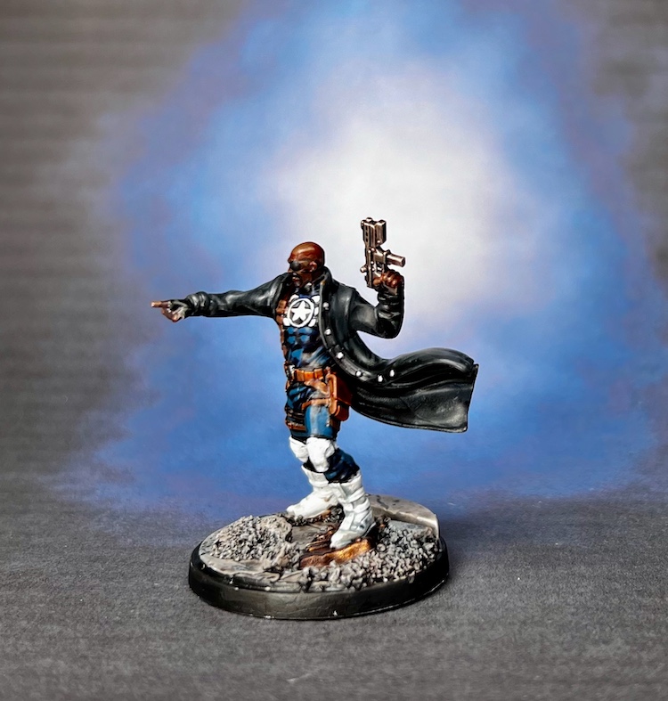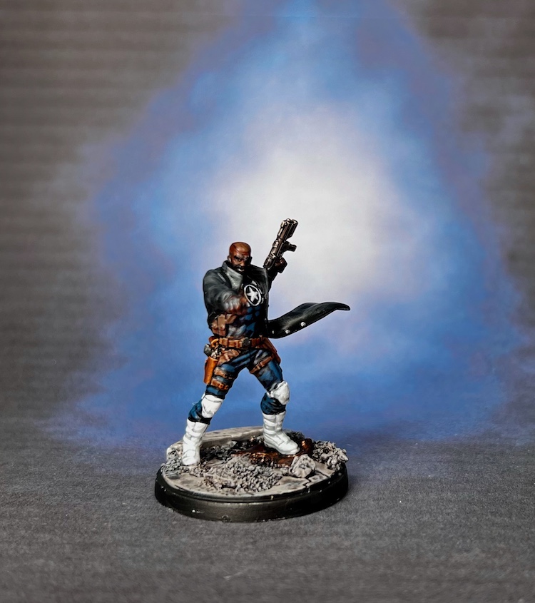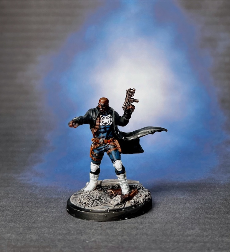 Nick Fury Jr and his Agents of Shield have dropped in from the Helicarrier and are ready to take on Hydra. I really like that AMG went with the MCU- Samuel Jackson version of this character. I already have a Nick Fury Sr attached to the Howling Commandoes and variety is preferable. As with most of what I’ve painted for MCP, I have no idea how these folks will play in game but look forward to finding out.