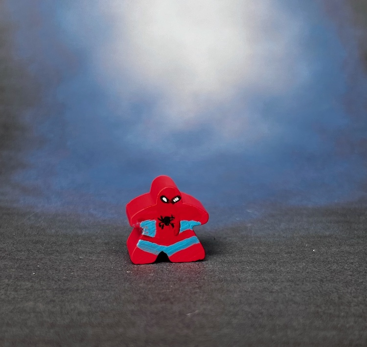 I attended DunDraCon game convention in Santa Clara, California last month. Fellow OTT member, aronbc, and I like to start each day with coffee and brushes in the Paint and Take room. In addition to some figures he brought and a couple I posted in WAYPN, I took on the Paint a Meeple challenge. Because I’ve painted so many Marvel characters in the last year, Spider-Man seemed the perfect choice. Please keep in mind that none of the brushes are very good so I captured as much detail as I could.