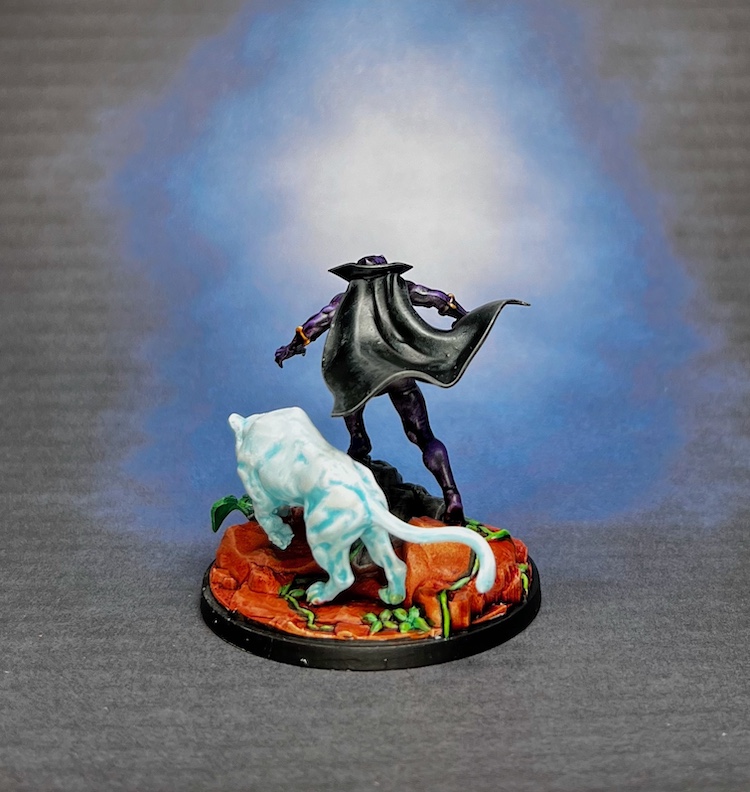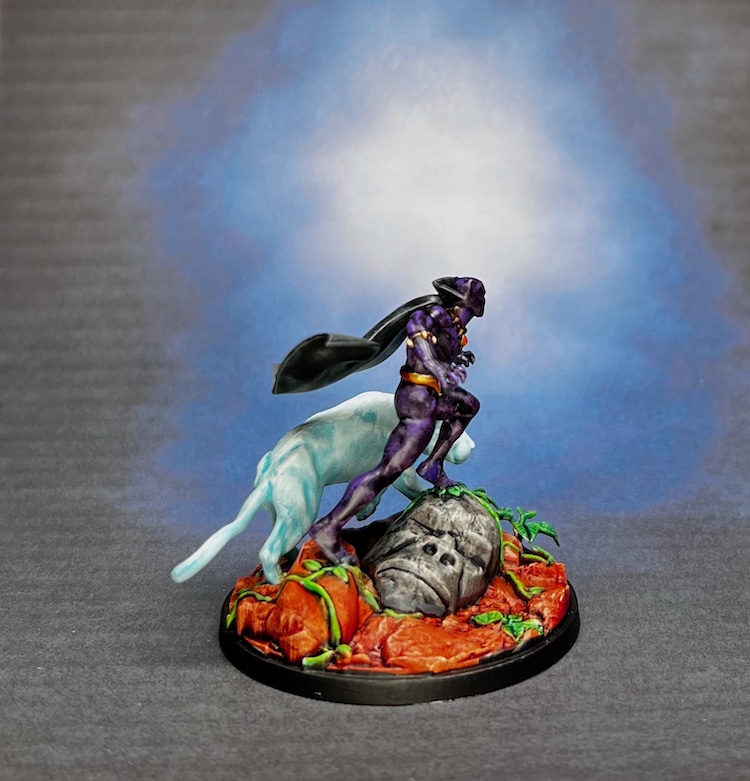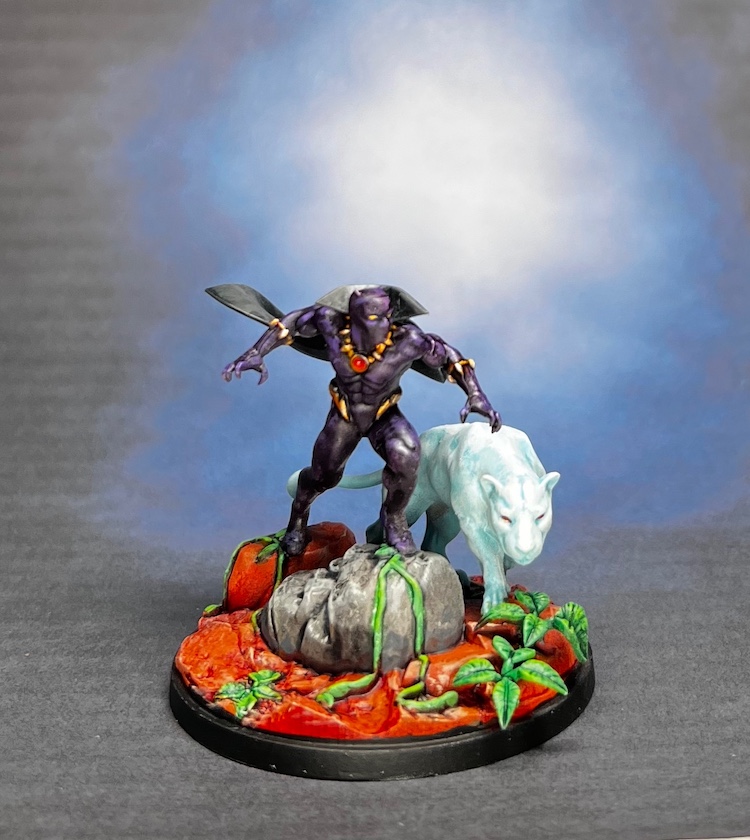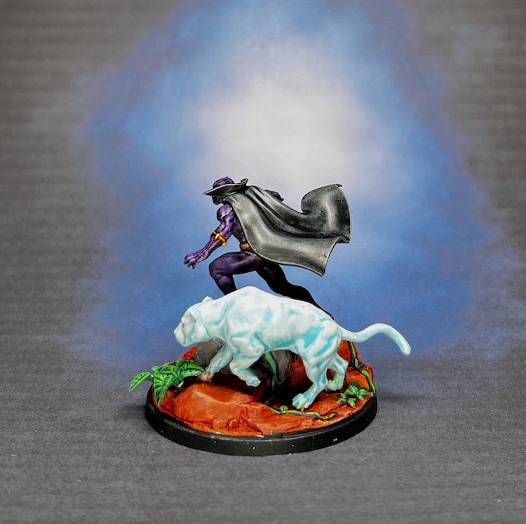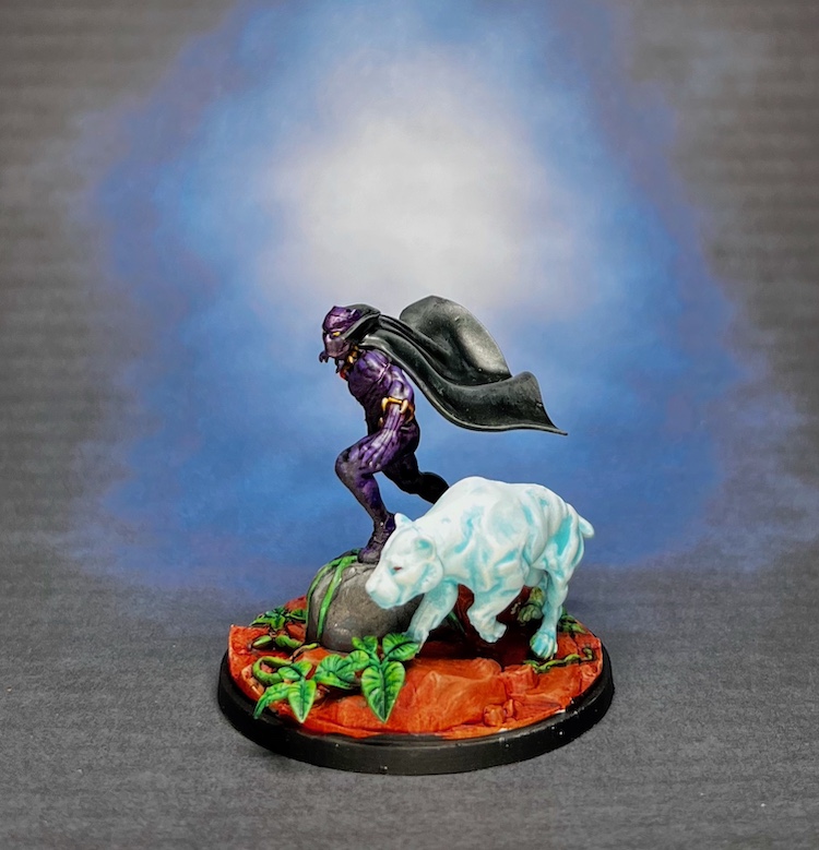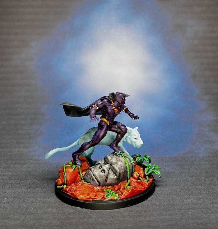 While I didn’t see the need for a third Black Panther figure, I love this sculpt! The Sub-Mariner in the set is just as cool. I actually glued the entire thing together before priming. If I had it to do over I would probably not glue T-Challa to the base until after I finished painting it all. Since I chose to portray the panther as a spirit animal it wasn’t that difficult to keep things neat.