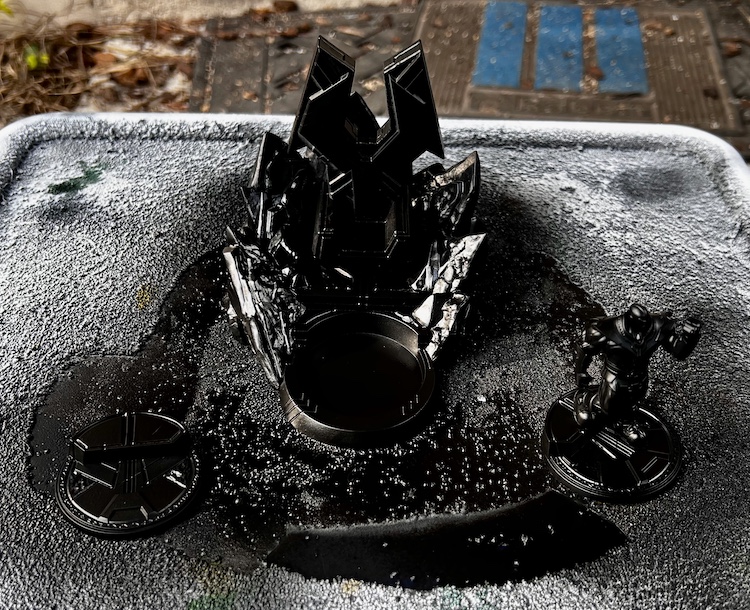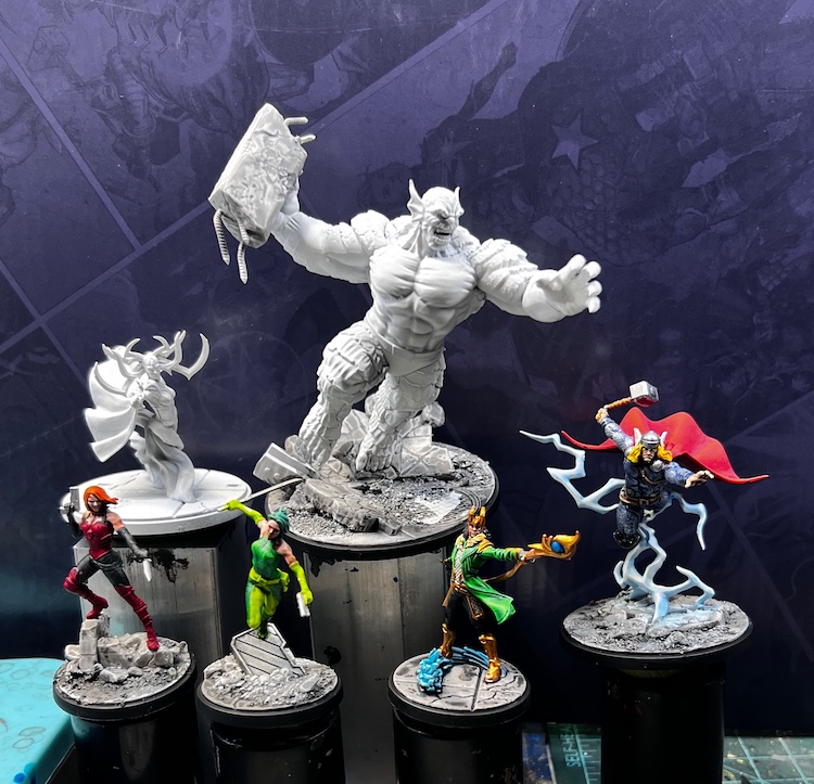 I had a couple days I couldn’t get to the painting table but have still made progress as I was working on the fungus forest piece for the Terrain Challenge. I finished the details on Loki, Sin and Viper so replaced them with members of the Black Order. I even got a little yellow applied to Ebony Maw. Having finished enough piece to fill the Sealant Tray I allowed myself to prime another set of models. Thanos and his throne were primed black and sprayed with a zenith.