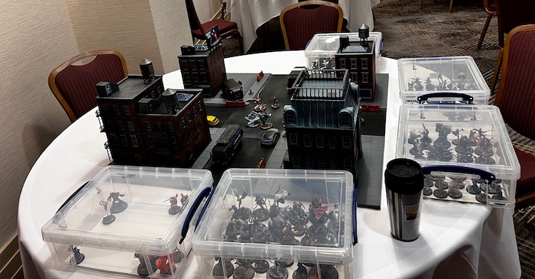 I arrived at the hotel Saturday morning around 8am to find my friend Chuck had checked in the night before and was already awake and setting up Dune Imperium. After I met with staff and verified what was being delivered up and when. I set up a pretty MCP table as a Show and Tell before joining Chuck because “The Spice Must Flow” Great board game, with multiple routes to victory that really feels like it came from the pages of the book. Bonus that there are plastic Sand Worms.