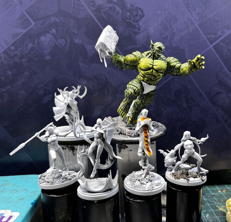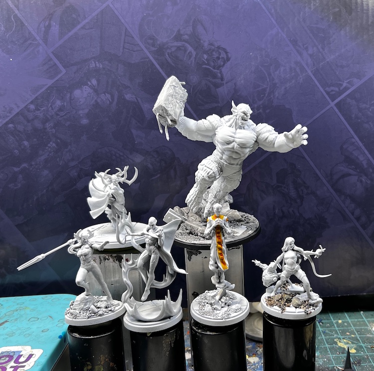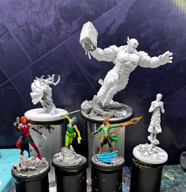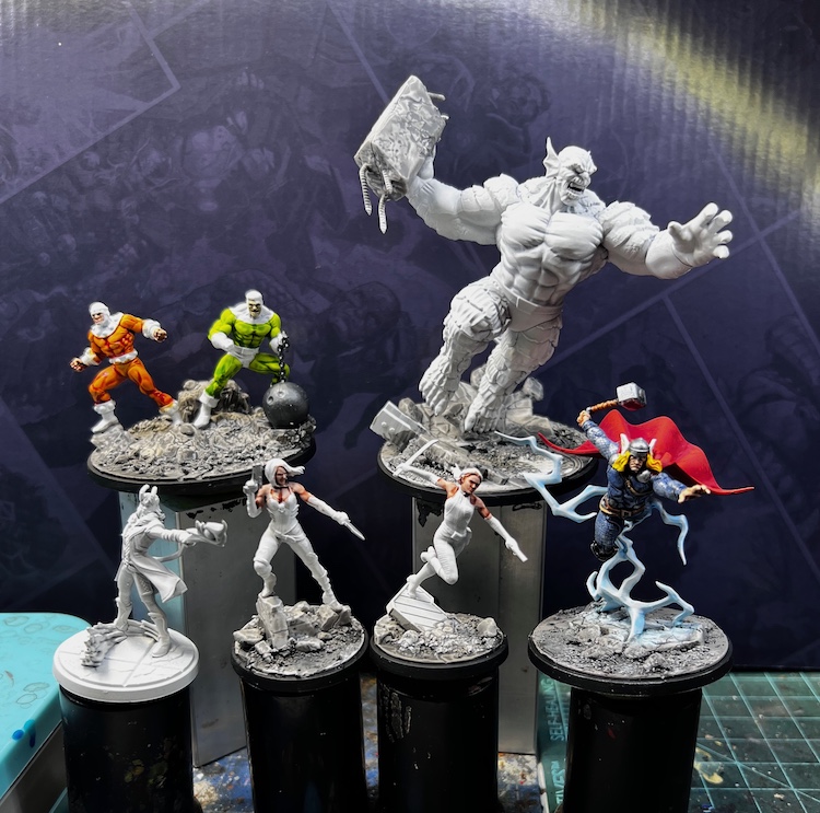 Considering Abomination dominates every picture he is in and no brush has touched him yet, progress may look minimal. I’ve actually been working through characters at a slow but steady pace. I even glued together enough to spray with primer, heck, three primers.