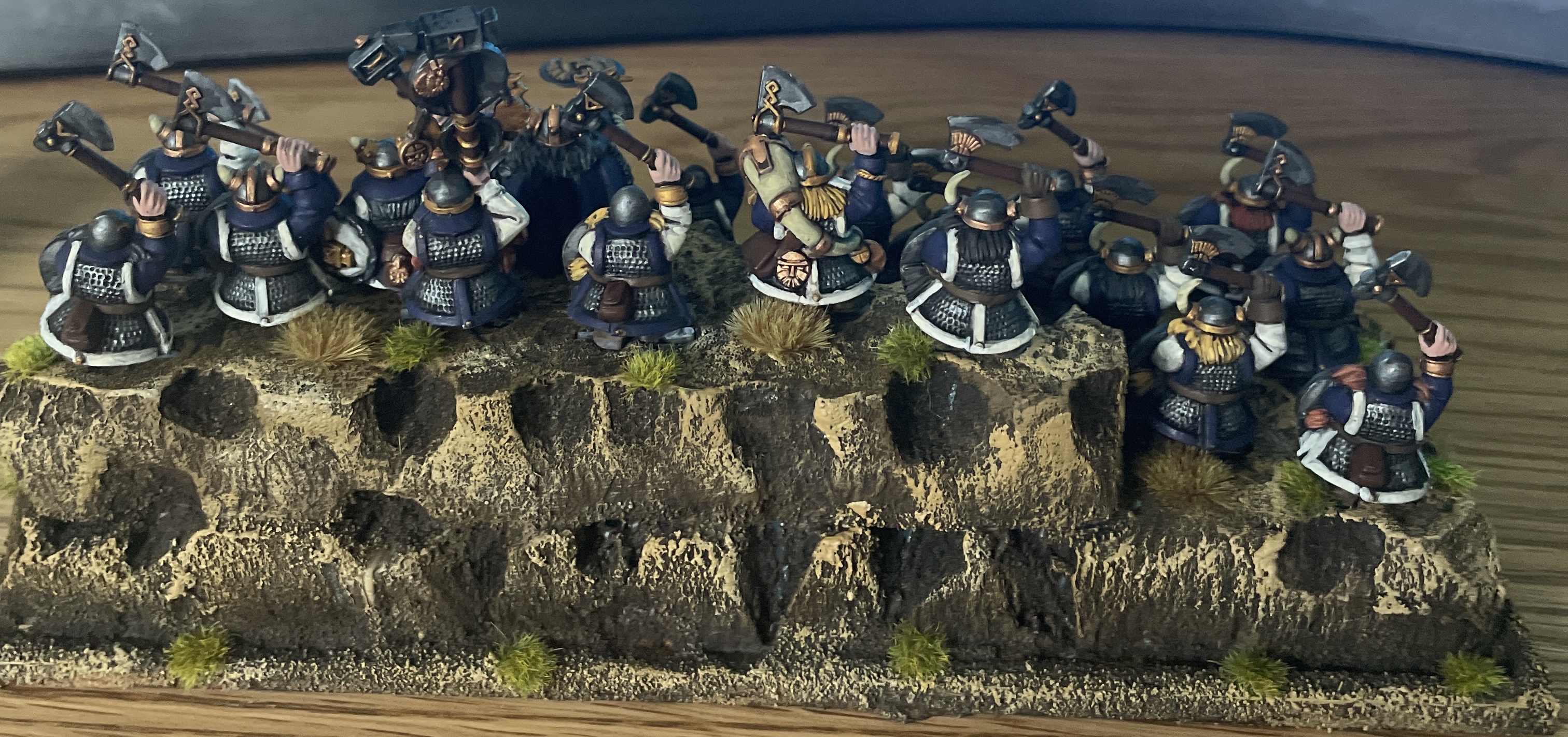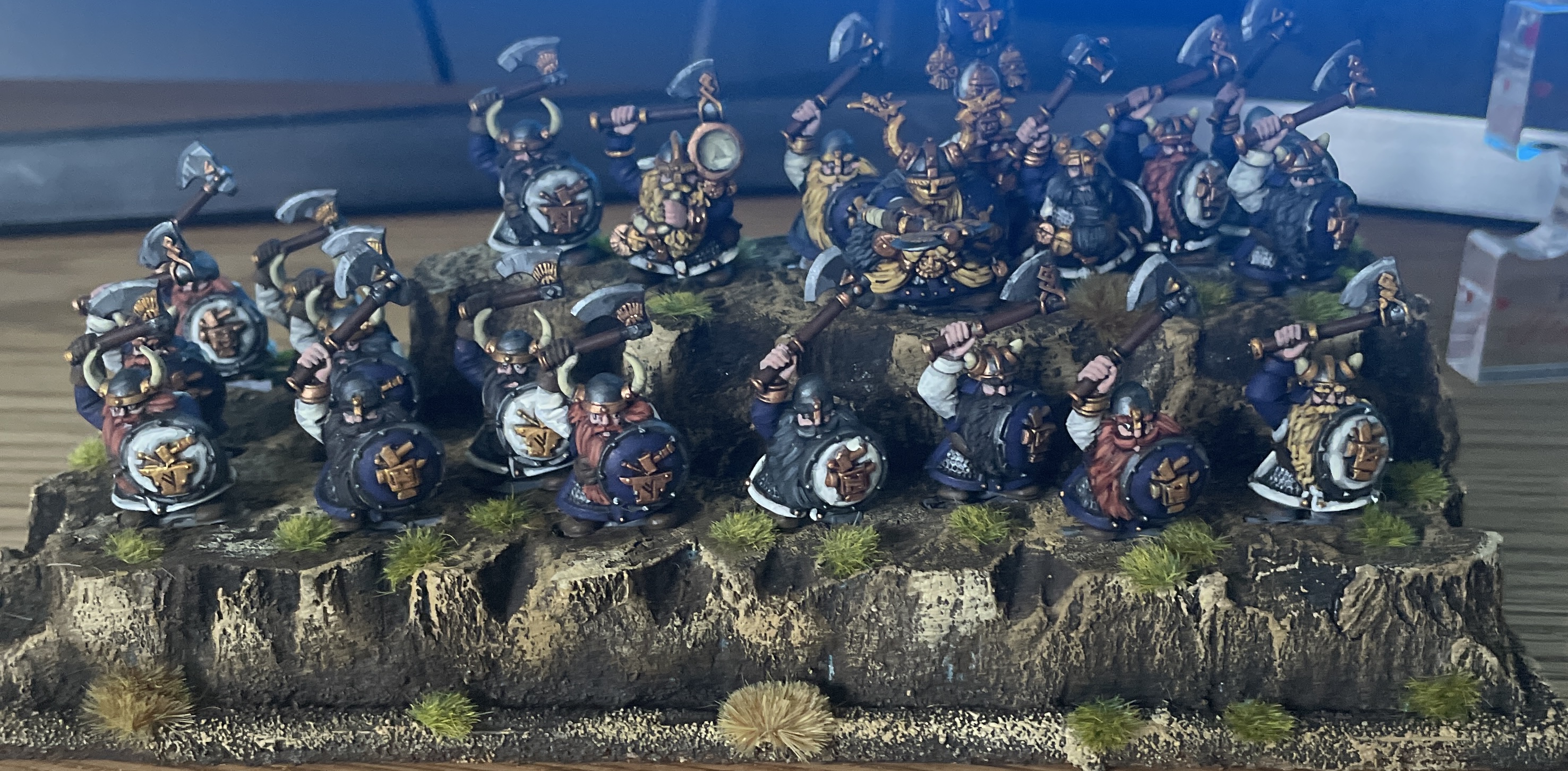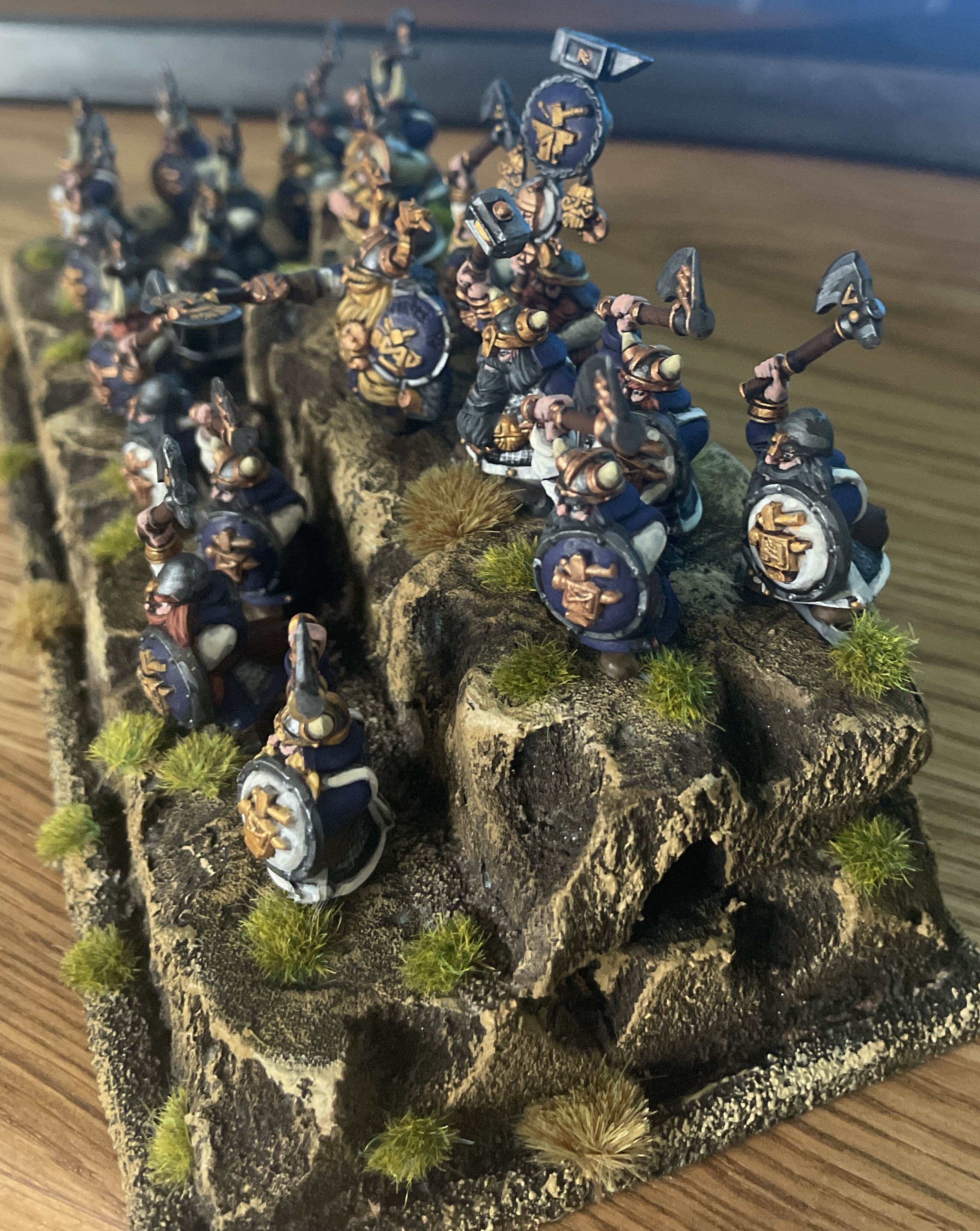 Next new unit done this week. I’m getting to the end of my dwarf miniatures. I had some of these much maligned monopods plastic miniatures and wanted to use them. They are very good for their time. They are simple to paint and think they look well with a fairly quick paint job. The use of 3 command figures gives the unit some interesting aspects. Iv done this with a few units which I may show off later in a showcase of the army when it’s done! overall happy with the result of the unit.