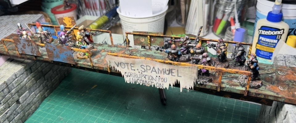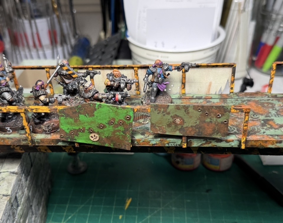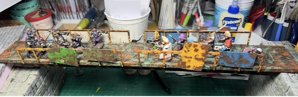 The bridges are 20 inches long and 2 inches wide. I will be placing some scrap metal to the railings to give some cover.