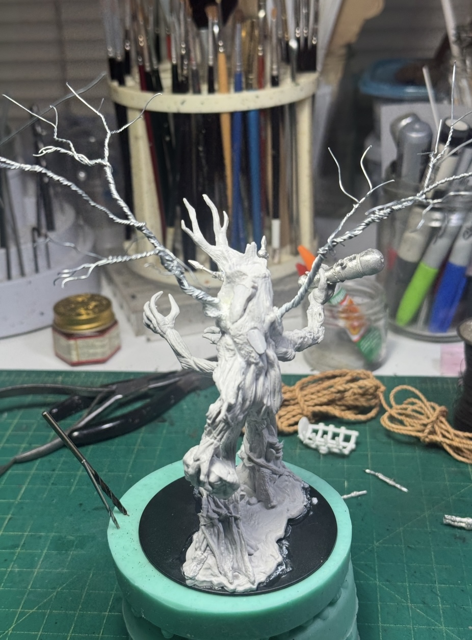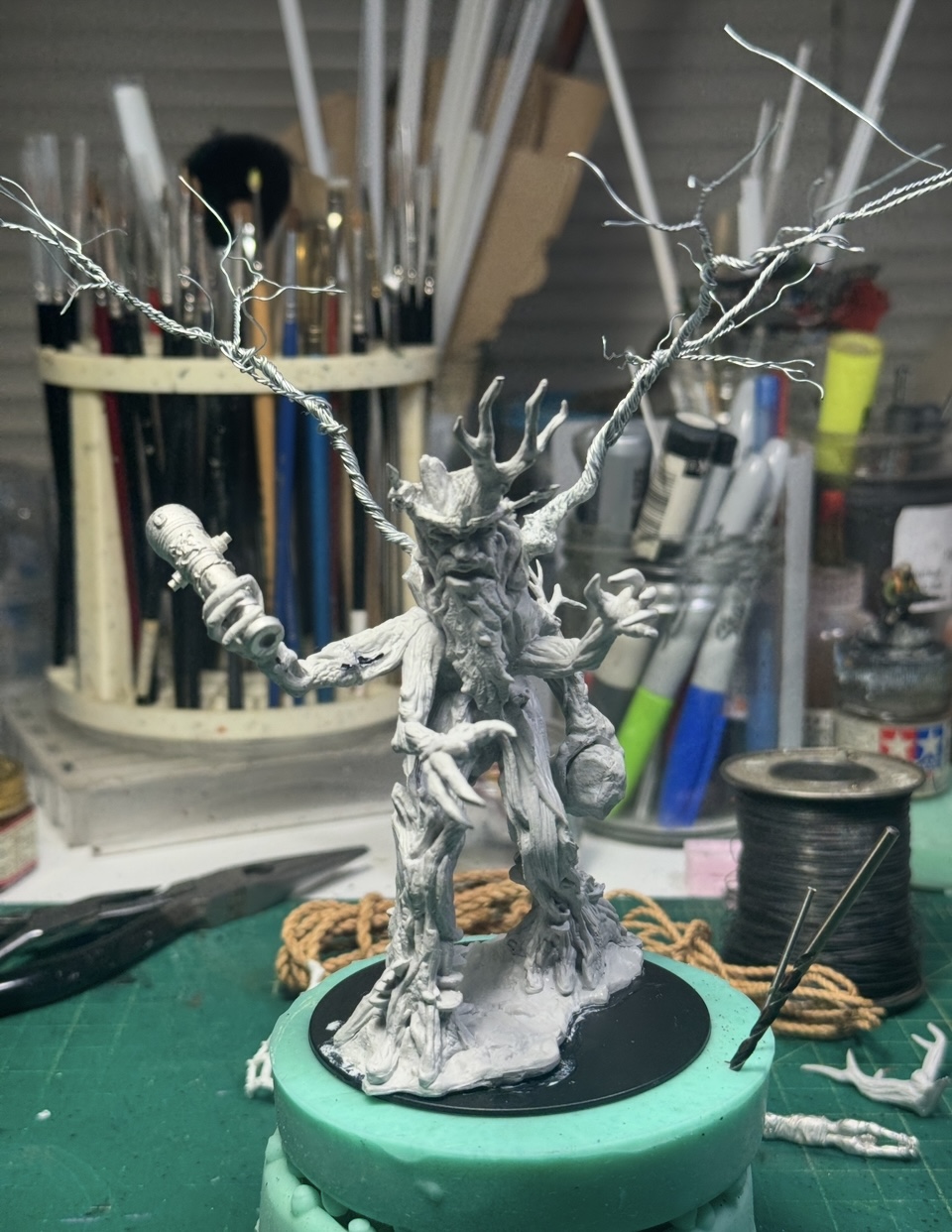 Just started the tortured Treant . I cutoff the smaller branches and I will replace them with some larger ones. I will be adding the cage the man being weighed down ( an old menoth piece) and probably a noose. Also ropes and chains.