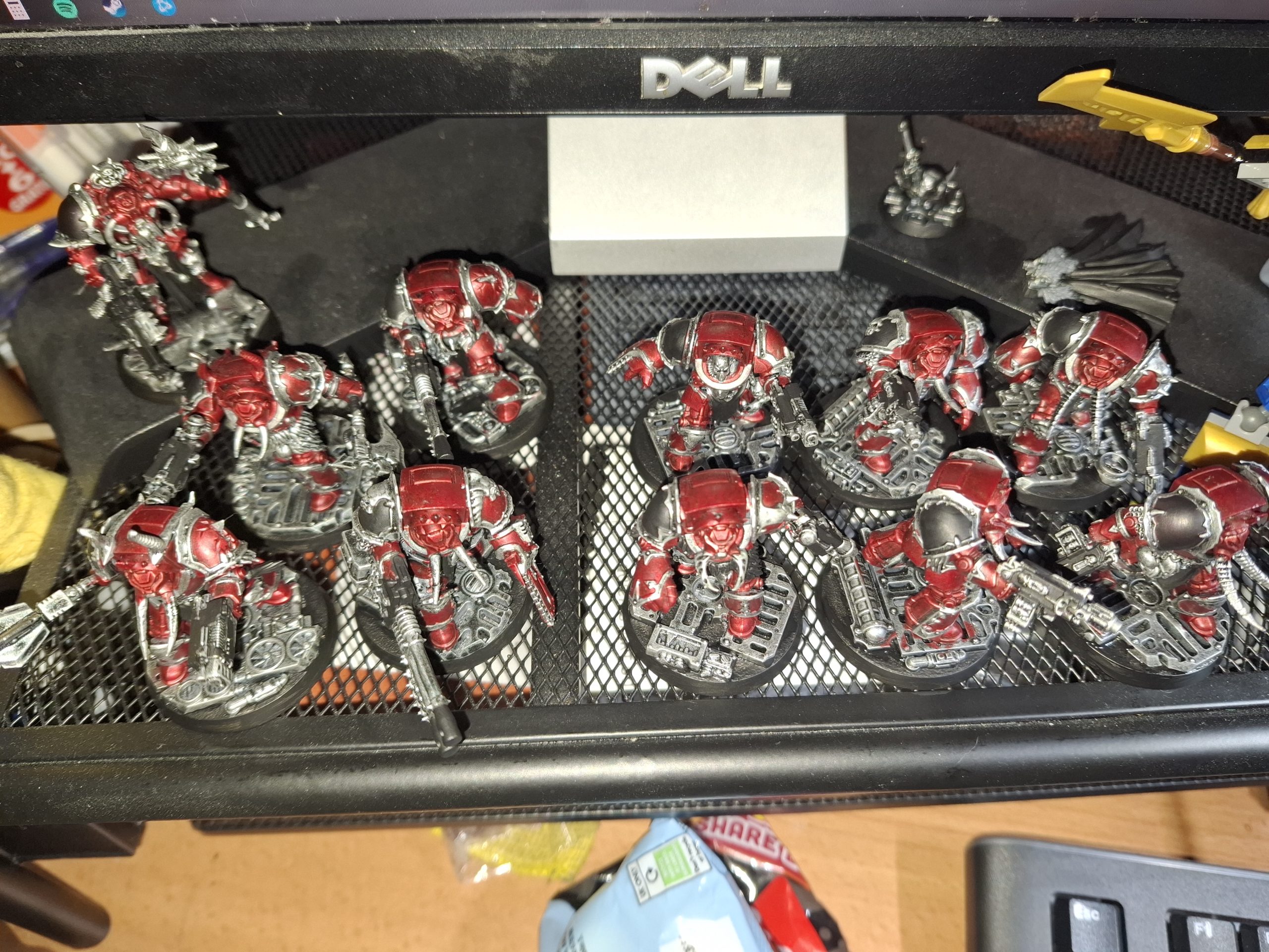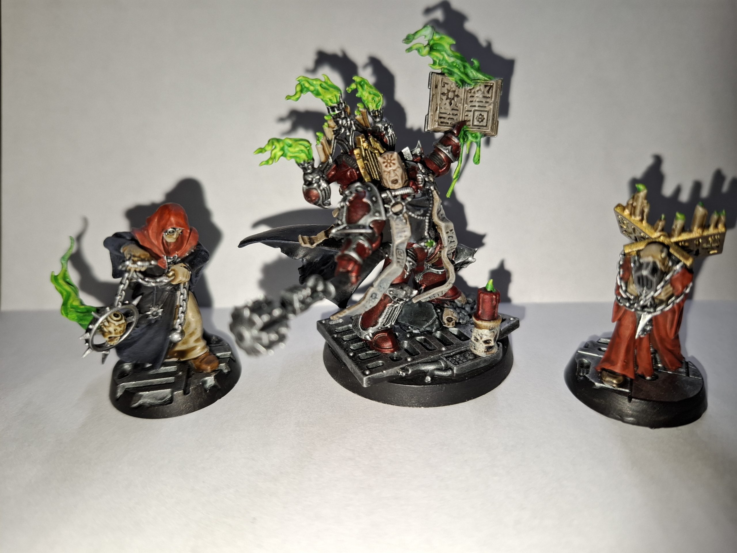 These were all painted in the same manner as the other Word Bearers, except for one of the Apostles’ minions. His robes are Contrast Blood Angels Red.