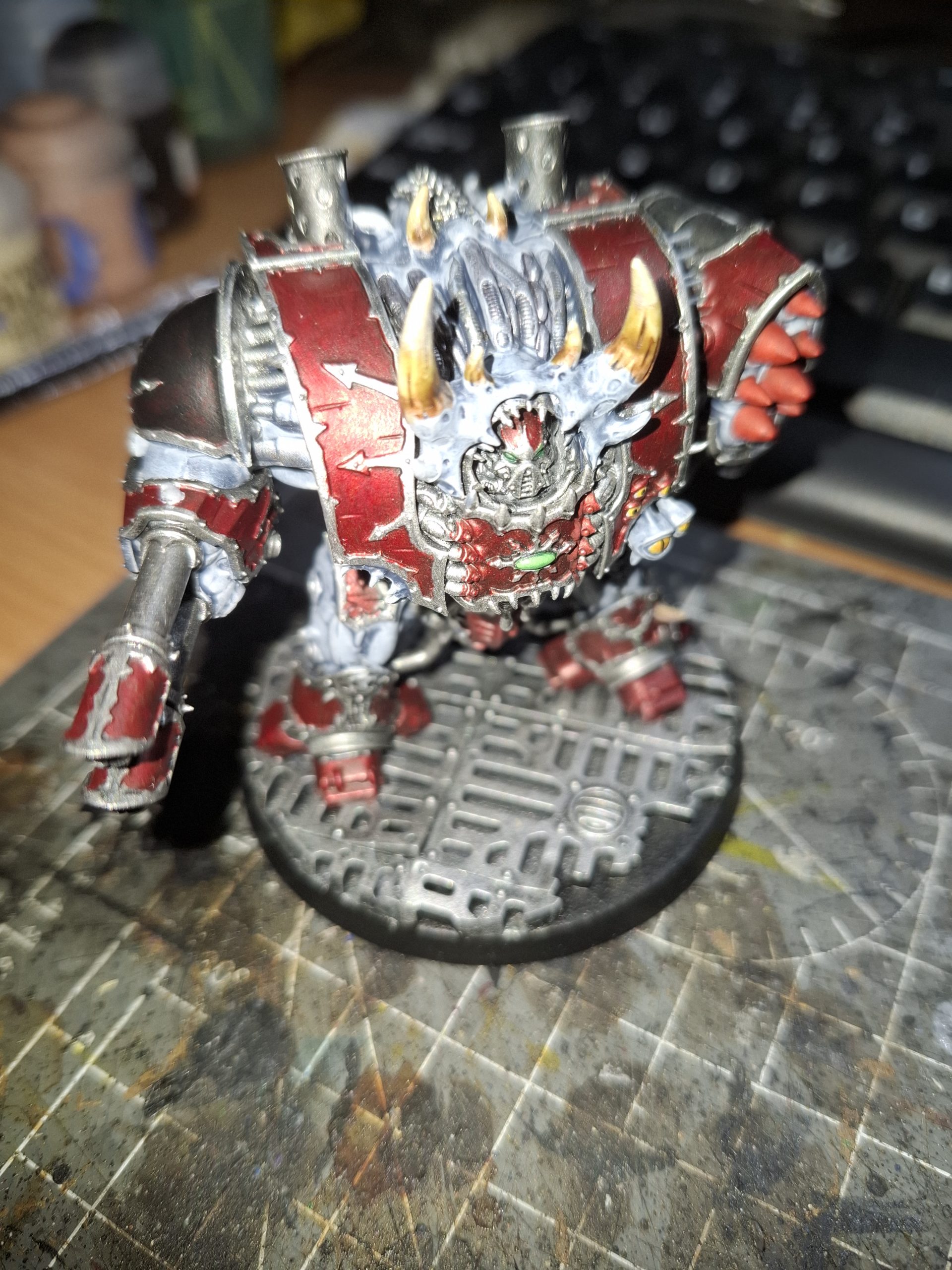 The Helbrutes’ daemonic flesh is Grey Seer, highlighted with Bold Titanium White and then washed with Contrast Space Wolves Grey.