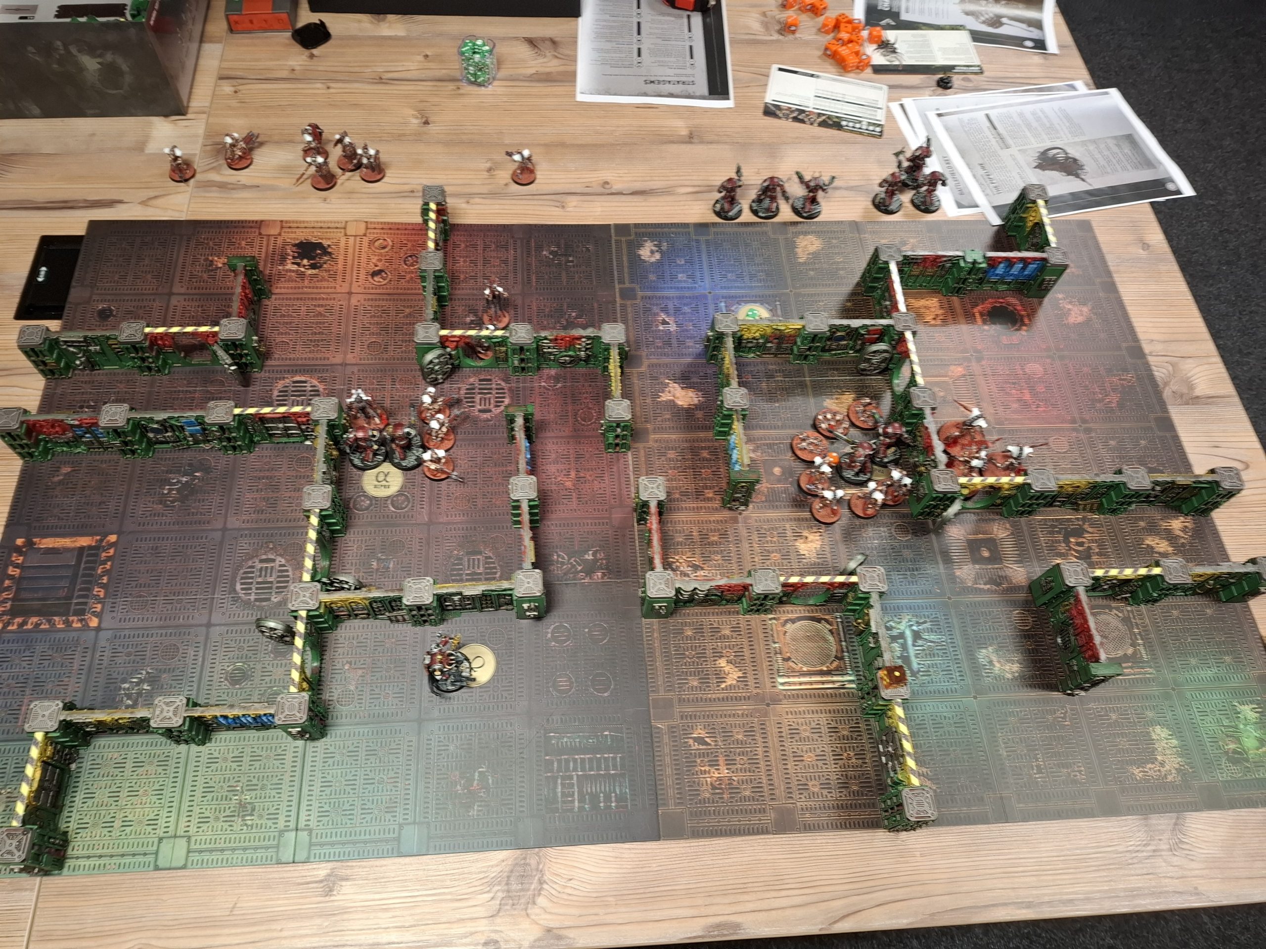 With the Terminators completed, I got a couple of games in but, because I’m an idot, only took photos of one of them. I’ve fought Orks and Space Marines. I’ve fought Necrons! I have lost all the games. This is due to forgetting stuff like Terminators getting sticky objectives and finding that combi weapons are frickin’ garbage. Adding another weapon really screws up the aim of transhuman warriors who have existed for 10,000 years…