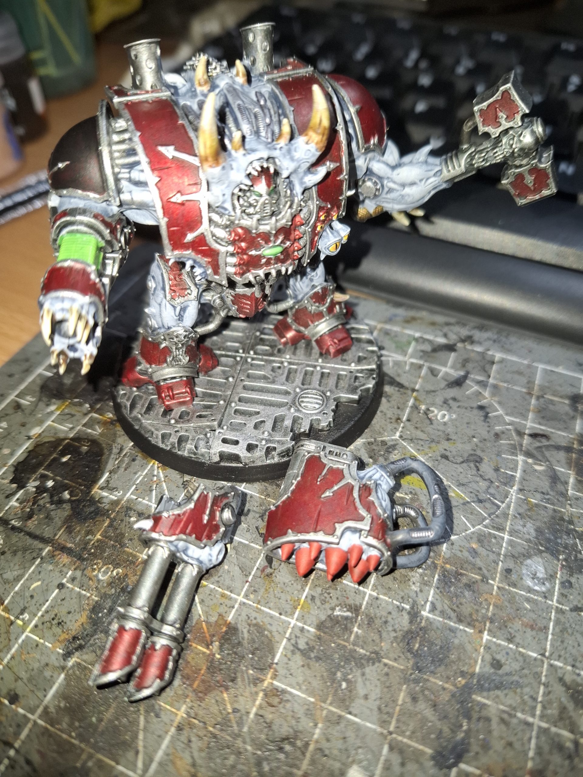 I started a few new units for the Word Bearers forces I’m building. First, a Dark Apostle. Second, a Helbrute. It’d Hammer and Missile Launcher arms are magnetised. The Lascannon and Plasma Cannon really don’t need it. They can snap into place. I know there is a mission from the Arks of Omen book, “The Lion”, that allows a dreadnought equivalent—damned if I know if it’s in the newer edition.