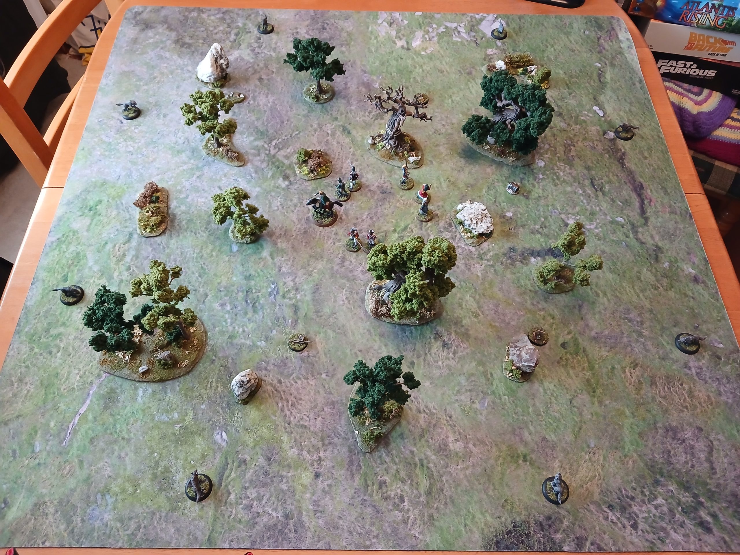 My friend hasn’t been able to sort their unit out yet, so I thought I would go ahead and play a solo scenario anyway. I need to refresh myself on the rules (and perhaps get a quick ref sheet) since I made some mistakes – mostly to do with cavalry (can’t investigate clues, and I forgot the Cavalry bonus for combat, and his Breastplate). But overall it worked ok.