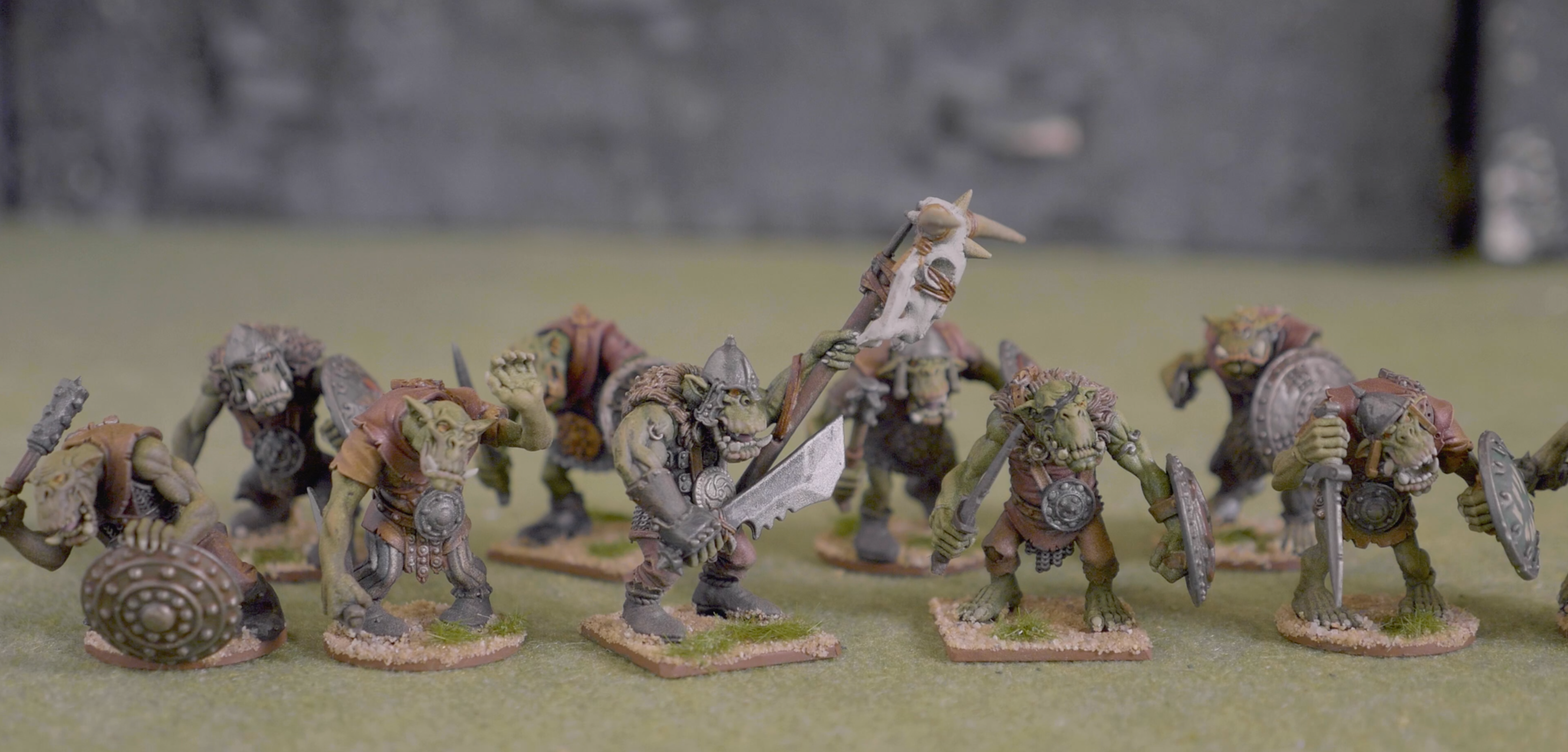A bunch of Longsnouts milling about. A few older GW orc bits were added for variety and to make up for some parts that were left out of our order.