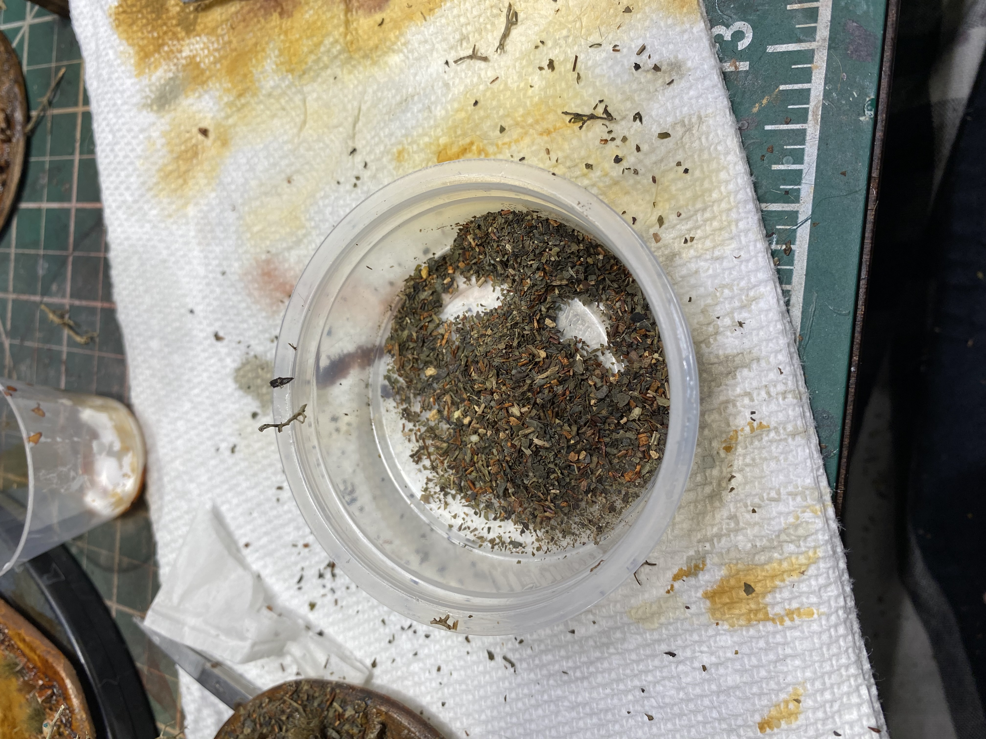 A few small branches were added to the build as smaller trees or as fallen logs. (The branches were disinfected in the oven first.)