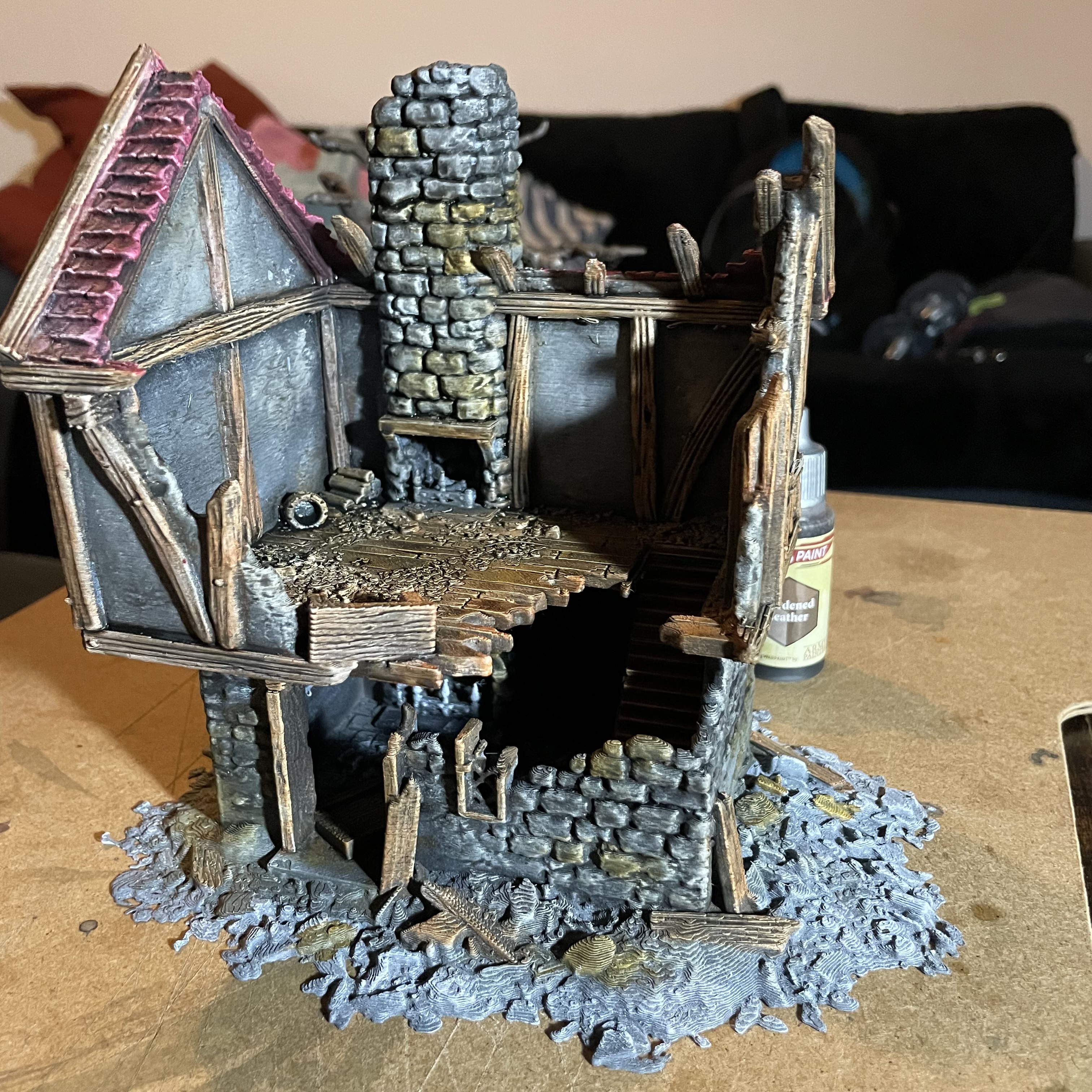 3: Rubble piles bit of dry brushing Nuln oil wash and flock.