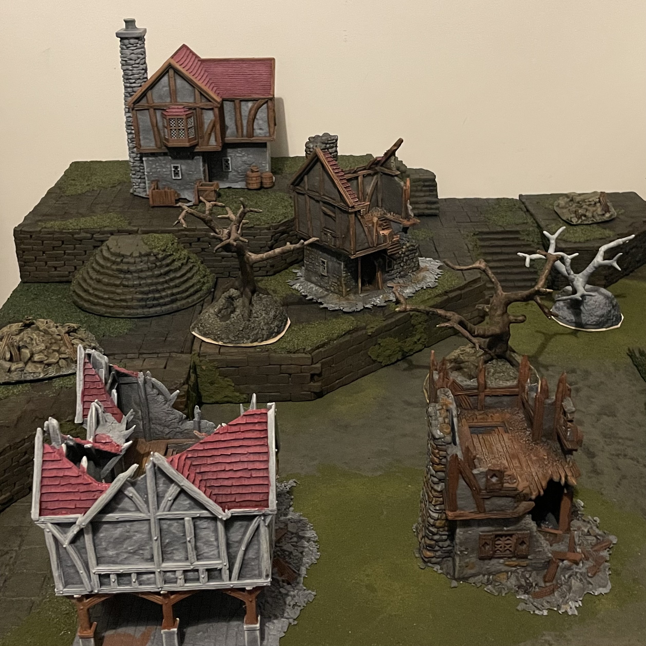 4: The board and raised terrain levels. While they have all been painted I think a light dry brushing followed with another wash to tie the colours together.