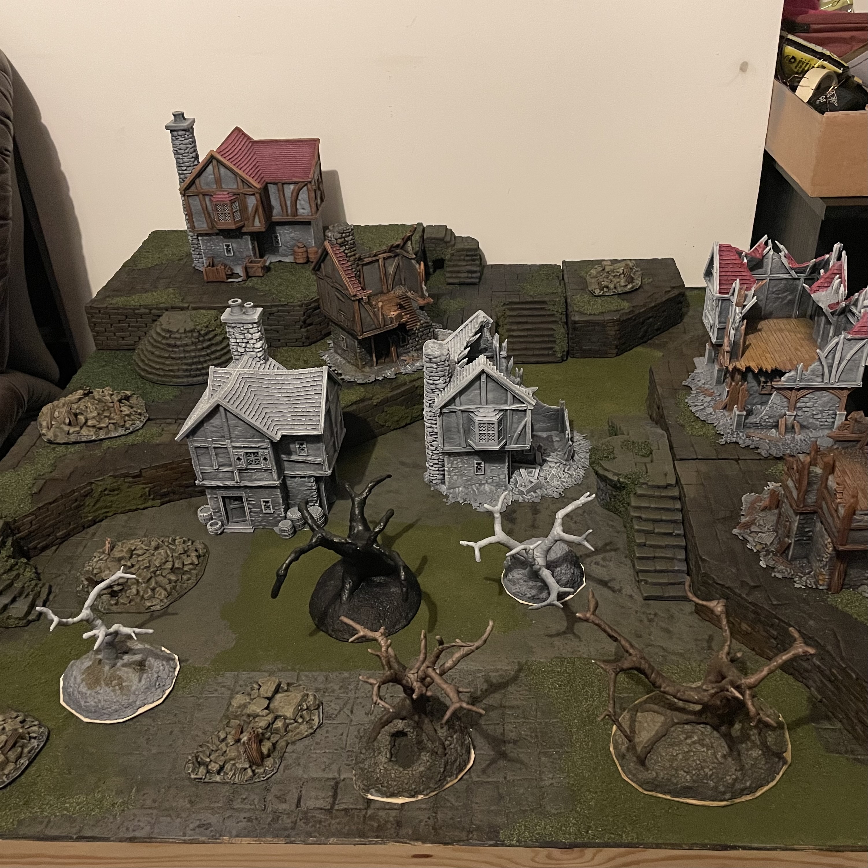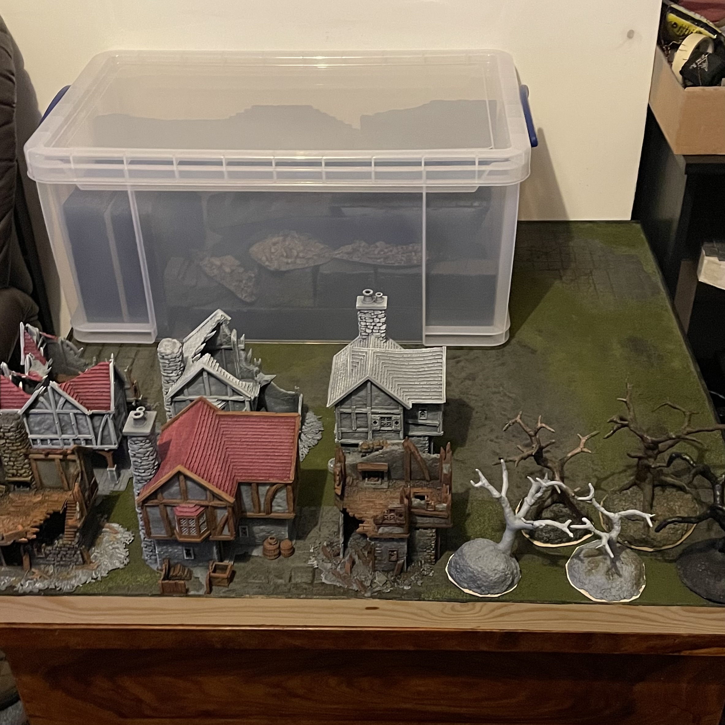 OK first time I’m trying this in a long long time. Surprising my little gaming group this Christmas with Moonstone. I’m doing a not so secret, Secret Santa. I’m picking up three factions for moonstone wrapping them up in three mystery packages. So that during our Christmas game we can randomly pick a faction. That bit’s easy purchase the boxes wrap them up and then on the dat we Ro Sham Bo for the privilege of first choice. Obviously to play we will need a gaming table to play on. That’s where we begin. I’m aiming for a 3x3 dark fantasy ruined/ghost town themed table. But obviously plans can change.