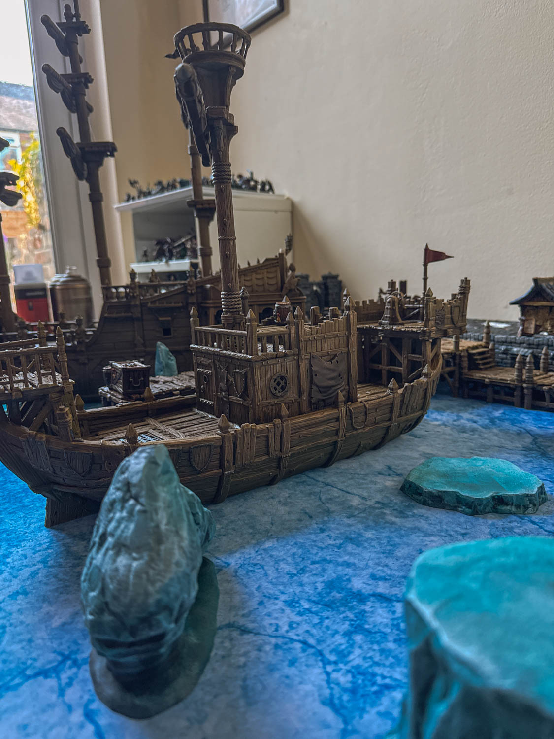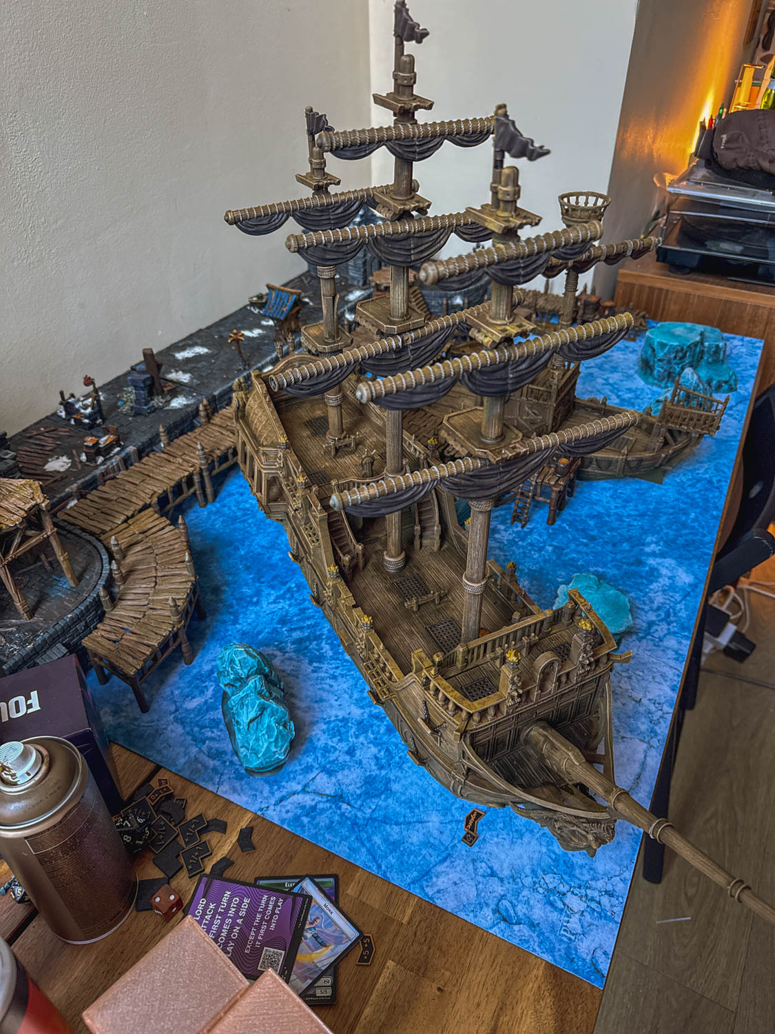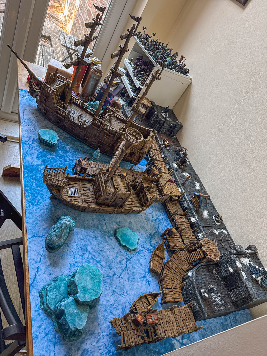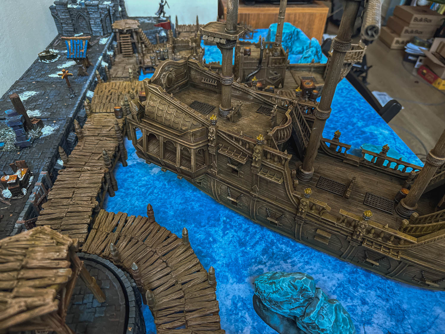Very pleased with this addition to the terrain collection. I’m working through the lich campaign so needed ships to play on, the big one is from loot studios and the rest/jetty’s are from hexenguard. I really love how different of a board setup this feels like, never fought a skirmish over ships before but i’m very excited to try it!