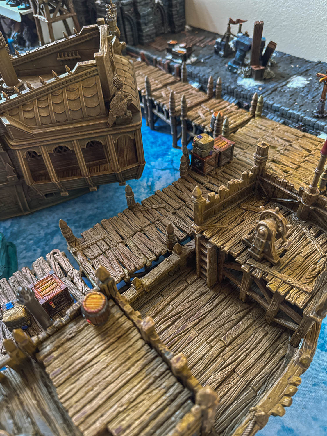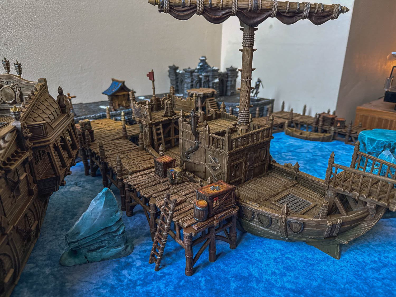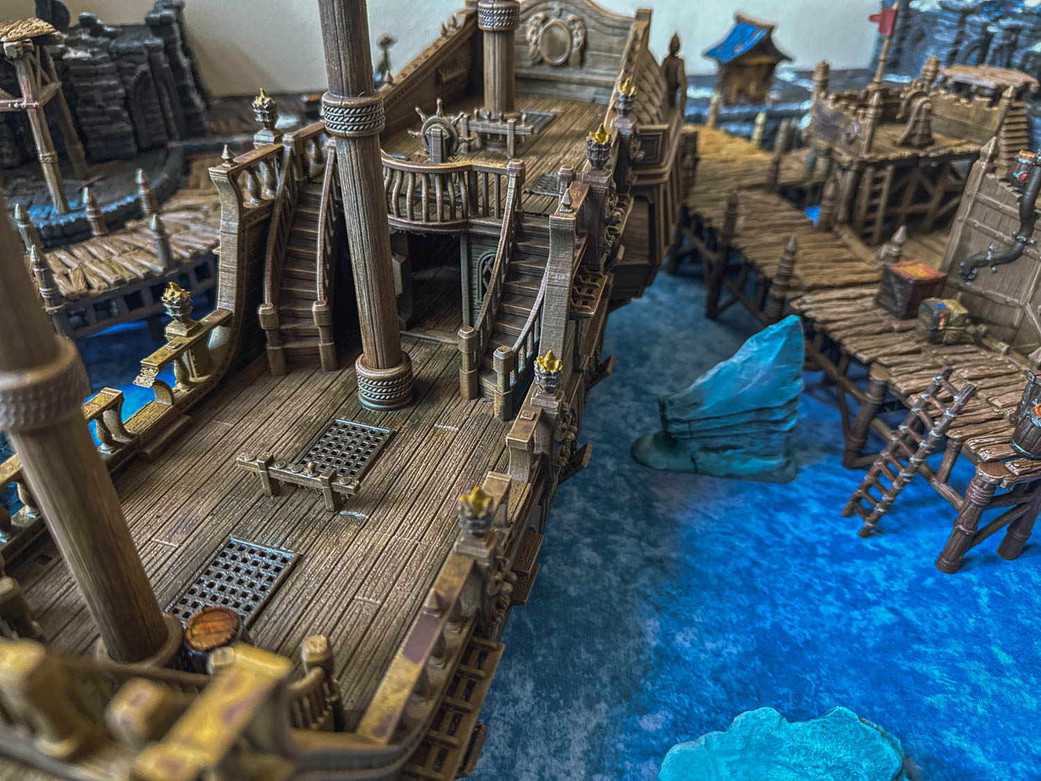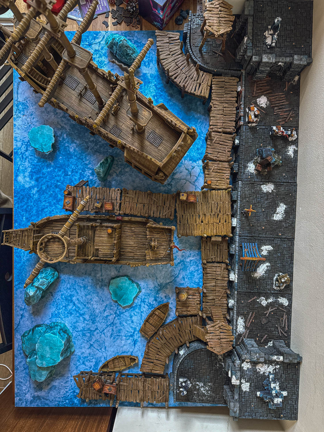 Very pleased with this addition to the terrain collection. I’m working through the lich campaign so needed ships to play on, the big one is from loot studios and the rest/jetty’s are from hexenguard. I really love how different of a board setup this feels like, never fought a skirmish over ships before but i’m very excited to try it!