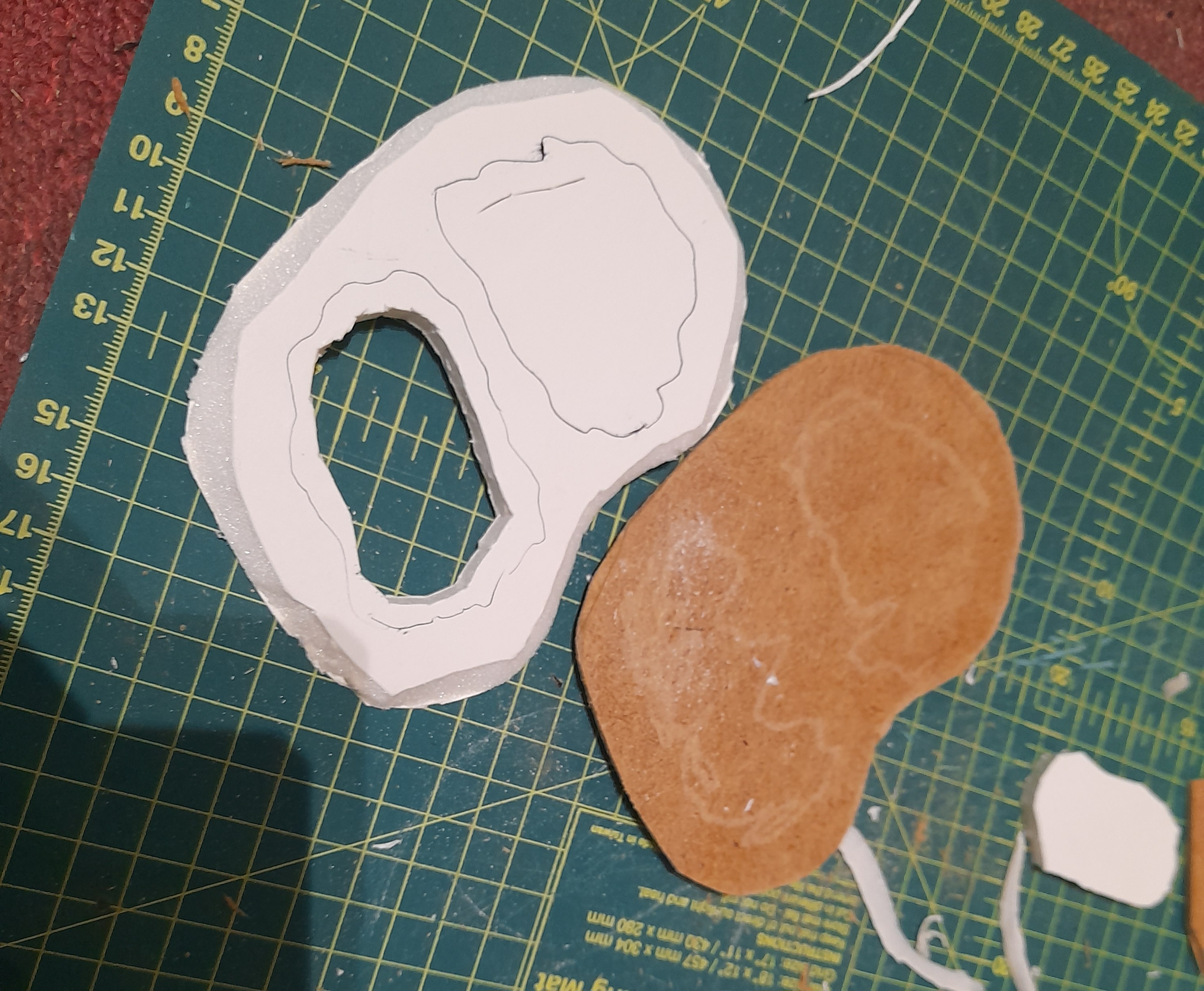 I cut these out, and used the curvy edges as a template to mark out the banks onto some old foamcard I was reusing.