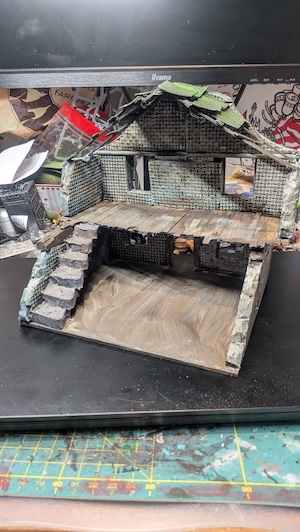 I used PVA to glue those together, using some of the balsa from the crate a couple of posts back to add beams the house.